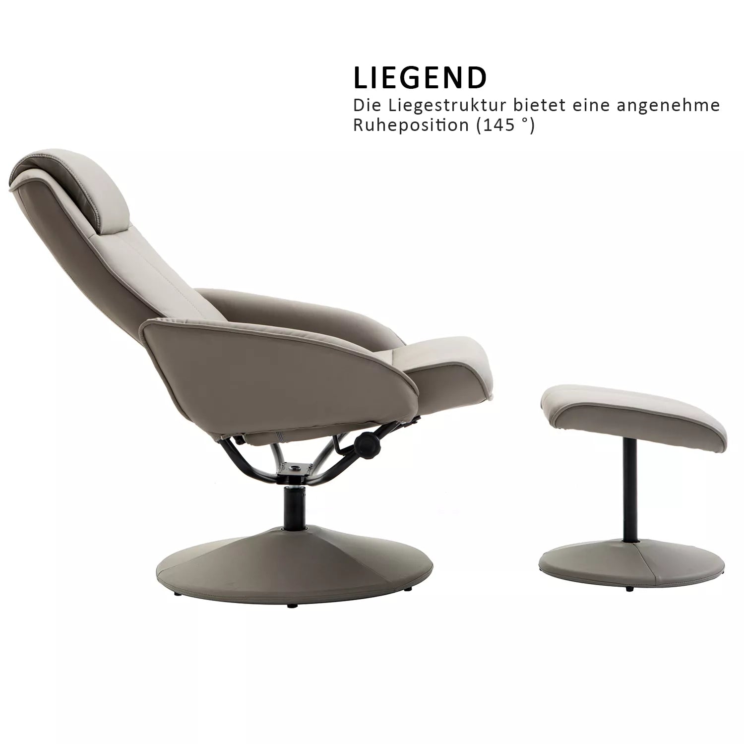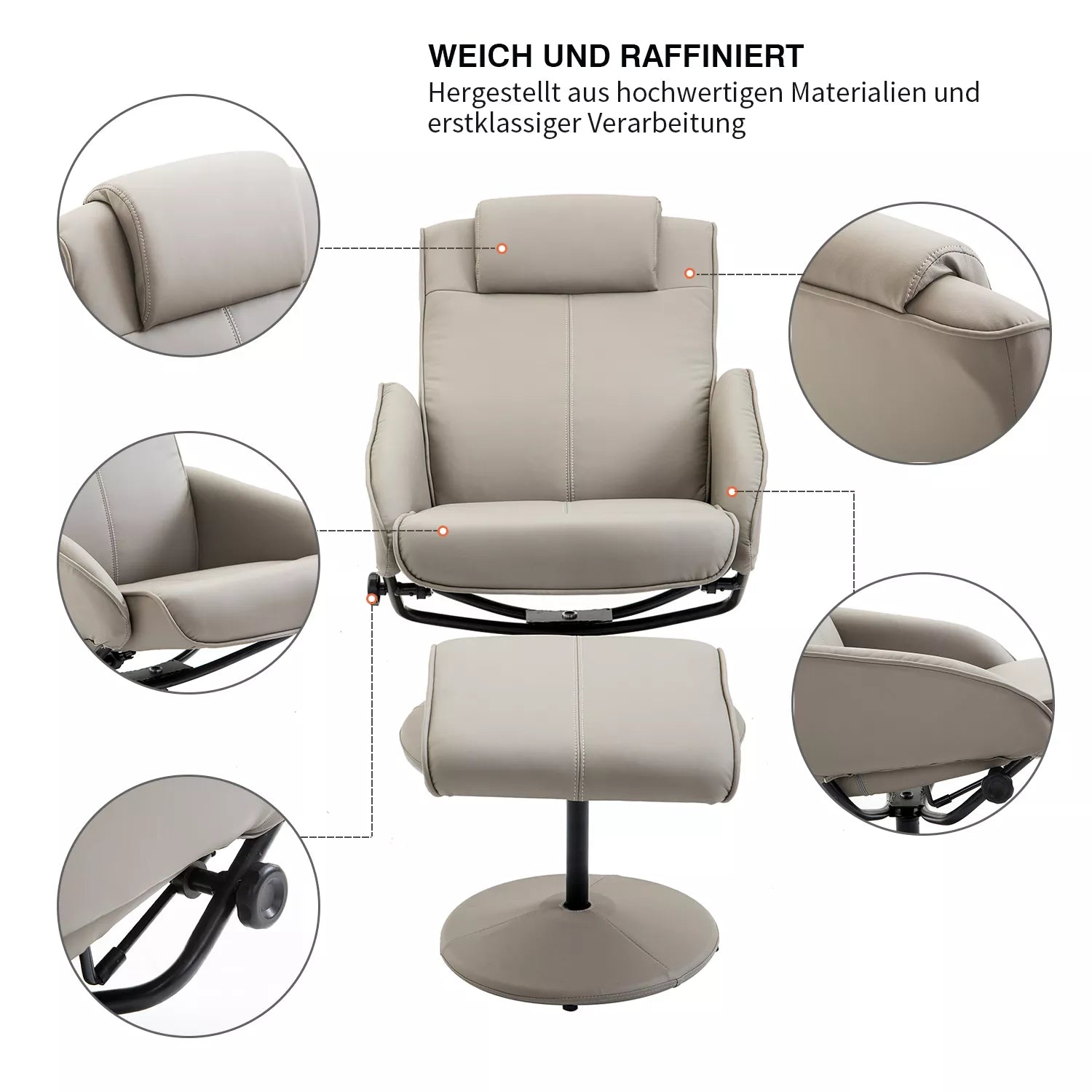 Poilsio krėslas su pakoja, 360° besisukantis TV krėslas su gulėjimo funkcija, odinis fotelis, skaitymo krėslas svetainei, miegamajam, pilkos spalvos