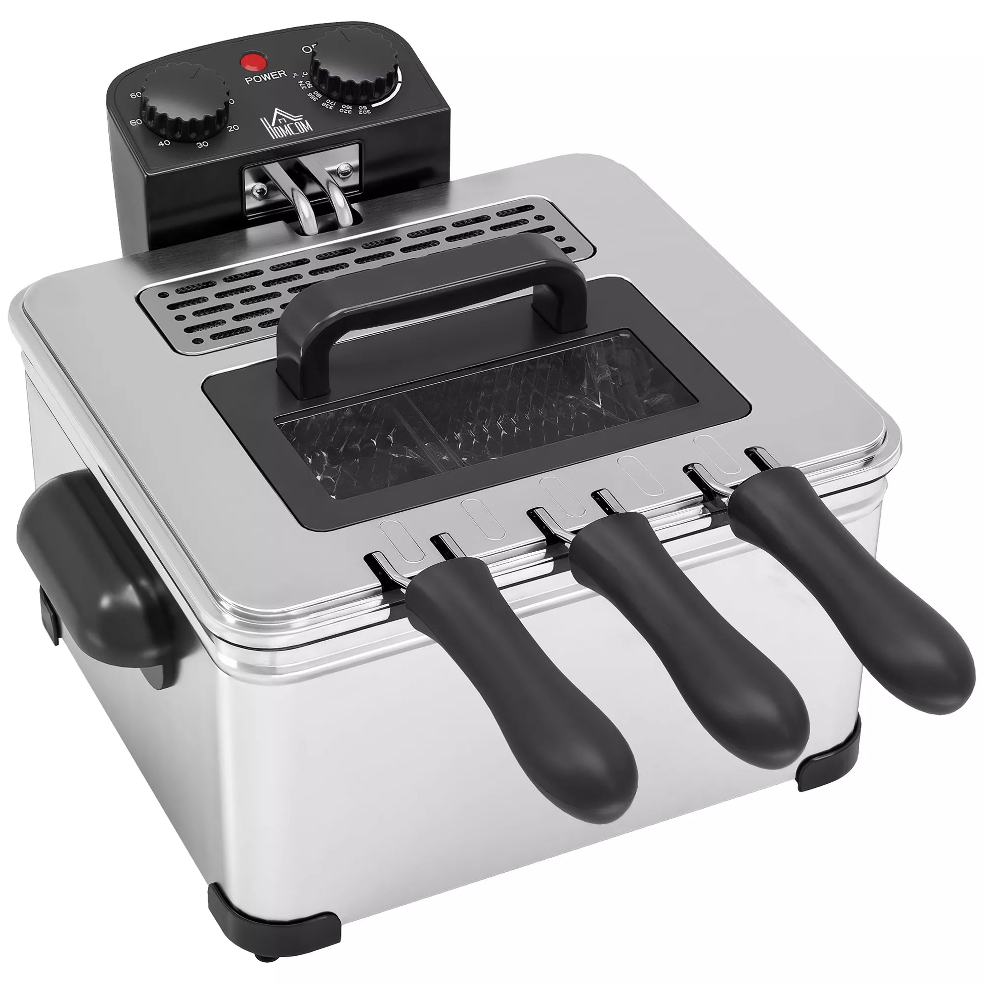 Fritierius, 5 L aliejaus talpa, laikmatis, stebėjimo langas, 2000W galia, sidabro spalvos