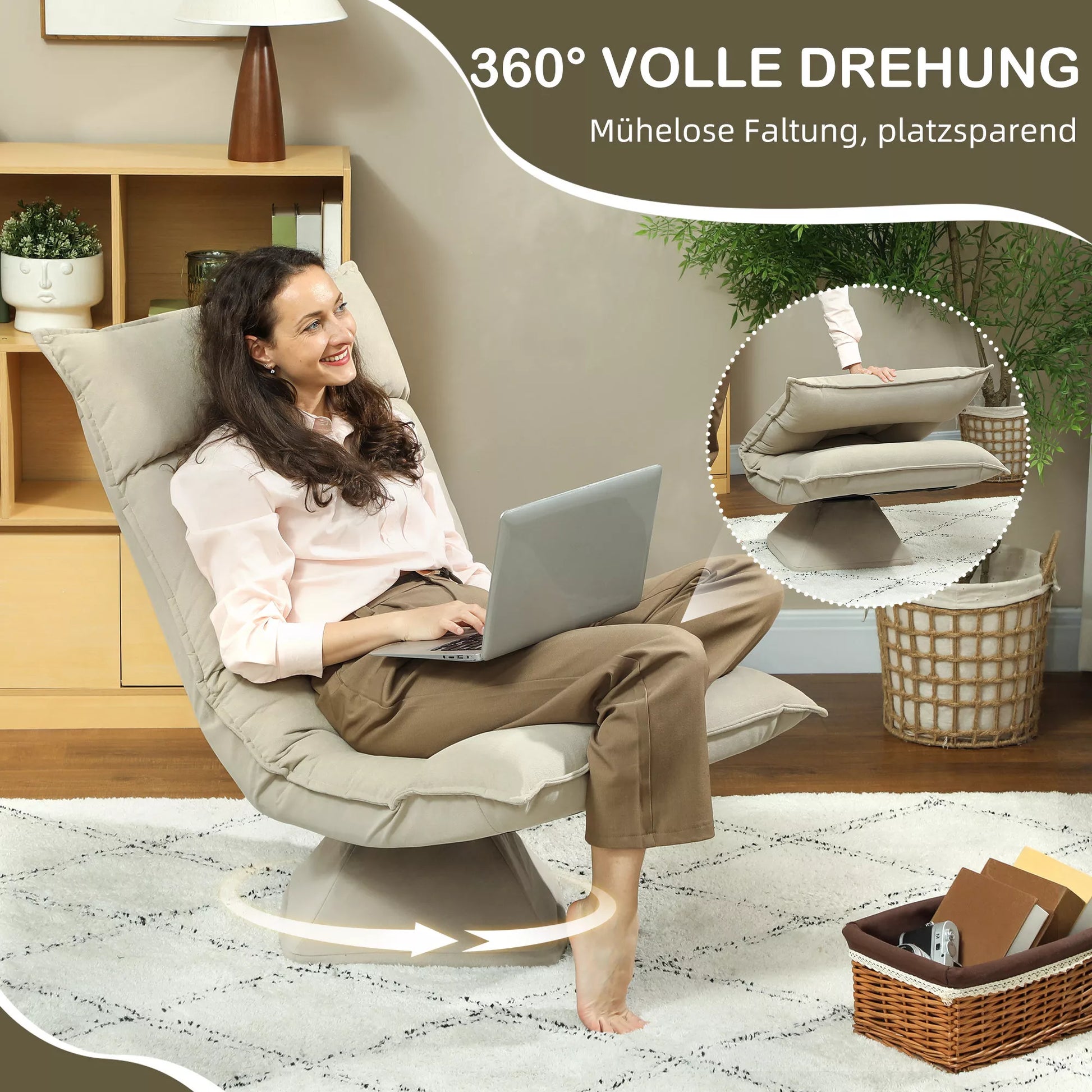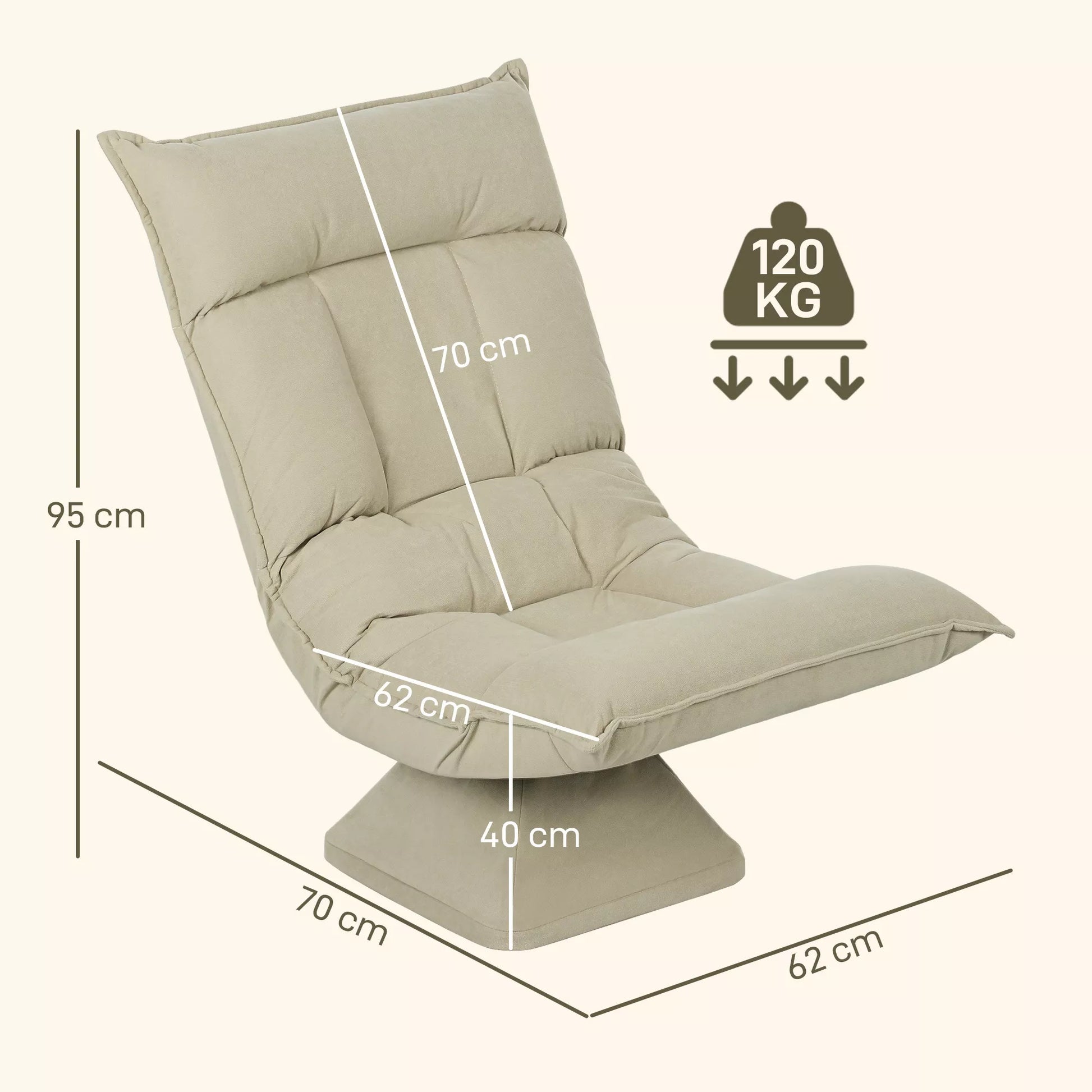 Grindų krėslas su 5 padėčių reguliuojamu pasukamu atlošu, modernus minkštasuolis, smėlio spalvos