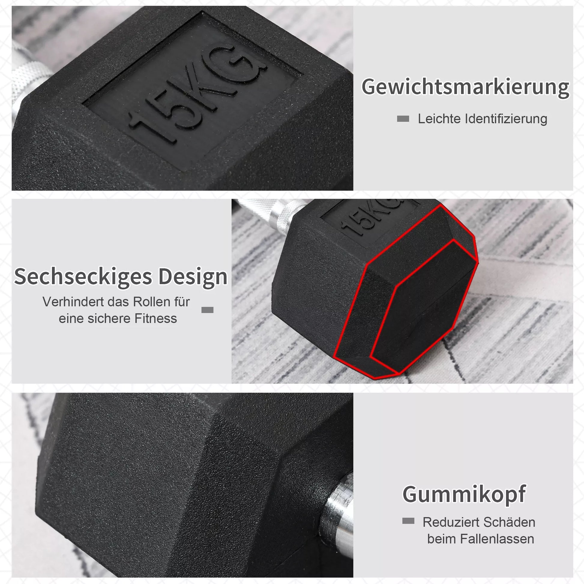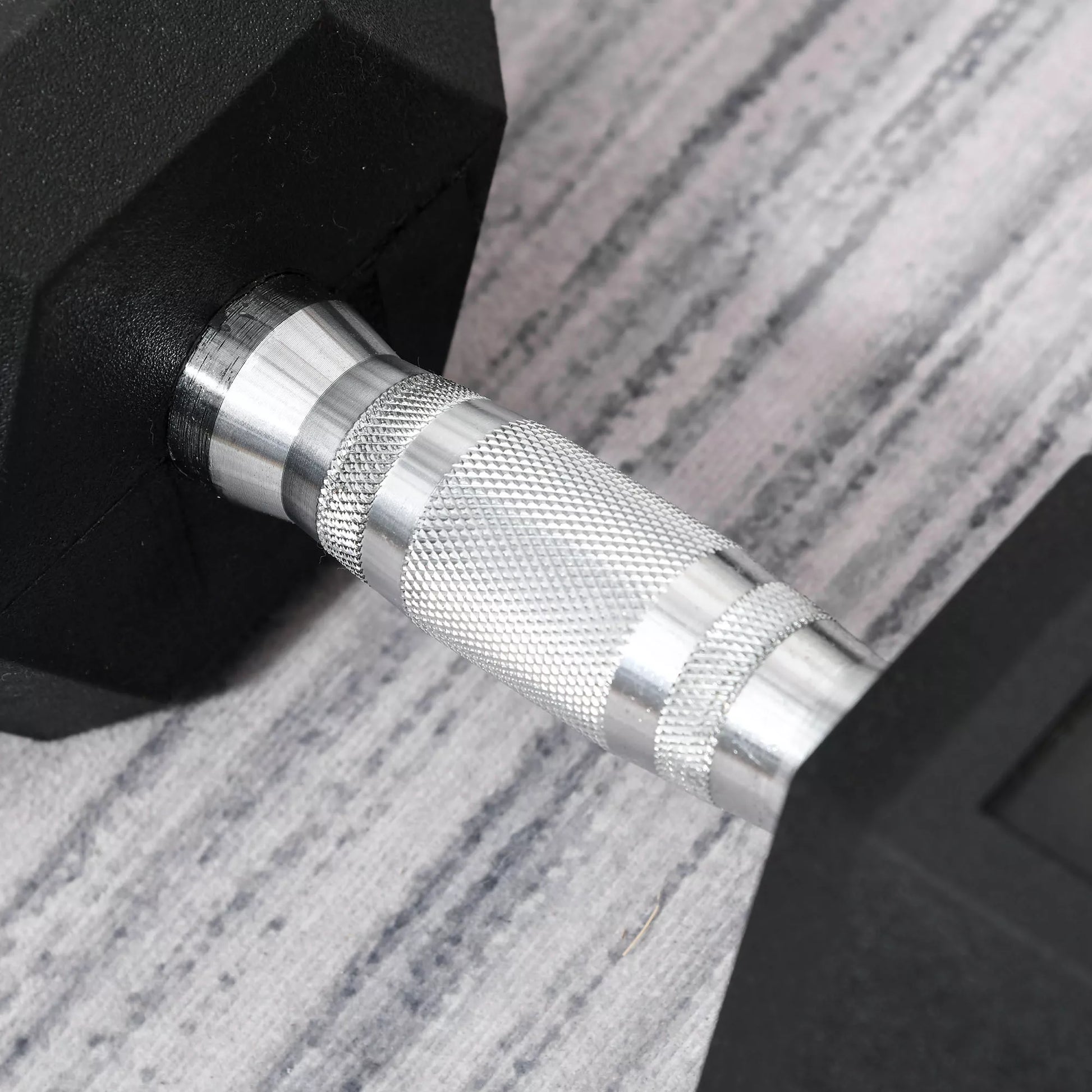 Šis šešiakampis guminis svarmuo puikiai tinka jūsų sporto režimui, tinkamas naudoti namuose, sporto salėje ir biure. Kiekvienas svarmuo pagamintas iš metalo ir gumos, todėl yra patvarus ir nesibraižo grindų. Rantuotas paviršius užtikrina jūsų saugumą atliekant svarmenų lenkimus, sprando kėlimus, tricepsų pratimus už galvos ir kt. Tai idealus būdas įtraukti svarmenis į jūsų treniruočių rutiną.
