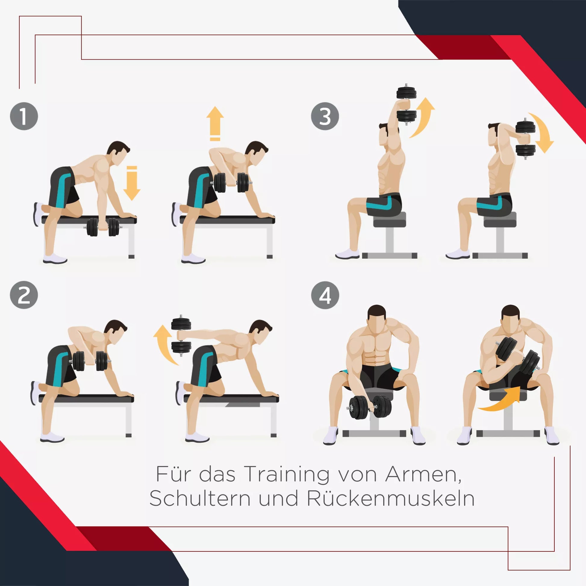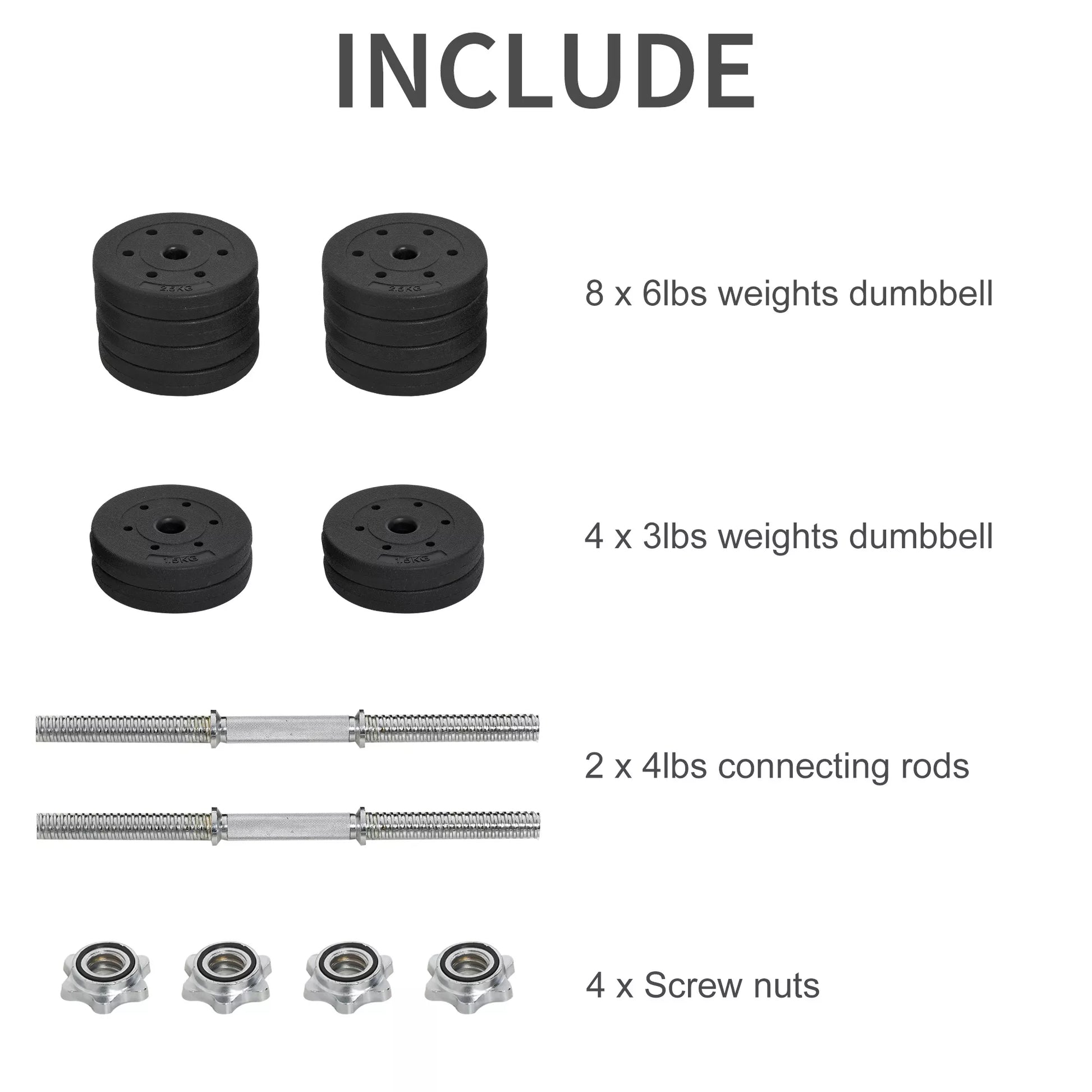 Mūsų hantelių rinkinys komplektuojamas su skirtingo svorio hantelių dalimis, todėl galite reguliuoti hantelių svorį pagal savo poreikius. Rinkinį sudaro 8 x 2,5KG, 4 x 1,5KG svarmenys ir 2 x 2KG sujungimo strypai. Tai padės jums treniruoti rankas, pečius ir nugarą bei stiprinti raumenis. Su šiuo hantelių rinkiniu galite sportuoti namuose, biure ar bet kurioje kitoje vietoje.