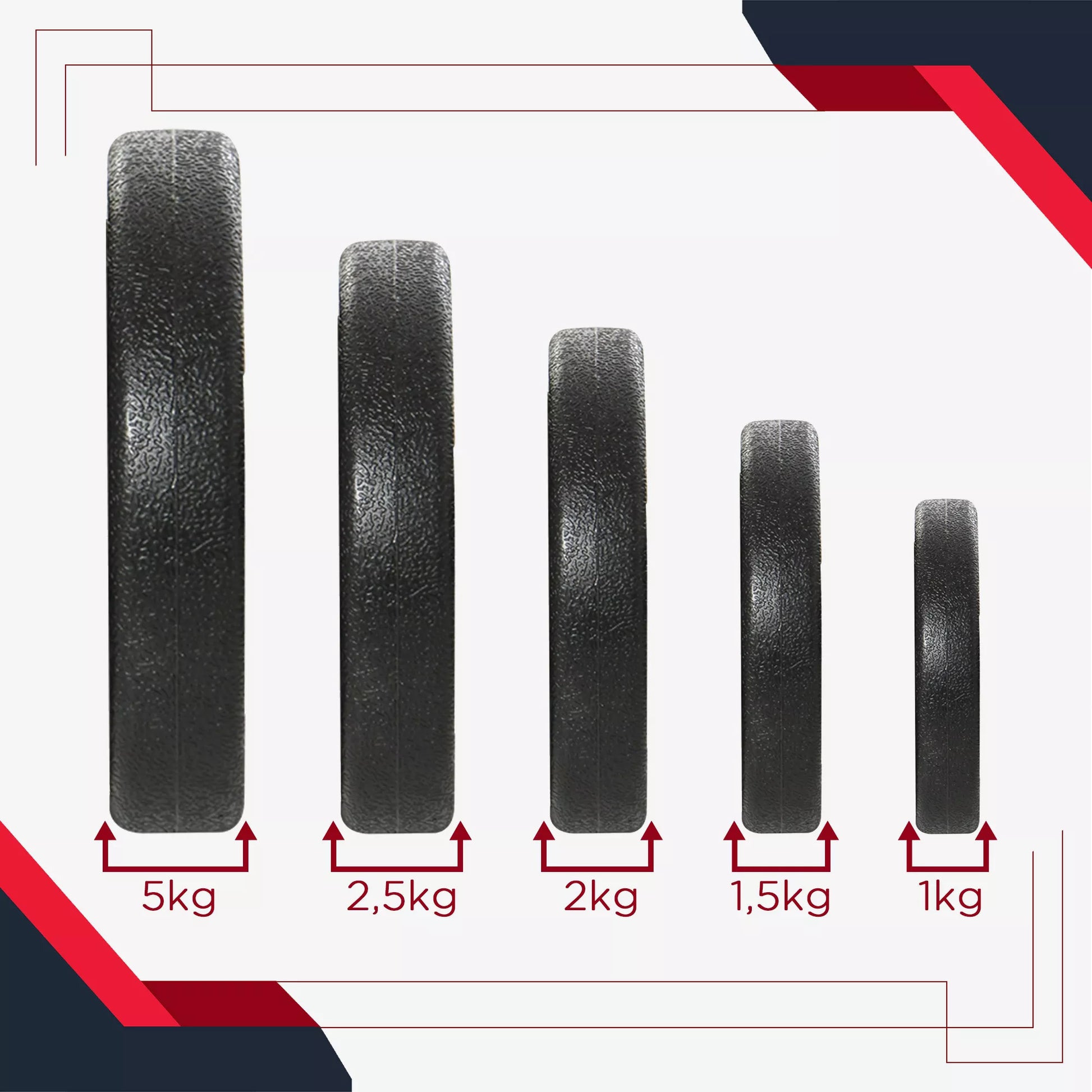 - ✔ Šiame rinkinyje yra 8 x 2,5KG, 4 x 1,5KG svarmenys ir 2 x 2KG sujungimo strypai