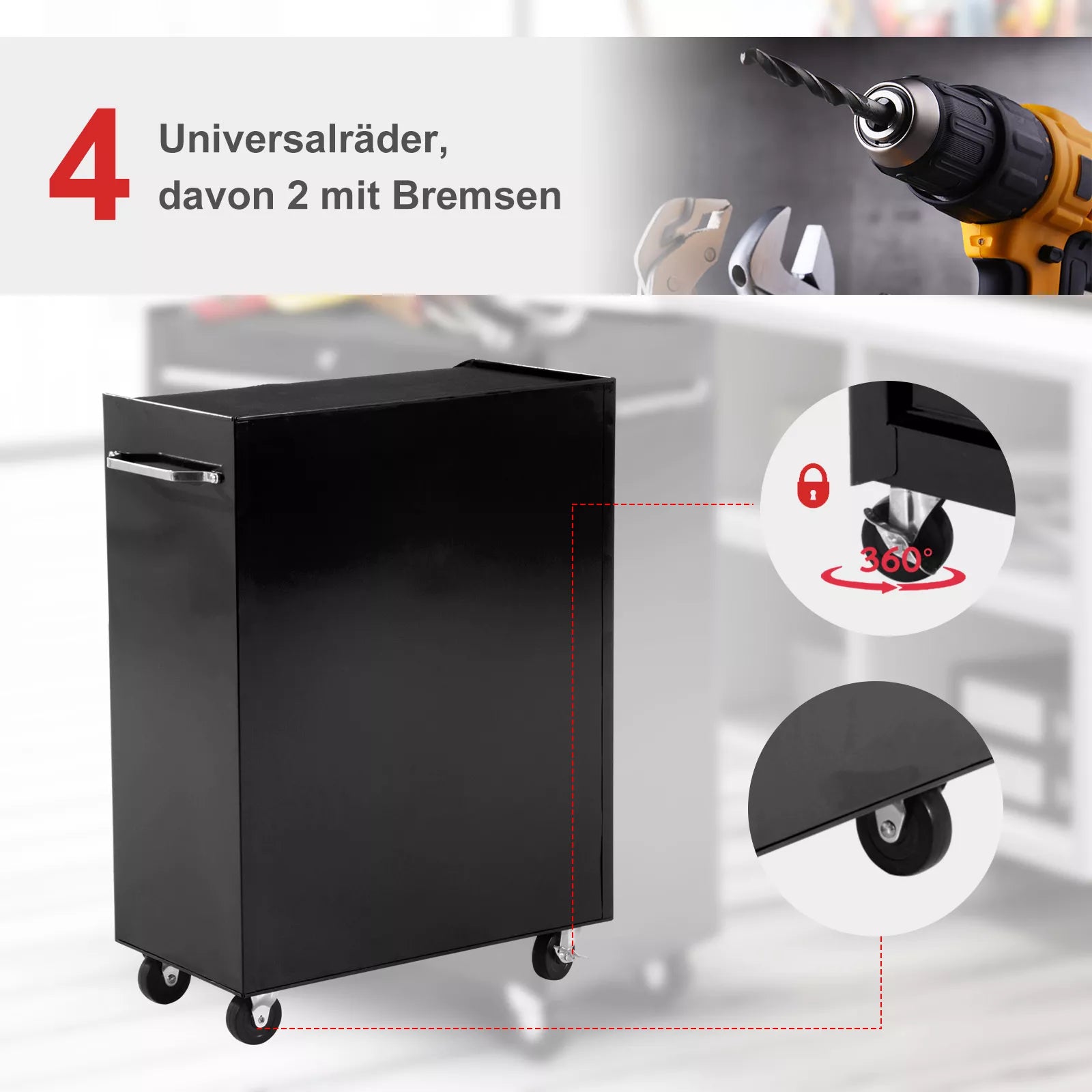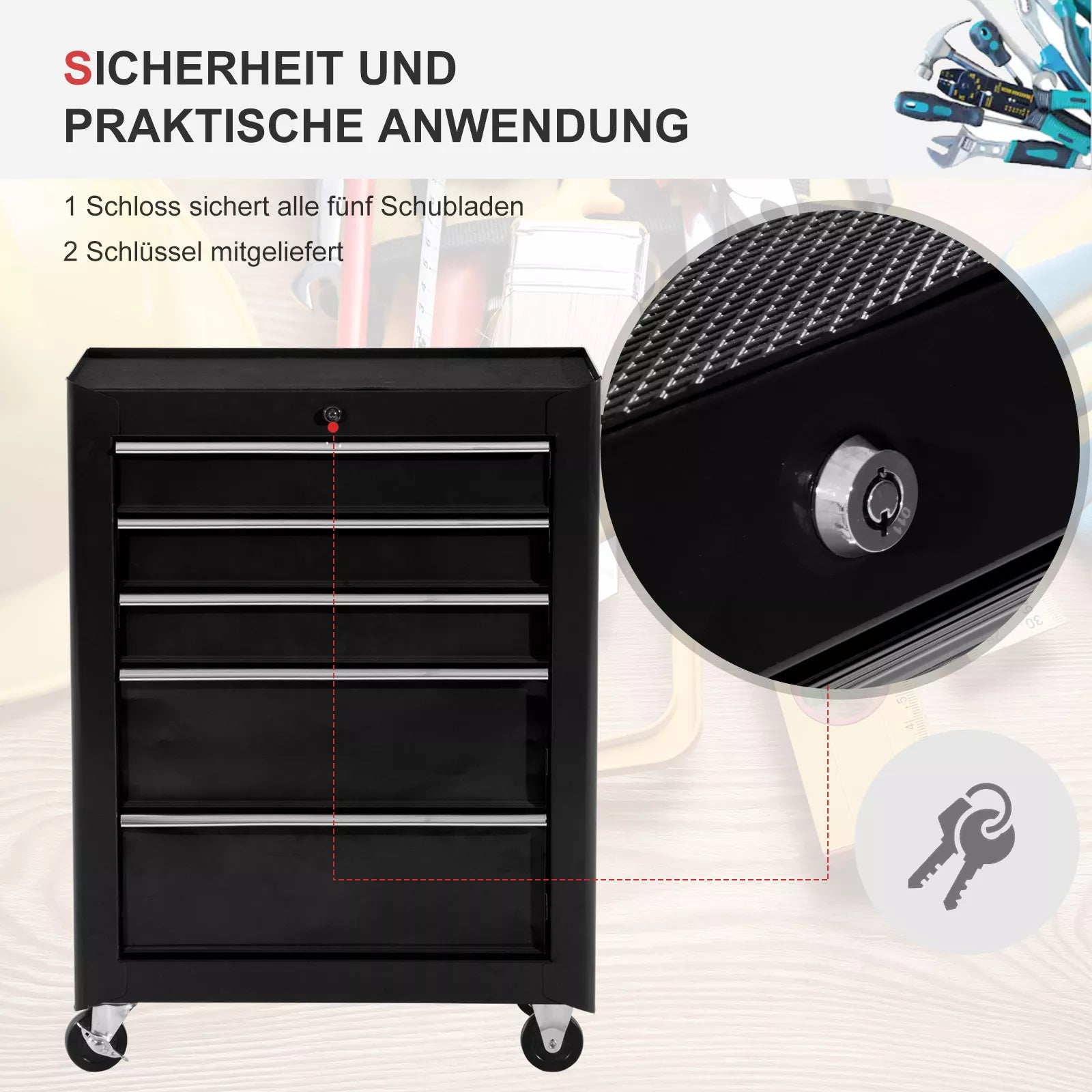 HOMCOM įrankių spintelė, 5 stalčiai, ant ratukų, plieninė, juoda