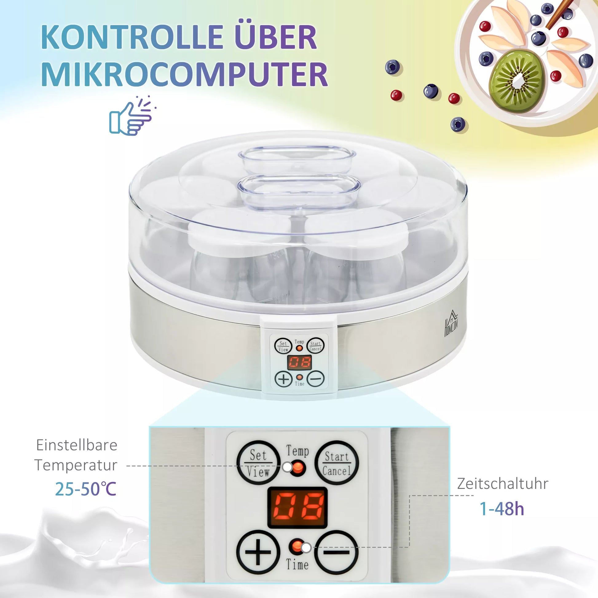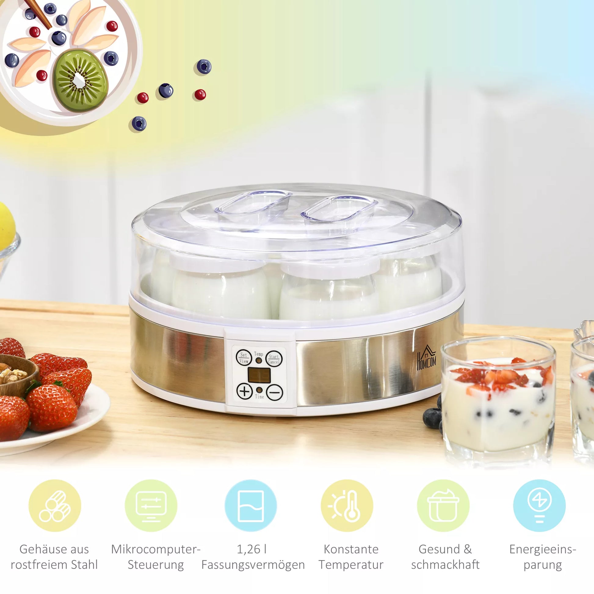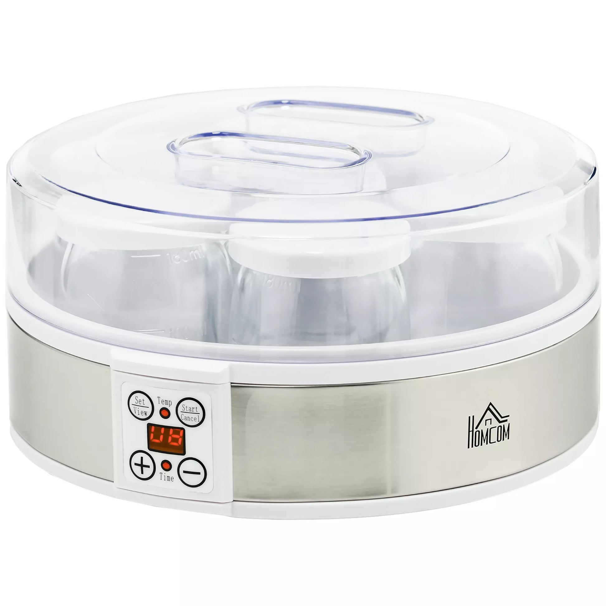 Jogurto gaminimo aparatas, su 7 stiklainiais, nerūdijančio plieno, 24 cm x 24 cm x 13 cm, sidabro + balta