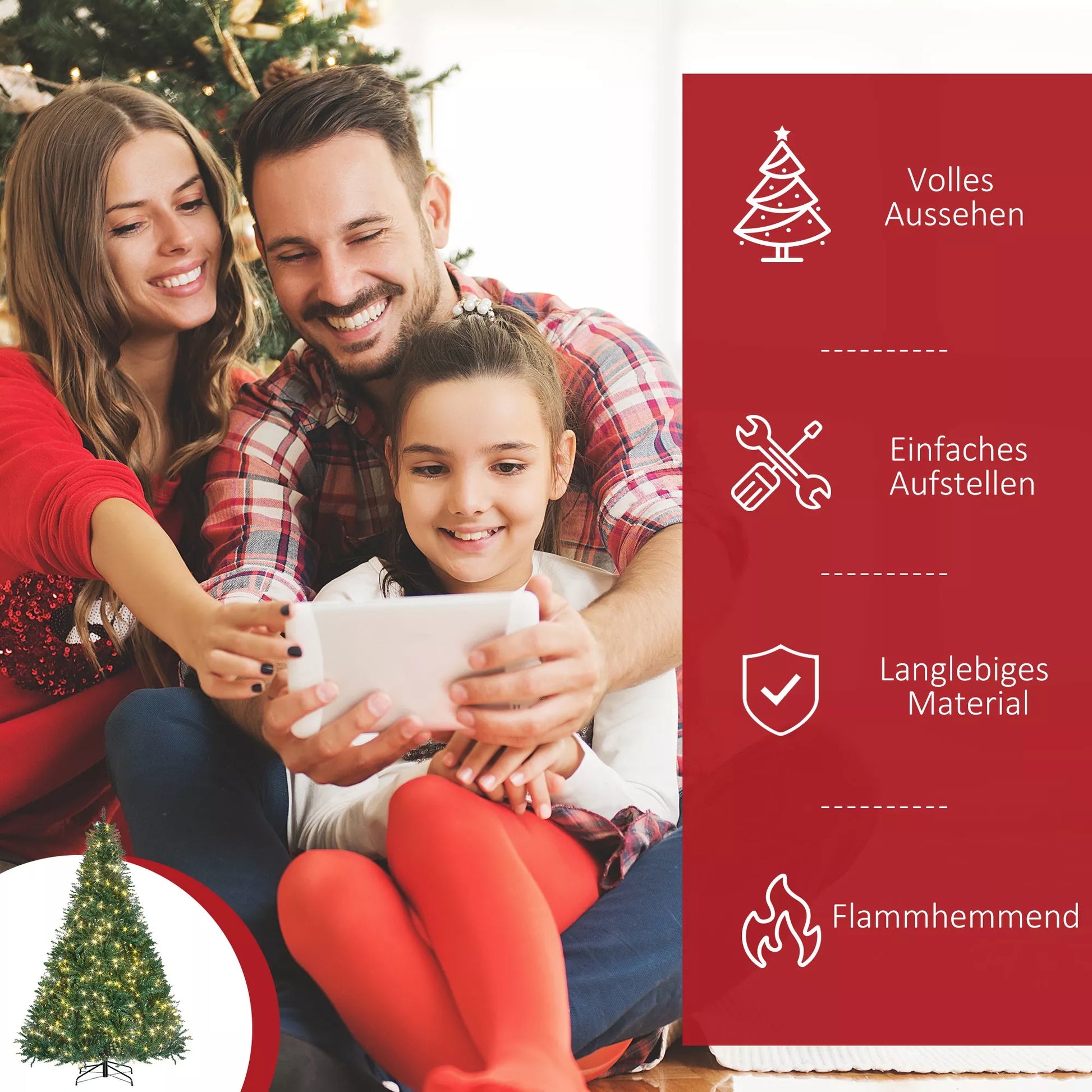 Kalėdinė eglutė, 700 šiltai baltų LED, 2154 šakų, ugniai atspari, plastikas/metalas, 210 x 142 cm, Žalia