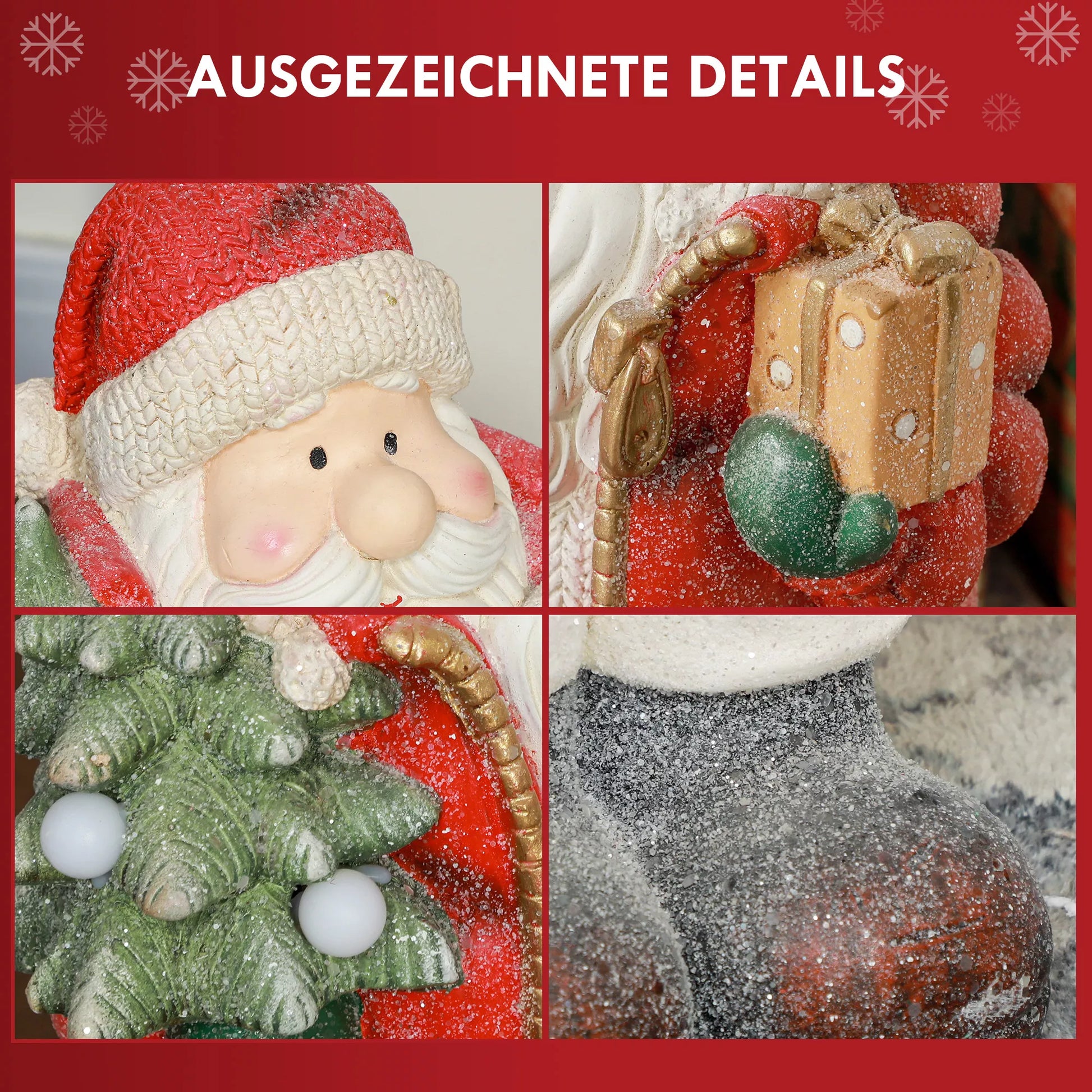 HOMCOM Kalėdų Senelio figūrėlė su eglute ir dovana, 3 šiltai baltos LED lemputės, maitinamas baterijomis, 50 cm