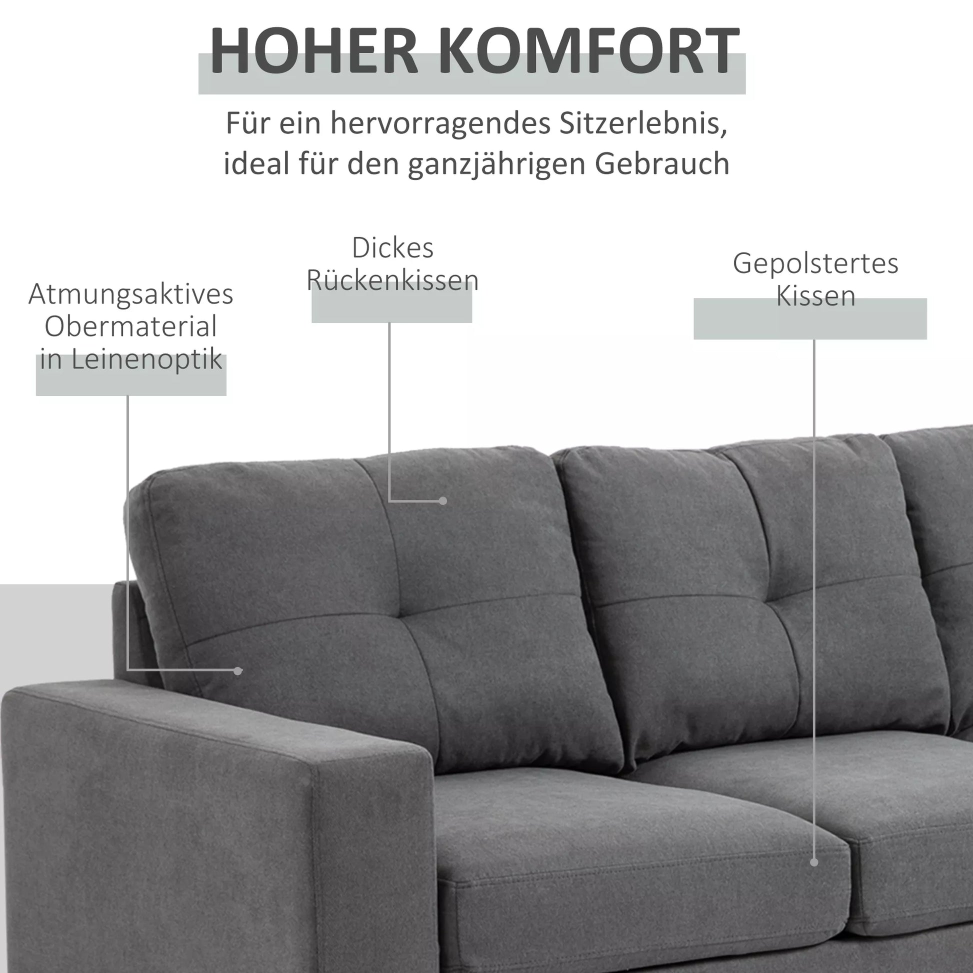 Kampinis 3 vietų sofos komplektas idealiai tinka vakarams su draugais žiūrint filmus ar ramiam skaitymui. Medinis rėmas yra minkštai paminkštintas ir padengtas kvėpuojančiu lininiu užvalkalu. Puikiai tinka bet kokiai aplinkai!