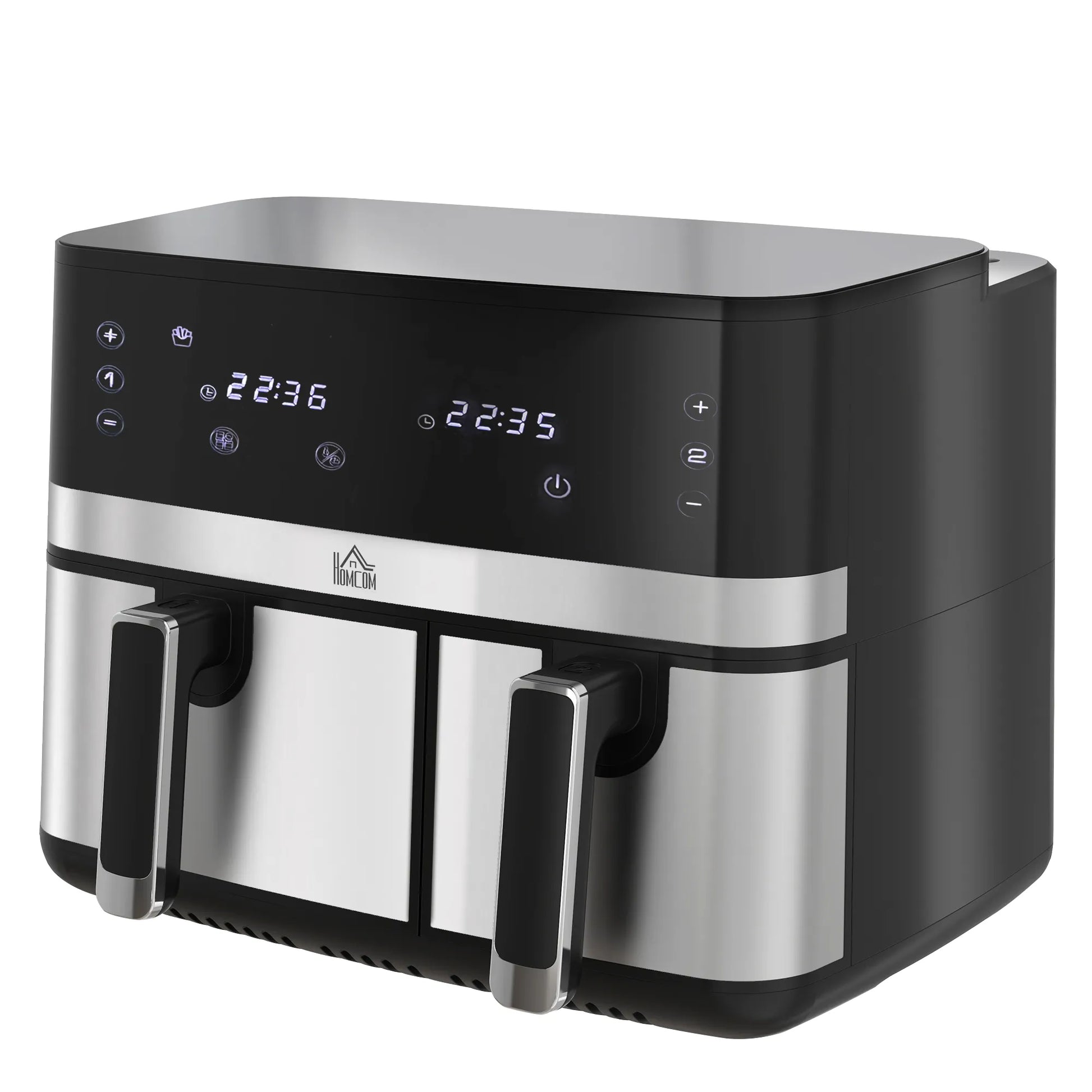 Padvigubinkite malonumą su šia oro keptuve. Dvi atskirtos, individualiai valdomos zonos leidžia vienu metu gaminti du skirtingus patiekalus – tai idealu norint greitai paruošti pilną valgį. Keptuvės reguliuojama temperatūra nuo 80 iki 200 °C leidžia maistą kepti tinkamoje temperatūroje, o 60 minučių laikmatis leidžia nustatyti norimą kepimo laiką ir nereikia nuolat stebėti.