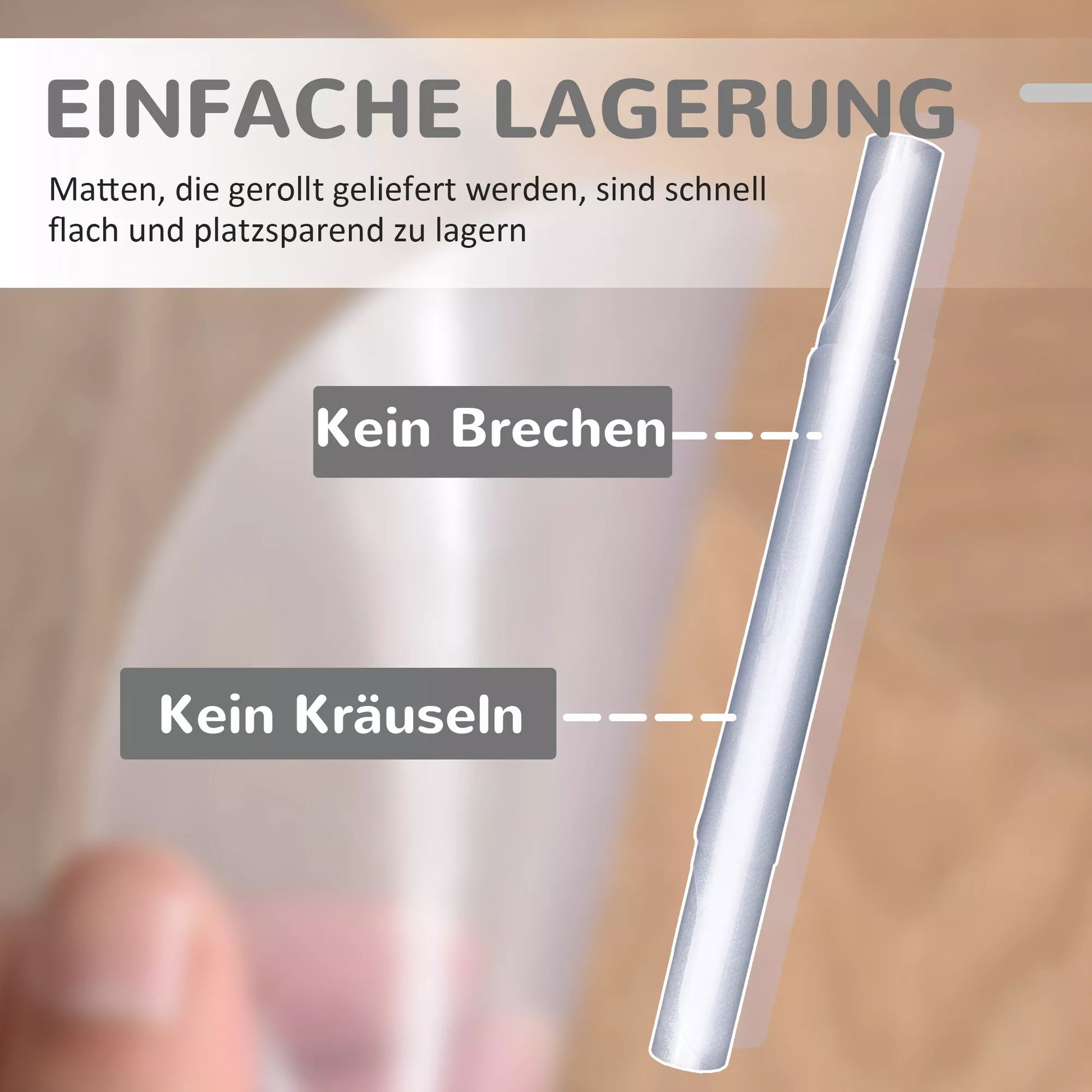 Stilingai apsaugokite savo grindis su kėdės kilimėliu! Jo permatomas dizainas lengvai dera prie bet kokio interjero ir išsaugo natūralią jūsų grindų išvaizdą. Tvirtas kilimėlio medžiaga užtikrina patikimą apsaugą ir leidžia sklandžiai slidinėti kėdei, nesubraižant paviršiaus. Praktiška priemonė kiekvienai darbo vietai!