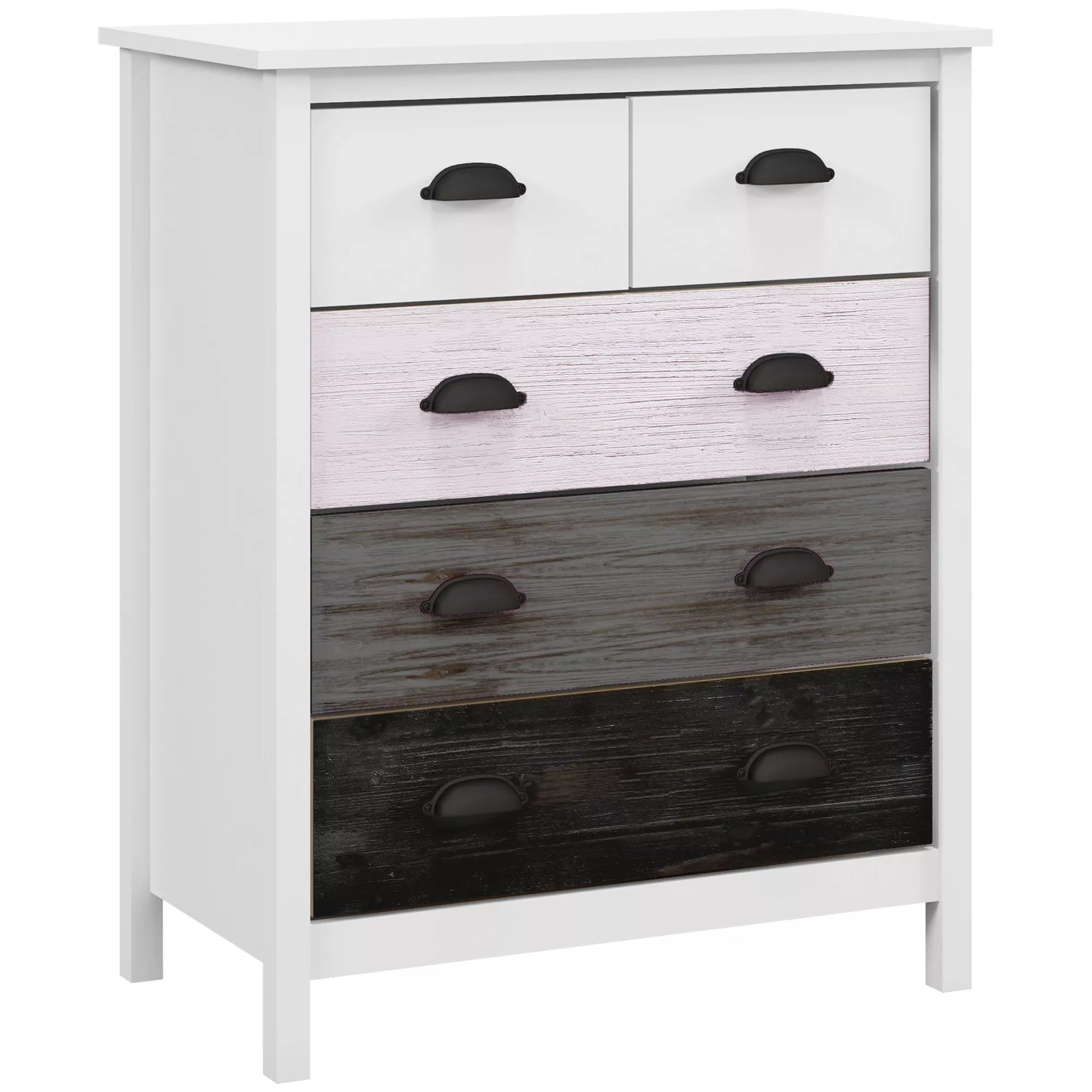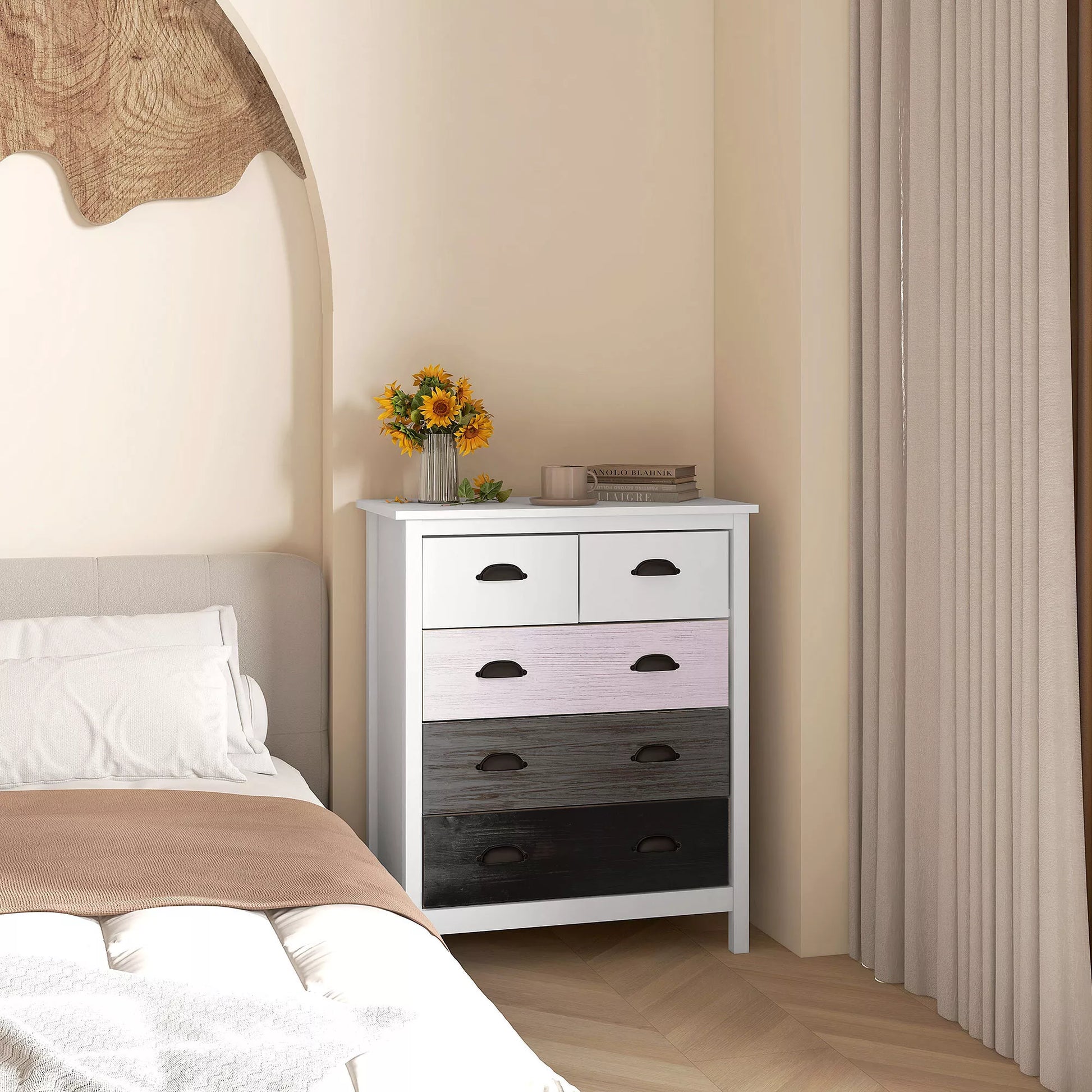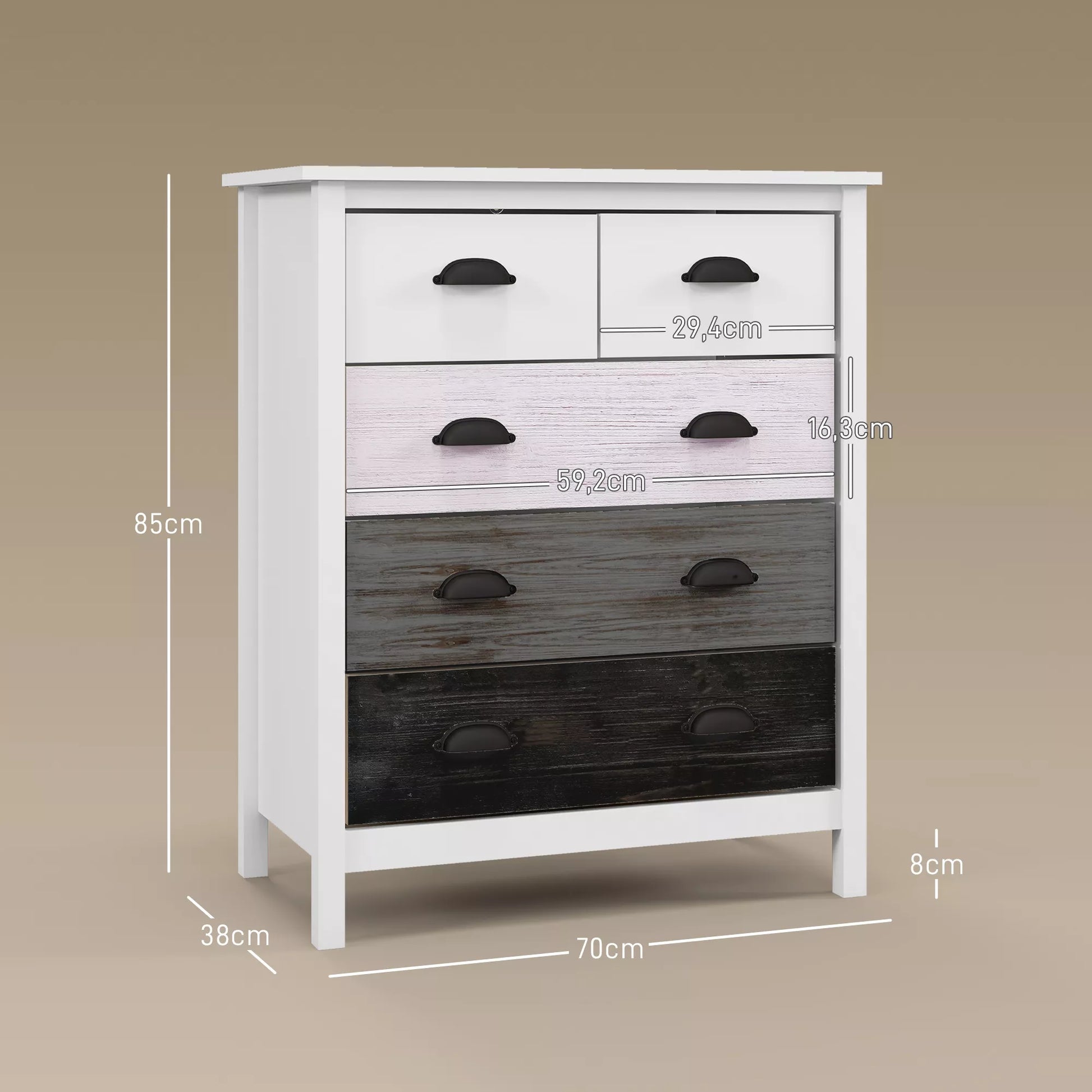 Indauja, komoda, 5 stalčiai, lakuotas paviršius, MDF ir pušies mediena, 70 x 38 x 85 cm, balta