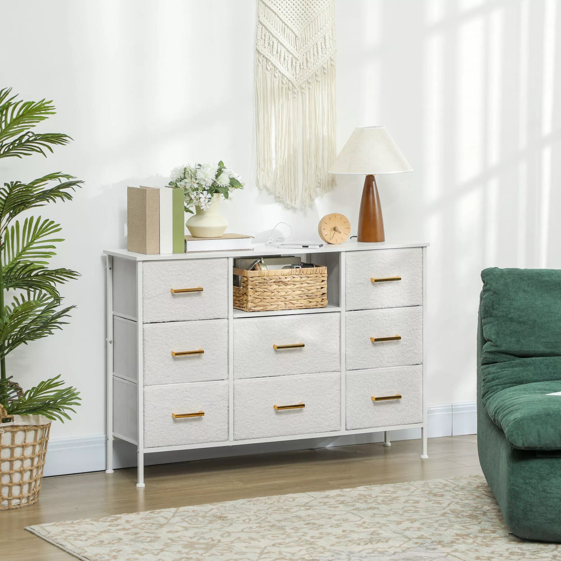 Komoda, sandėliavimo spintelė su 8 audinio stalčiais, elektros lizdų juosta, plieninis rėmas, stalčių spintelė prieškambariui, miegamajam, svetainei ir biurui, kreminės baltos spalvos