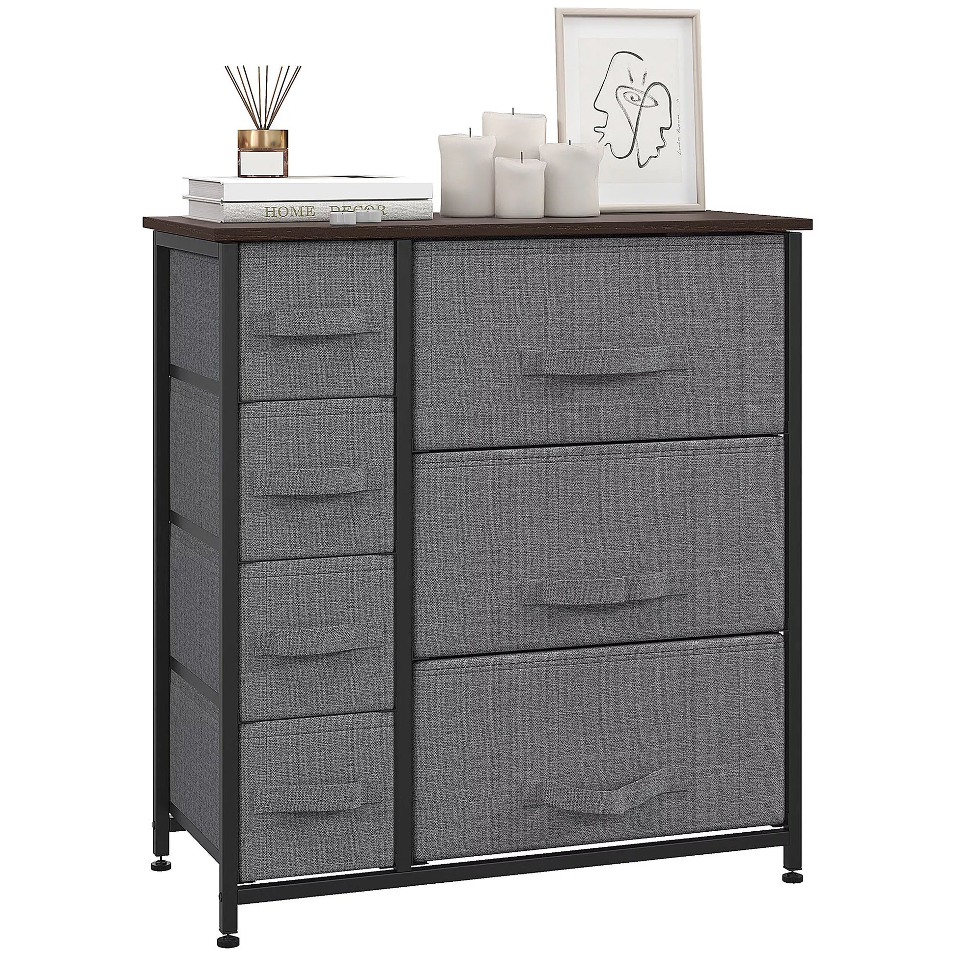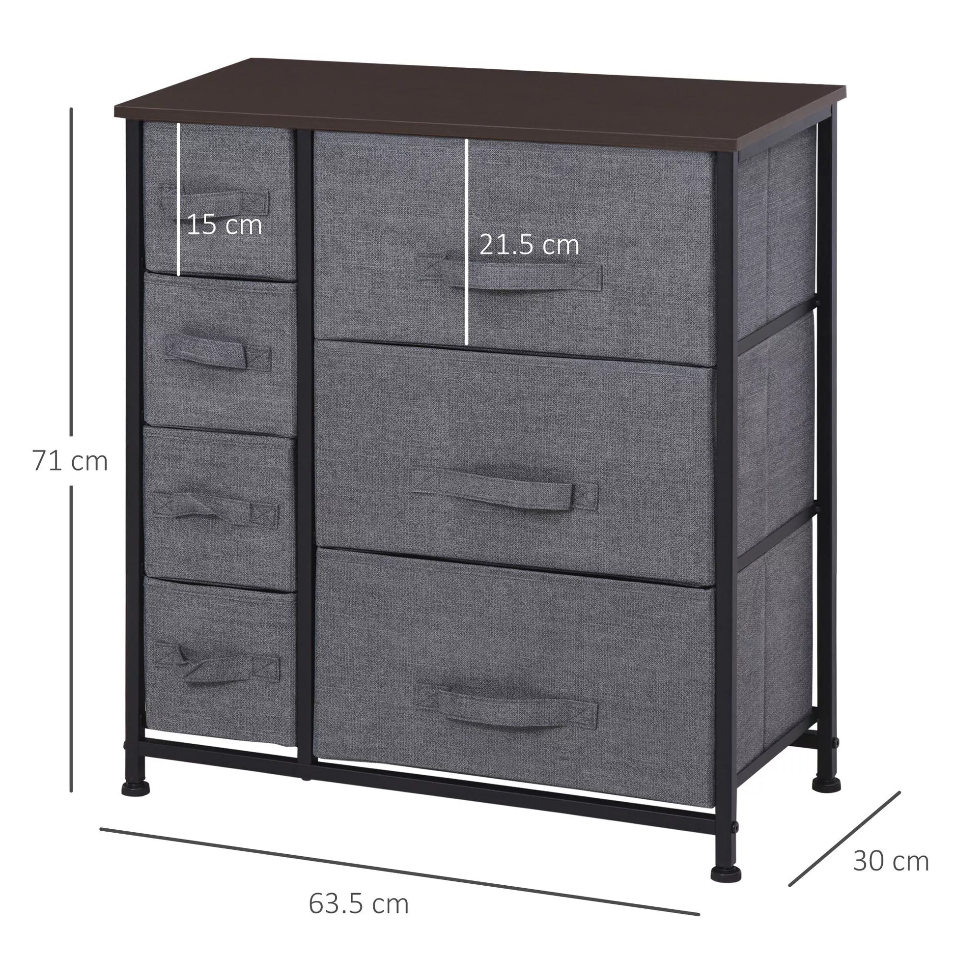 Komoda su 7 sulankstomais audinio stalčiais, neaustinis audinys, metalinis rėmas, 63,5 x 30 x 71 cm, tamsiai pilka