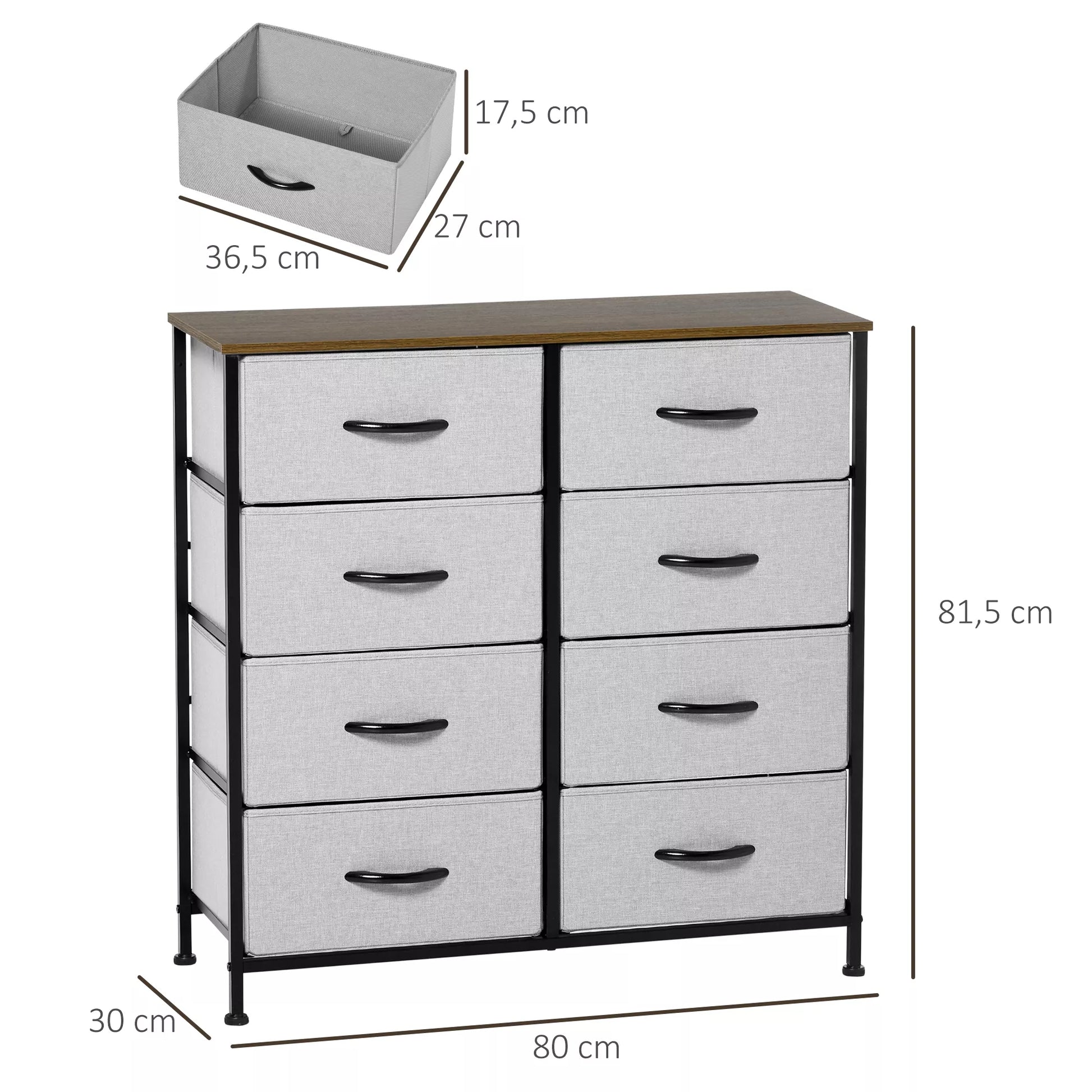 Atraskite stilingą komodą – puikų namų daiktų laikymo partnerį. Su 8 talpiomis audinio stalčiais ji suteikia pakankamai vietos drabužiams, knygoms, žurnalams ir dokumentams laikyti. Klasikinis dizainas harmoningai dera prie bet kokio interjero ir padeda palaikyti tvarką bet kurioje patalpoje. Mėgaukitės funkcionalumo ir estetikos deriniu, kuris padės jūsų namus padaryti tvarkingus ir jaukius.