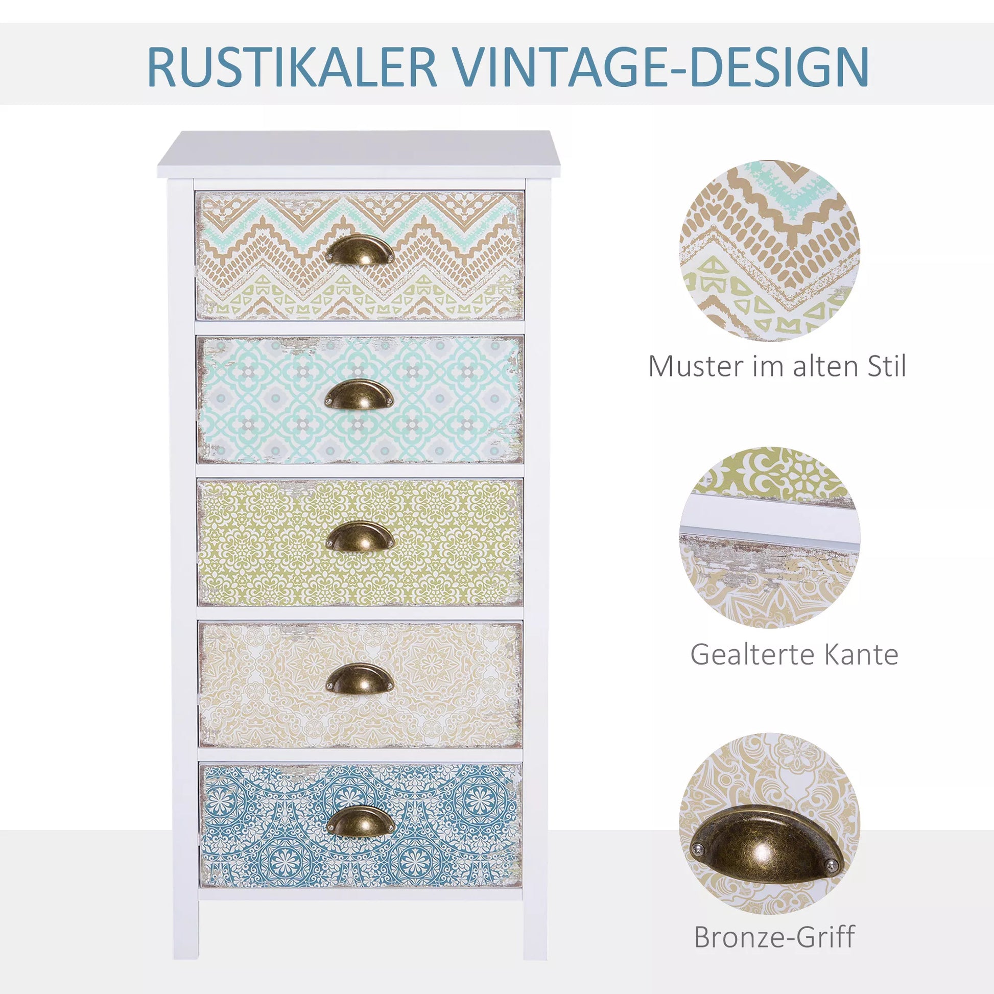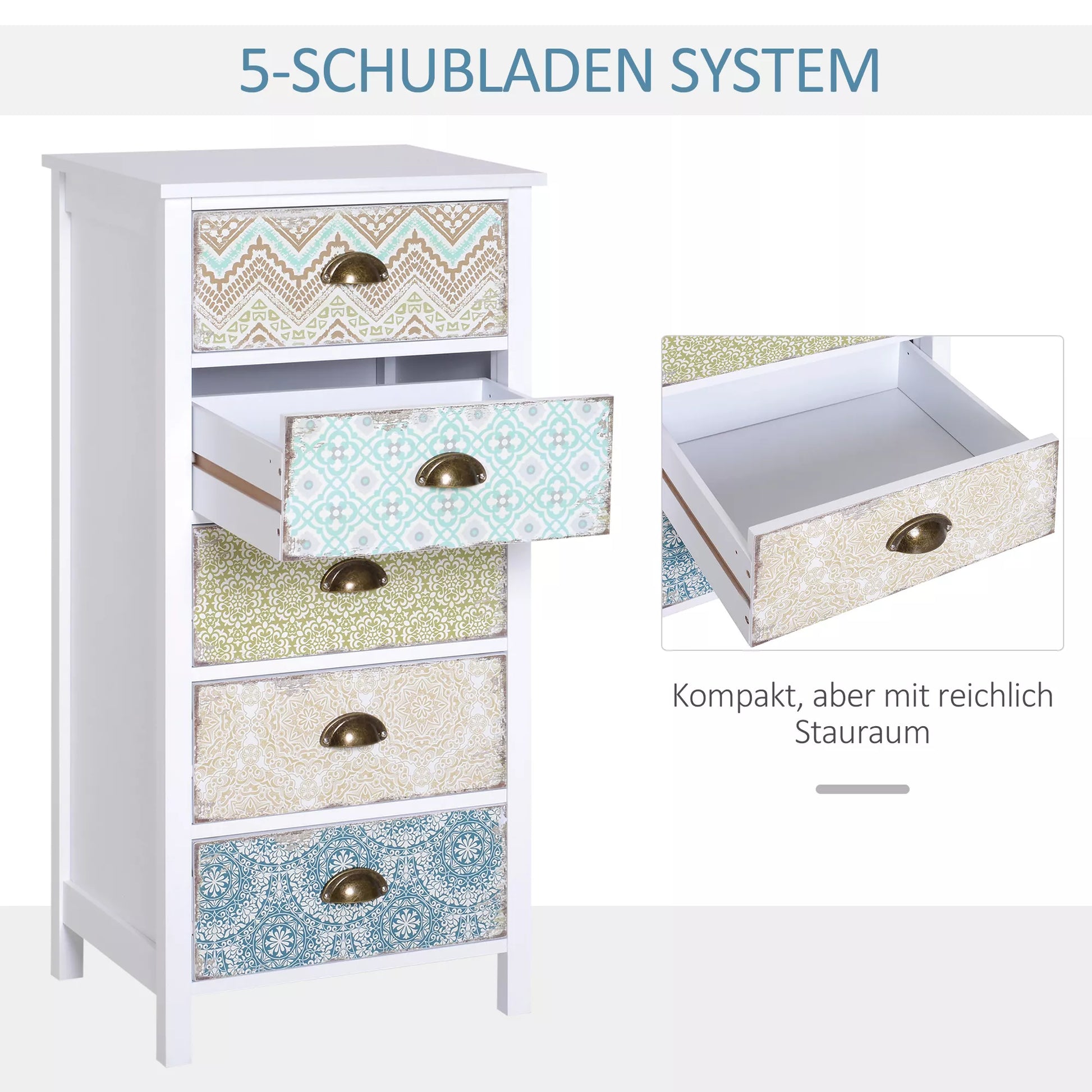 Komoda su stalčiais Siedeboard, modernaus dizaino, 5 stalčiai, 46 cm x 34 cm x 97,5 cm, Spalvota