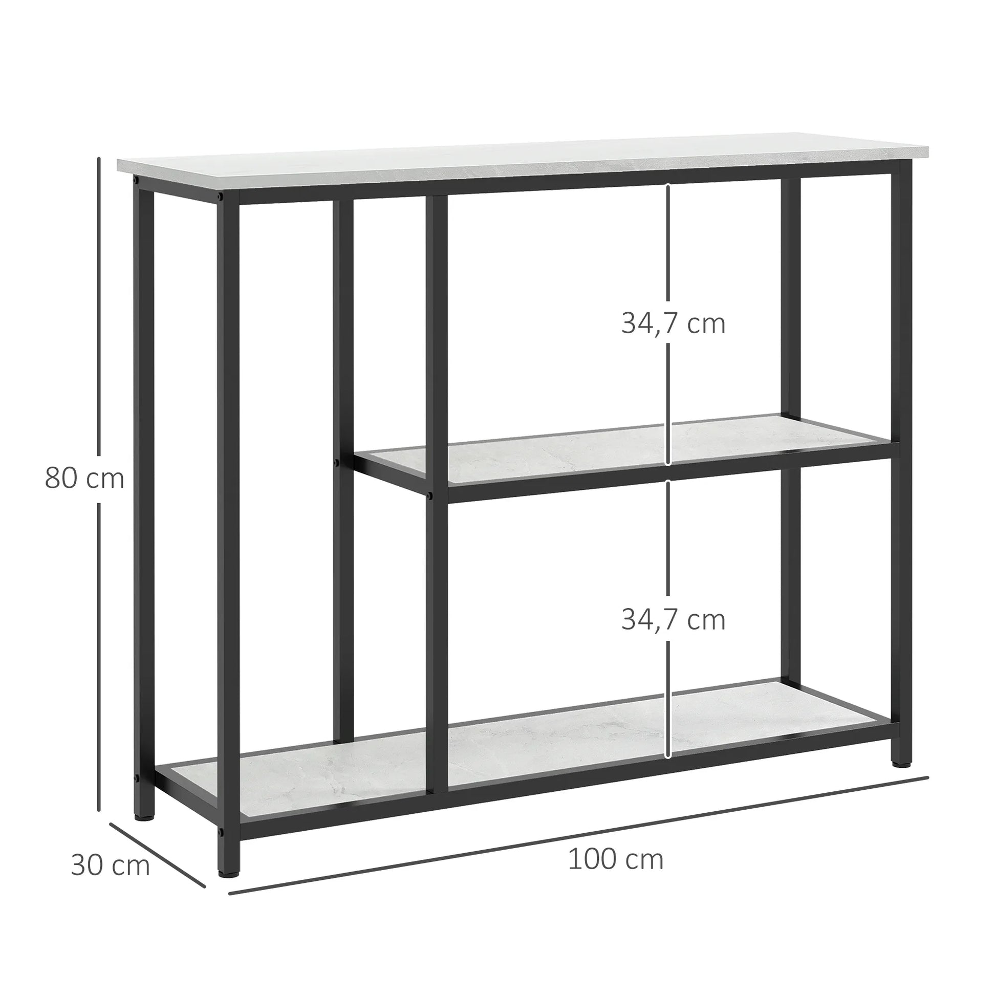 Pramoninio dizaino konsolė, 2 lentynos, marmuro imitacija, juoda + balta