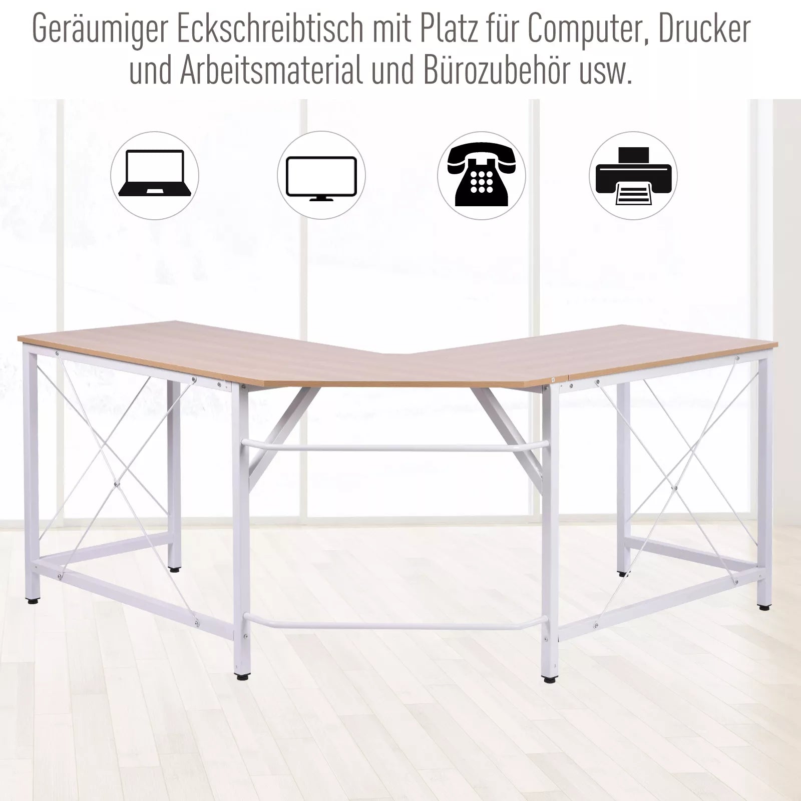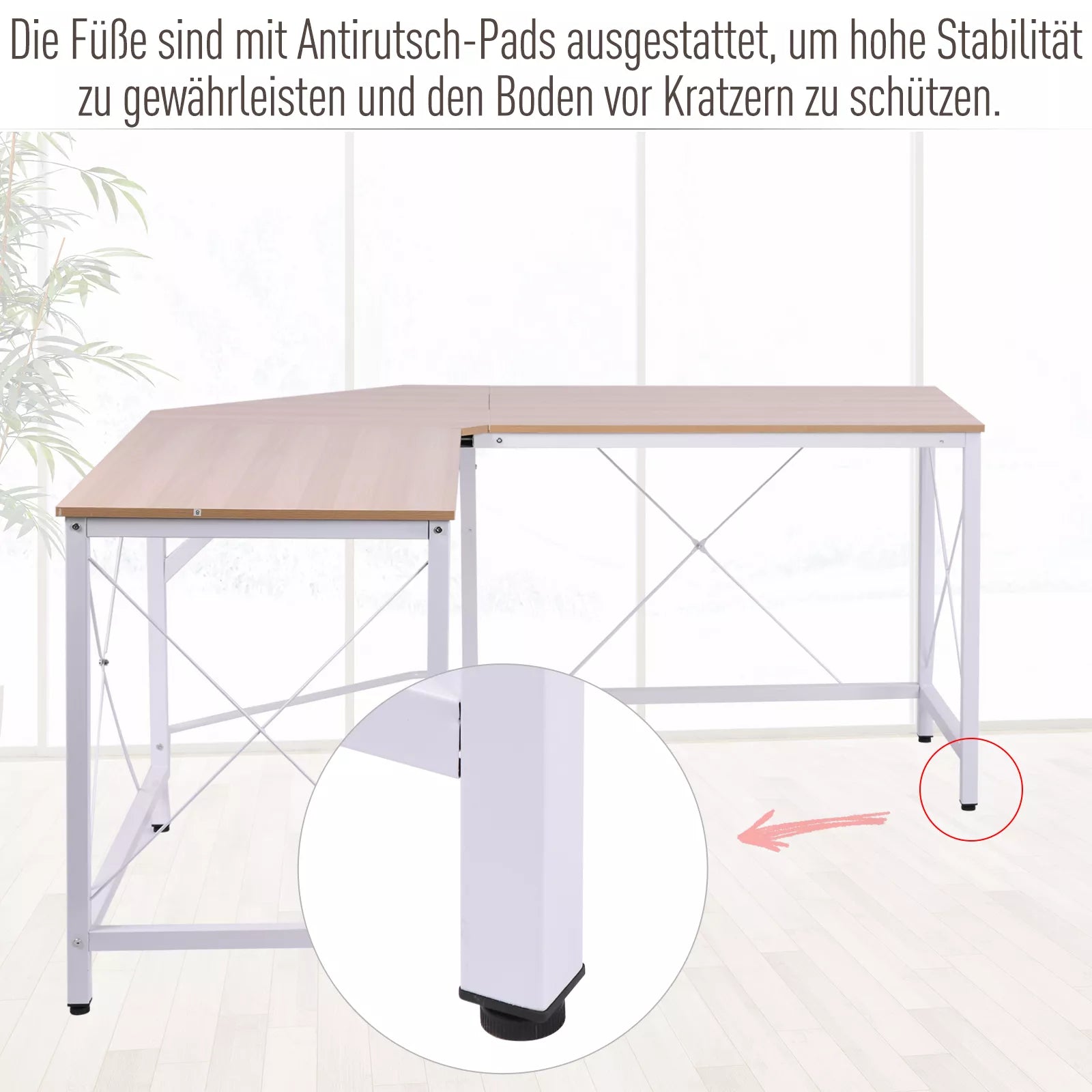 Šis modernus kampinis rašomasis stalas yra puikus sprendimas jūsų namų biurui, žaidimų kampeliui ar laisvalaikio kambariui. Kampinis dizainas, puikiai išnaudojantis net ir mažų patalpų kampuose esančią erdvę, optimizuoja jūsų darbo vietos dydį. Tvirta plieninė konstrukcija ir didelis stalviršis su lengvai prižiūrima melamino danga suteiks jums daug vietos visiems jūsų biuro ar rankdarbių reikmenims. Dėl individualiai reguliuojamo aukščio kojelių jūsų kampinis rašomasis stalas stovės stabiliai net ant nelygios grindų dangos. Stilingas ir praktiškas – šis rašomasis stalas tiks bet kuriuose namuose!
