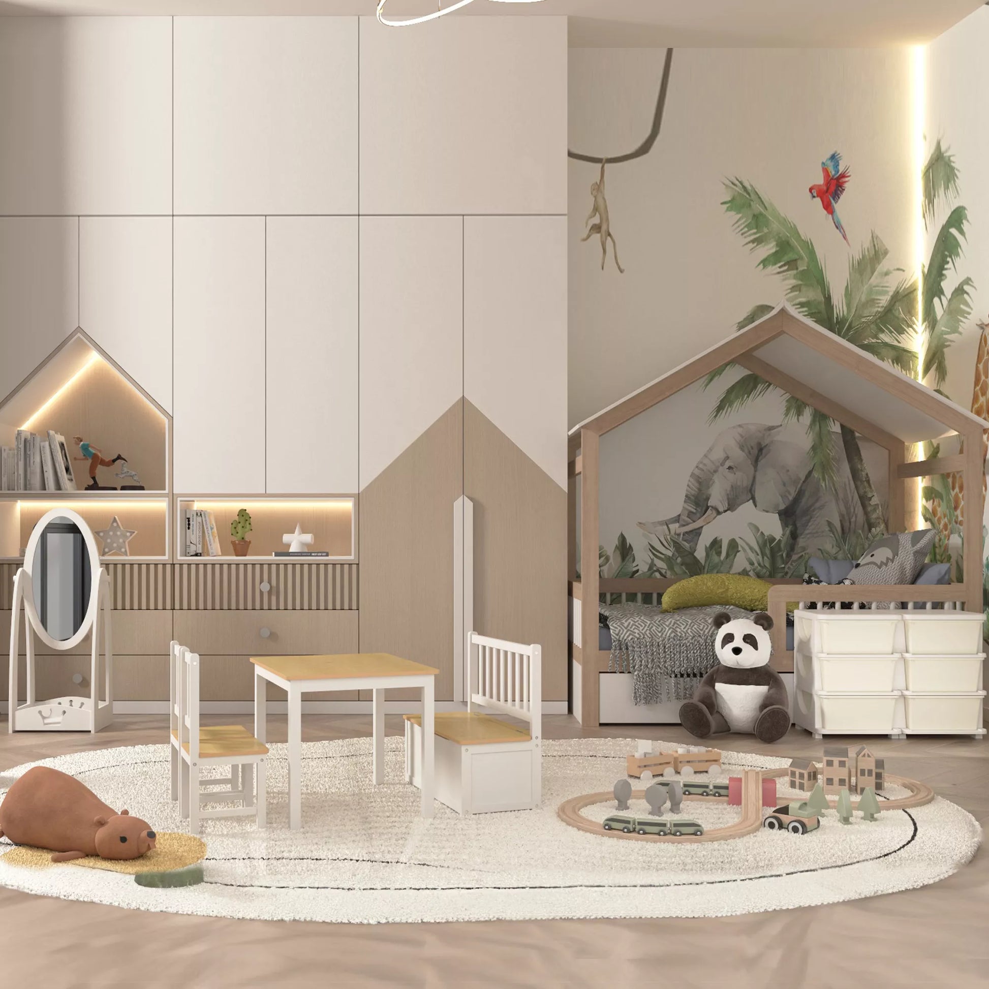 - ✔ Šeši dideli stalčiai ir platus paviršius suteikia daug vietos žaislams, drabužiams, lėlėms, pagalvėlėms ir kt.