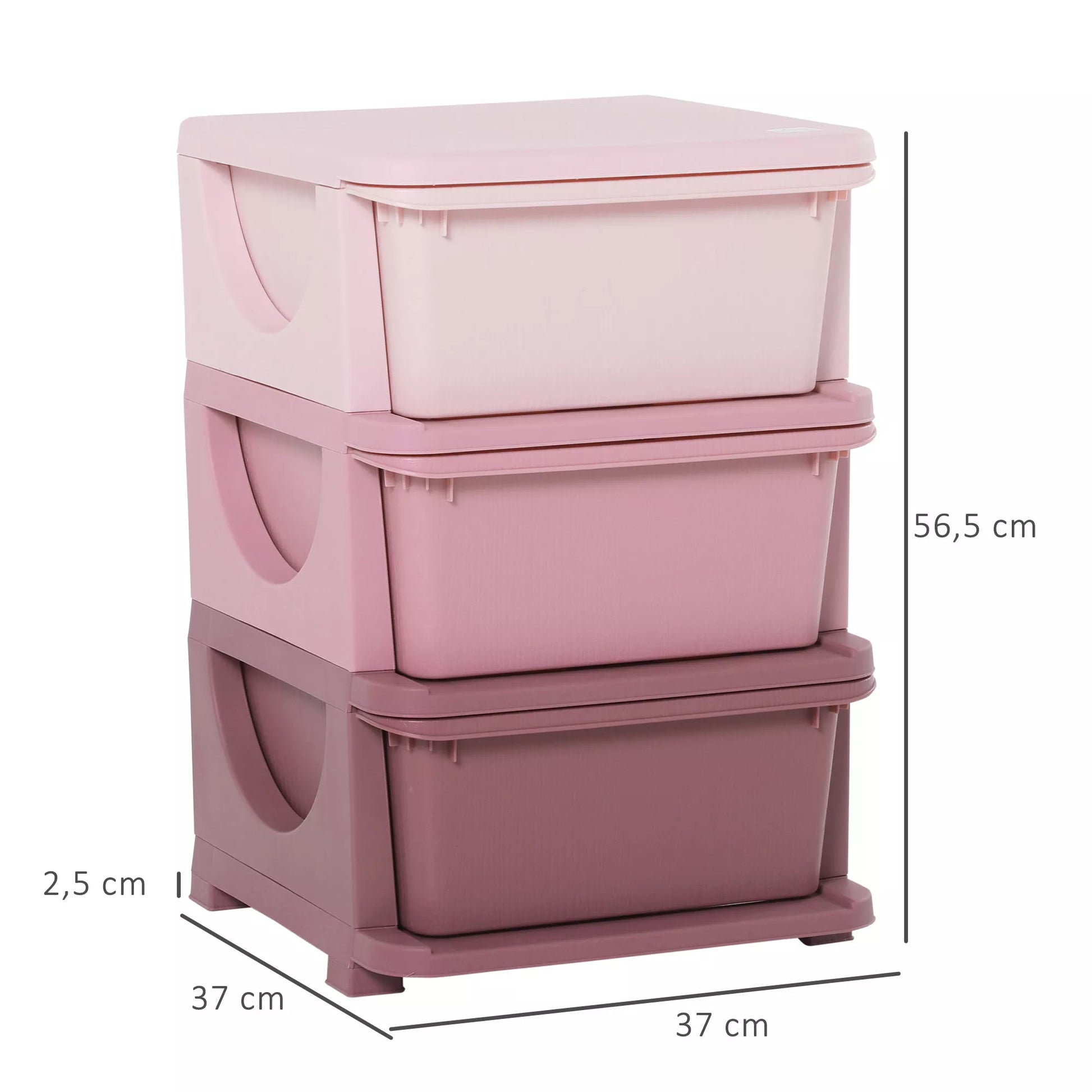 Su žaviomis „HOMCOM“ laikymo dėžėmis tvarkymasis taps malonumu! Vaikams pritaikytas dizainas su užapvalintais kraštais užtikrina saugumą ir linksmybes vienu metu. Trys erdvūs stalčiai suteikia daug vietos žaislams, drabužiams, pagalvėlėms ir kitiems daiktams. Taip tvarkytis tampa paprasta. Suteikite džiaugsmo ir tvarkos vaikų kambariui – su praktiškomis „HOMCOM“ laikymo dėžėmis!