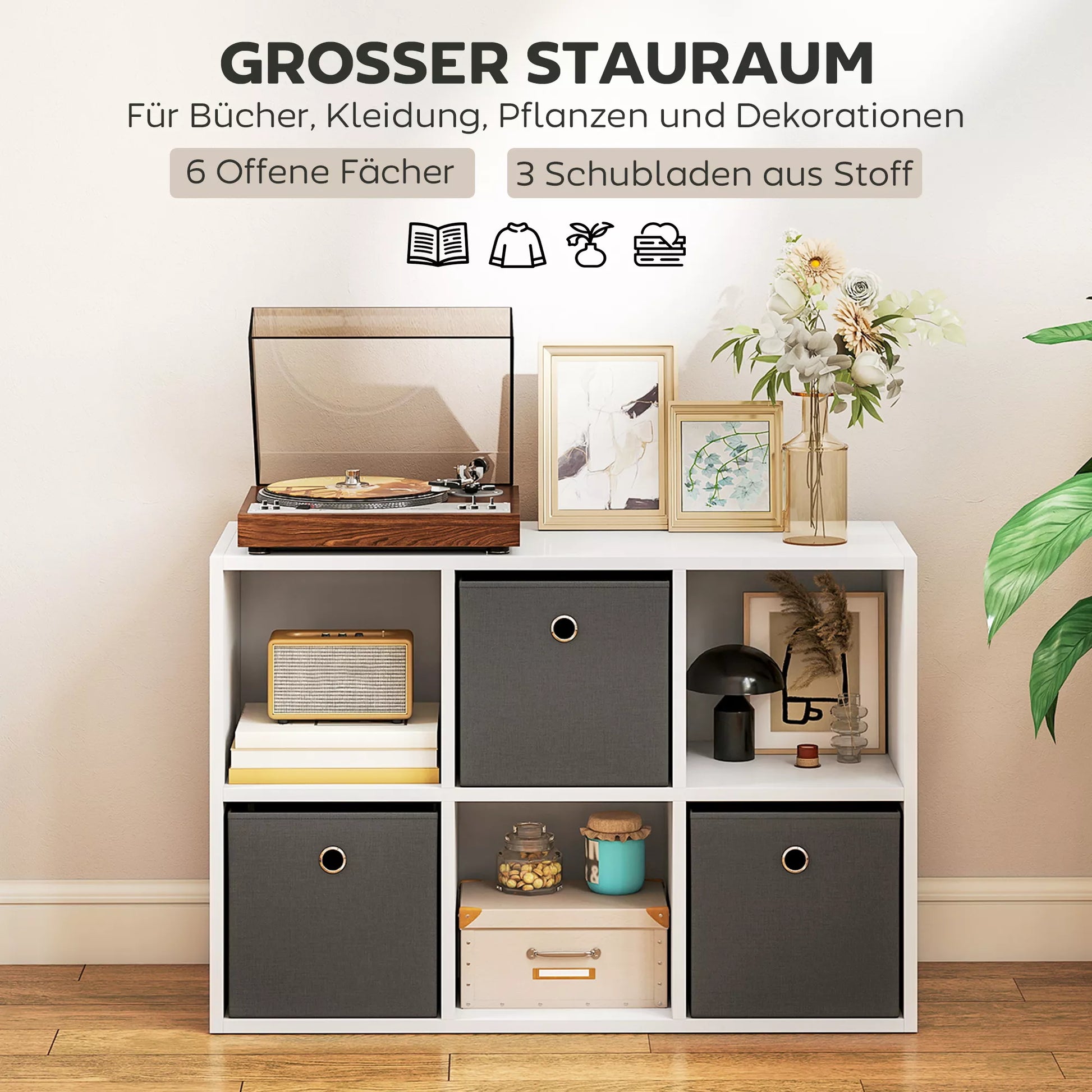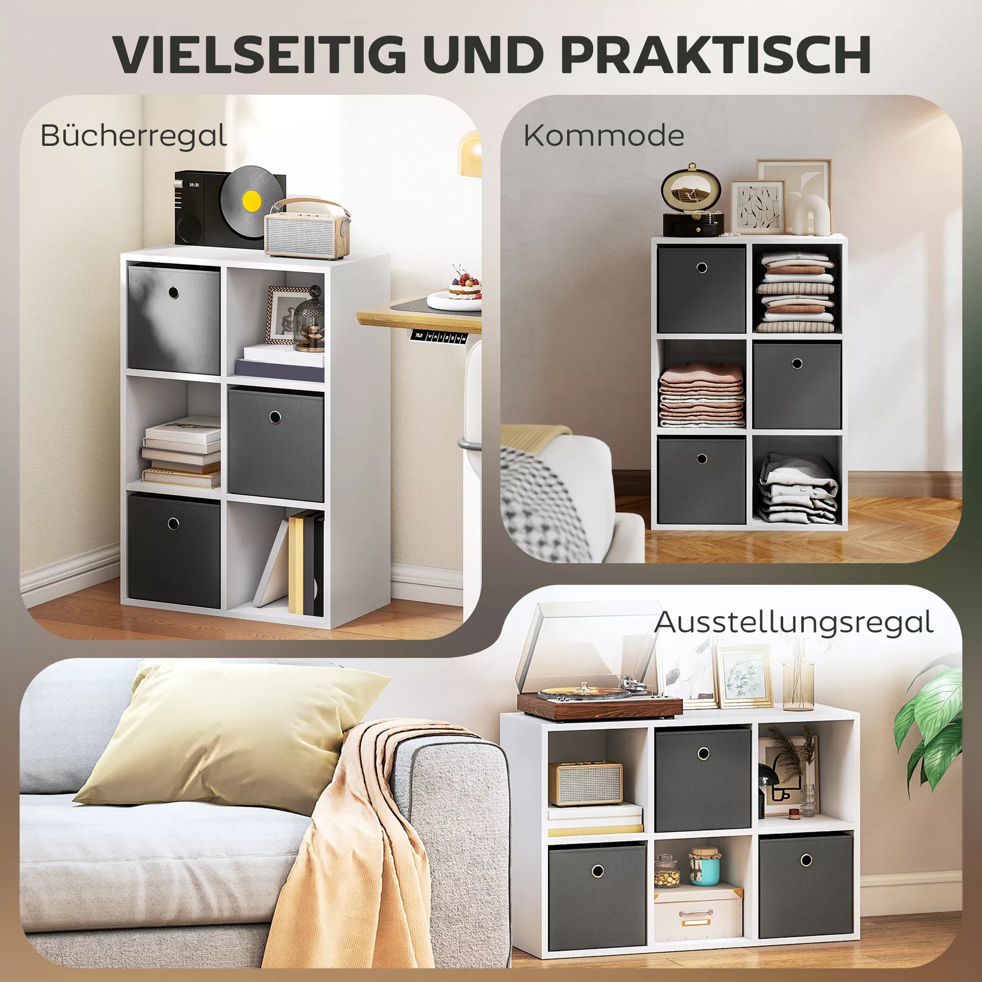Paversti netvarkingą kambarį tvarkos oaze su „Cube Storage“. Įsivaizduokite kambarį, kuriame knygos, augalai ir drabužiai yra tvarkingai sudėti 6 erdvėse kubuose ir 3 audinio stalčiuose. Pagaminta iš melamino dengtos medžio drožlių plokštės, ši lentynėlė yra atspari įbrėžimams ir lengvai valoma. Universalus dizainas harmoningai dera su bet kokia patalpa, nes ją galima pastatyti horizontaliai arba vertikaliai.