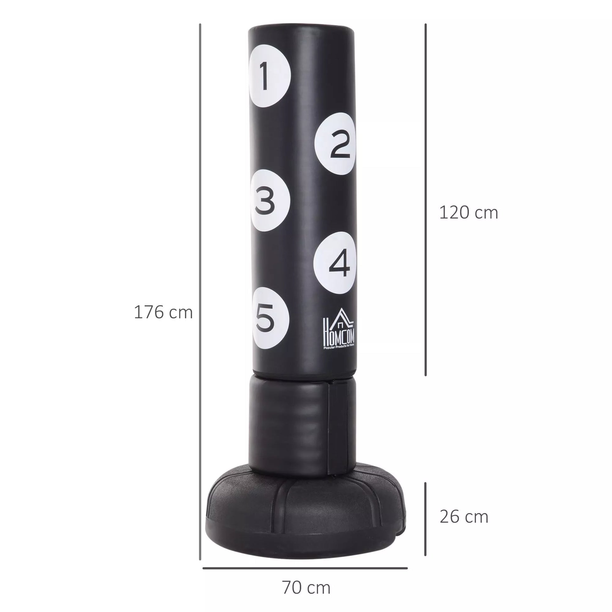 Laisvai stovintis bokso maišas su stovu ir plastiko pagalve, 176 cm, tinka profesionalams ir pradedantiesiems, juodos spalvos