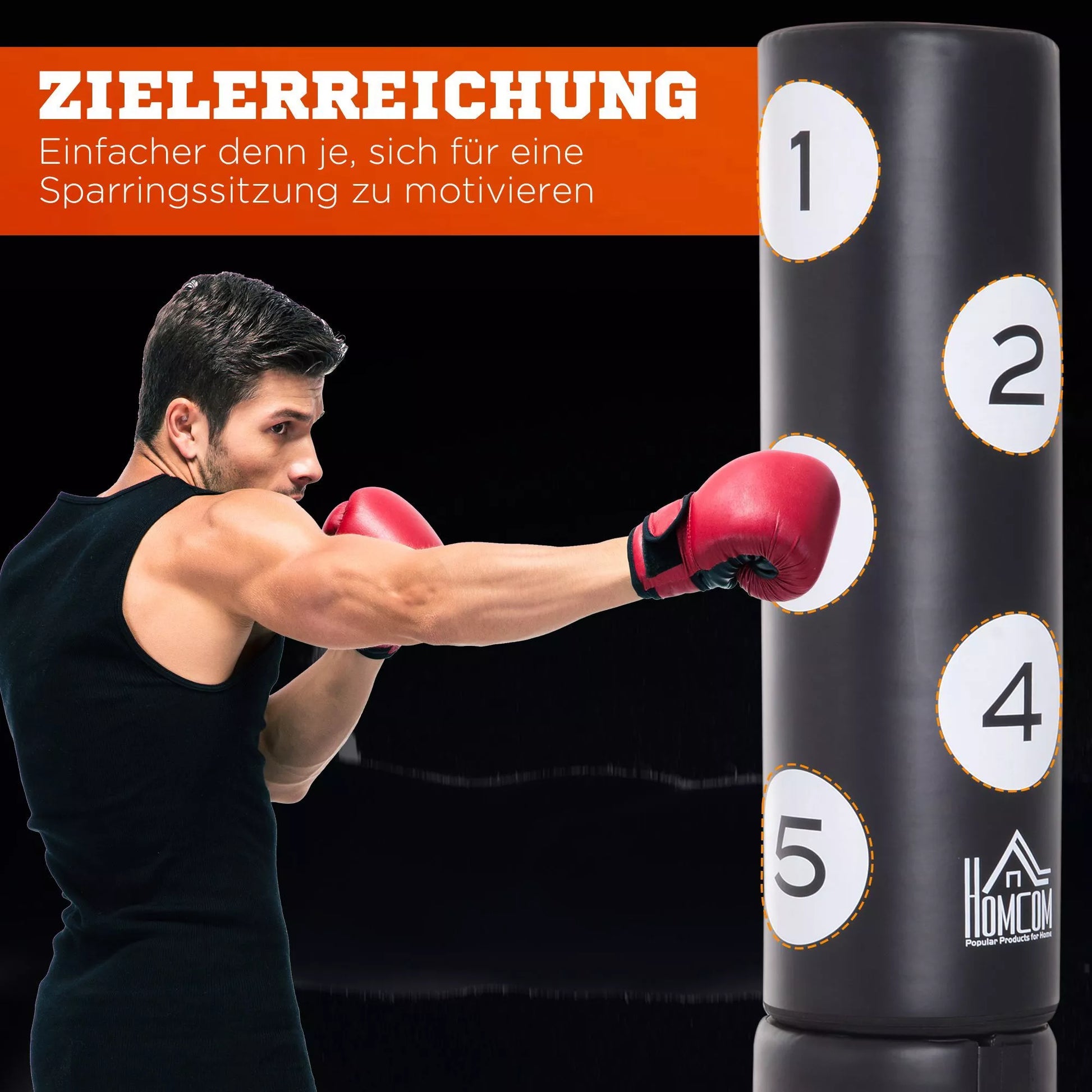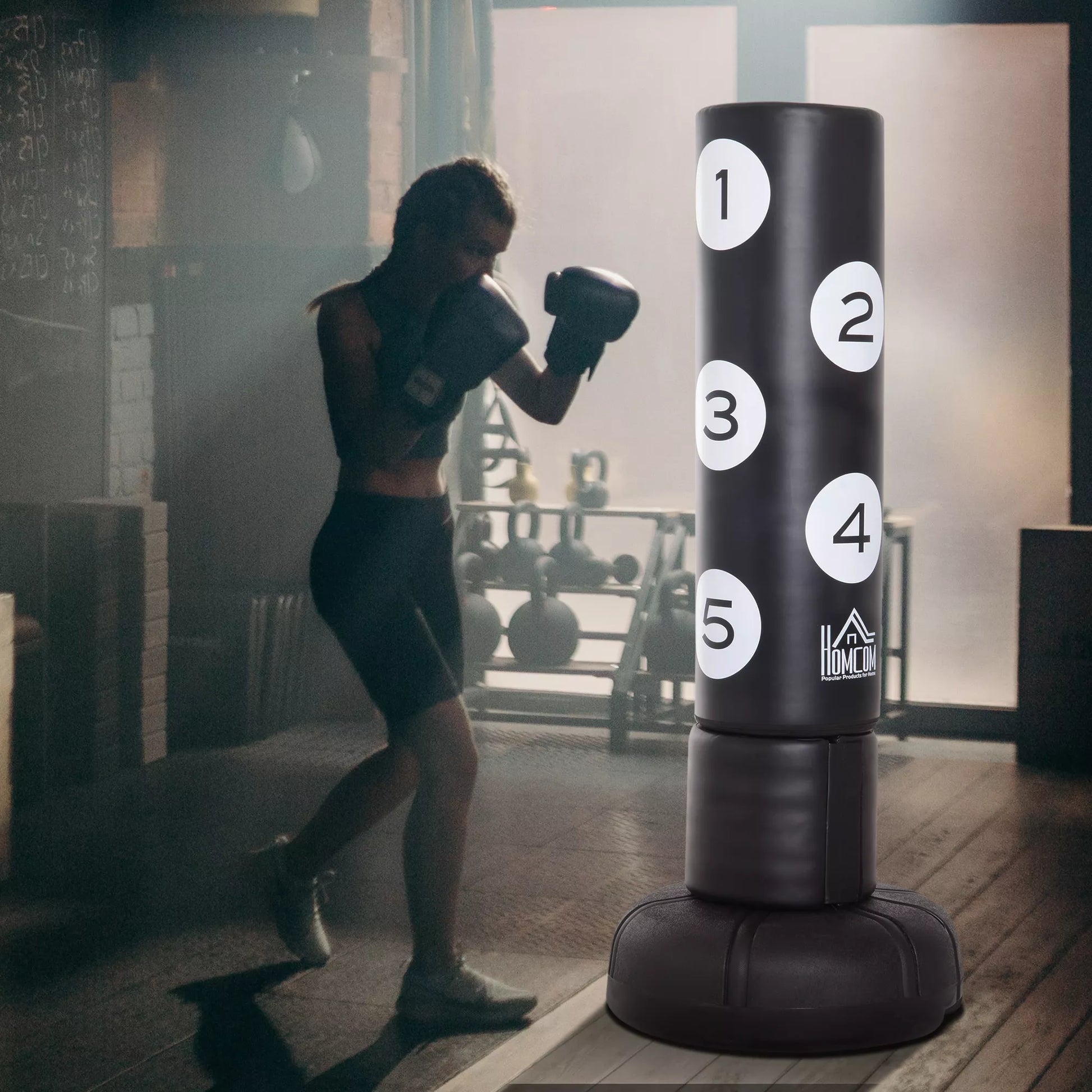 Su stovinčiu bokso maišu treniruotės namuose tampa lengvos ir saugios. Tvirtą stovą užtikrina masyvi plastikinė bazė, kurią galima pripildyti vandeniu arba smulkiu smėliu. Stovinčio bokso maišo smūgiavimo paviršius yra patvarus ir paminkštintas, o FLEX sistema užtikrina, kad bokso stovas amortizuotų smūgius ir smūgius, apsaugodamas nuo traumų. Paviršiaus numeravimas leidžia tiksliai treniruoti kablys, smūgius ir smūgius, o surinkimas ir užpildymas yra paprastas ir greitas.