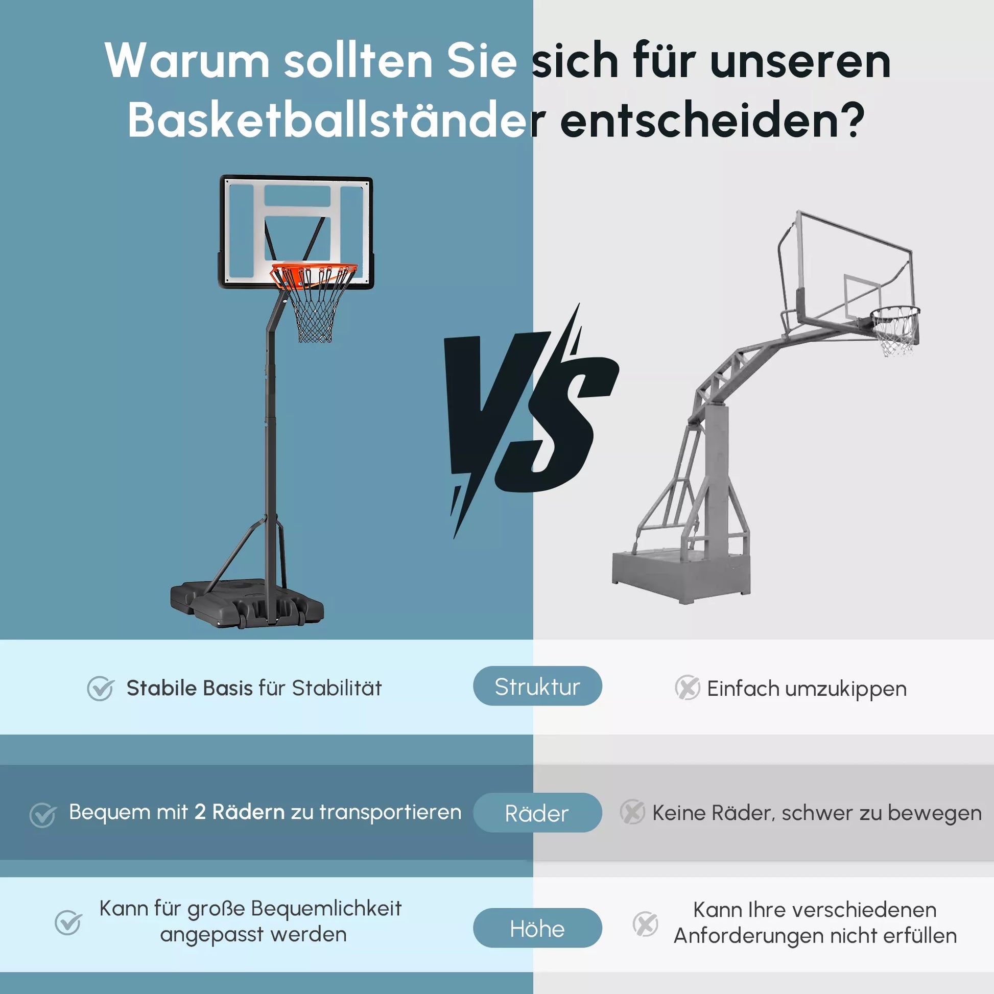 HOMCOM Lauko krepšinio lankas su stovu, 255–305cm aukščio reguliavimo krepšinio stovas su ratukais, krepšinio lankinio stovas, krepšinio sistema, plienas