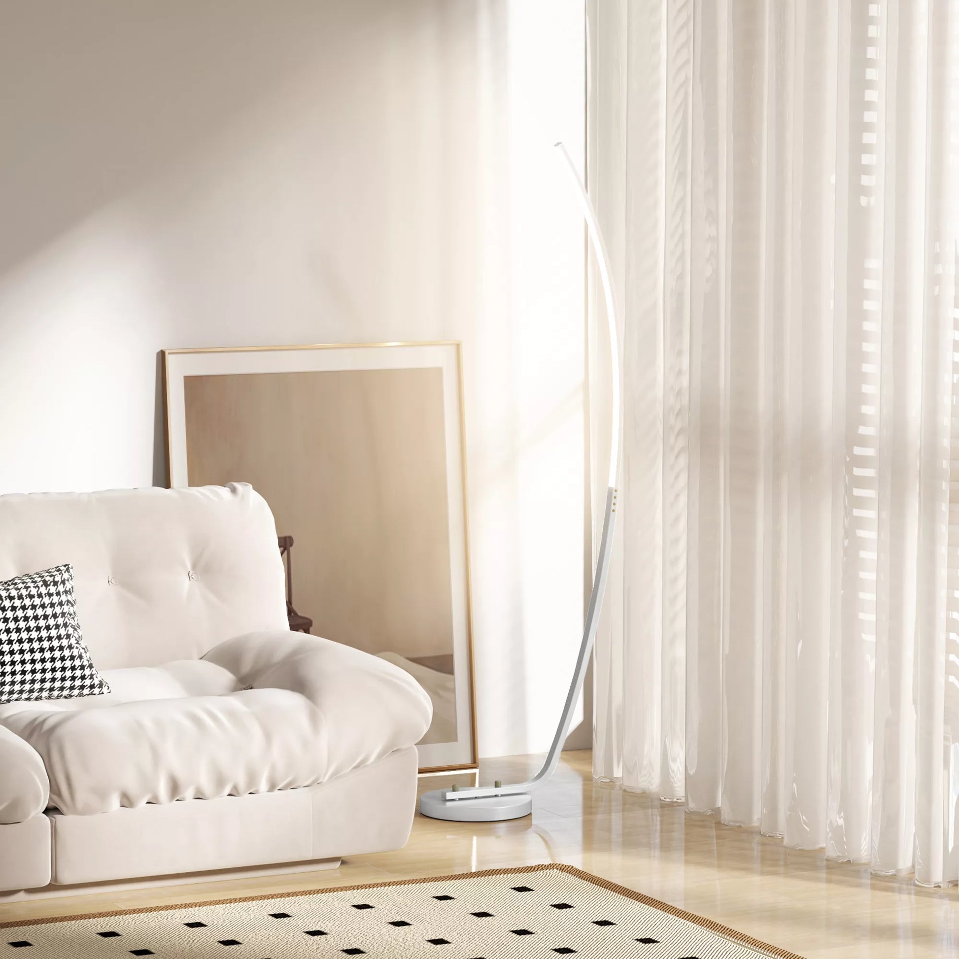 Stilingai apšvieskite savo erdves su šia pastatoma lempa svetainei. Aukštas, unikaliai lenktas LED juostelės lankstinės lempos dizainas užtikrina efektyvų, natūralų apšvietimą ir modernią atmosferą svetainėje ar miegamajame. Pritemdomos pastatomos lempos ryškumą lengva reguliuoti kojiniu jungikliu, o tvirtas metalinis rėmas užtikrina didelį stabilumą. Elegantiškas jūsų namų papildymas.