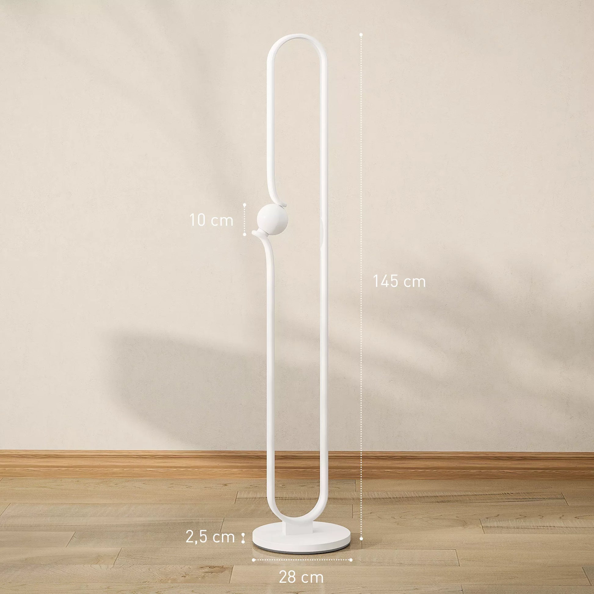 Patirkite erdvės transformaciją su šia LED lempa, kurioje susilieja funkcionalumas ir menas. Muzikos natų įkvėptas dizainas, sujungtas su patraukliu stikliniu gaubtu ir LED juostelėmis, šis toršeras suteikia malonią 4000K šviesą, idealiai tinkančią bet kuriam jūsų svetainės kampui. Patogus kojinis jungiklis leidžia lengvai reguliuoti ryškumą ir režimus, todėl tai yra stilingas jūsų namų apšvietimo akcentas.