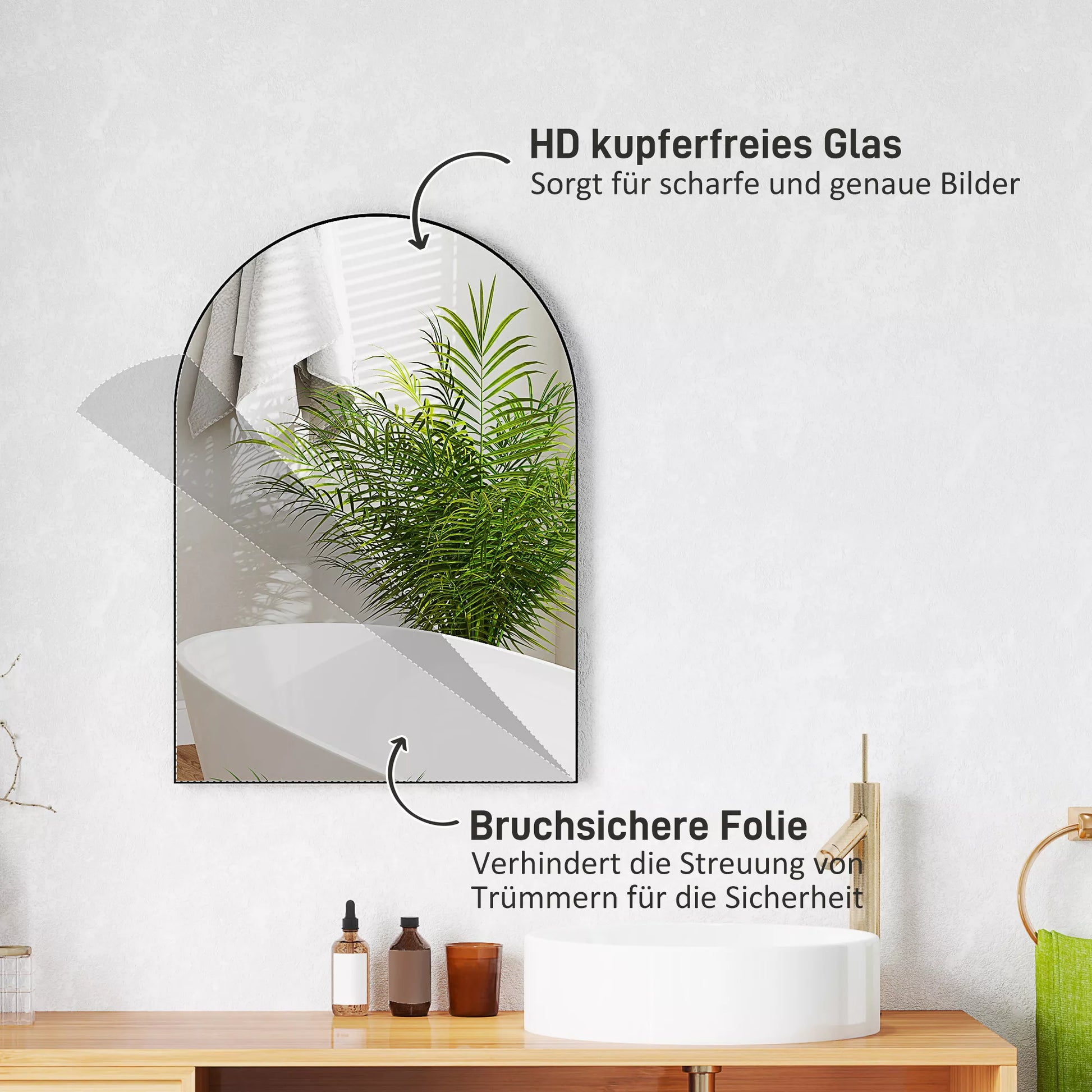 Atraskite elegantišką vonios veidrodį su lenkta forma, kurio matmenys yra 50 x 70 cm, kuris suteiks elegantišką akcentą bet kuriai patalpai. 3 cm storio aliuminio lydinio rėmas yra atsparus rūdims ir vandeniui, todėl idealiai tinka drėgnoms vonios patalpoms. Be to, sieninis veidrodis užtikrina ilgalaikę kraštų apsaugą.