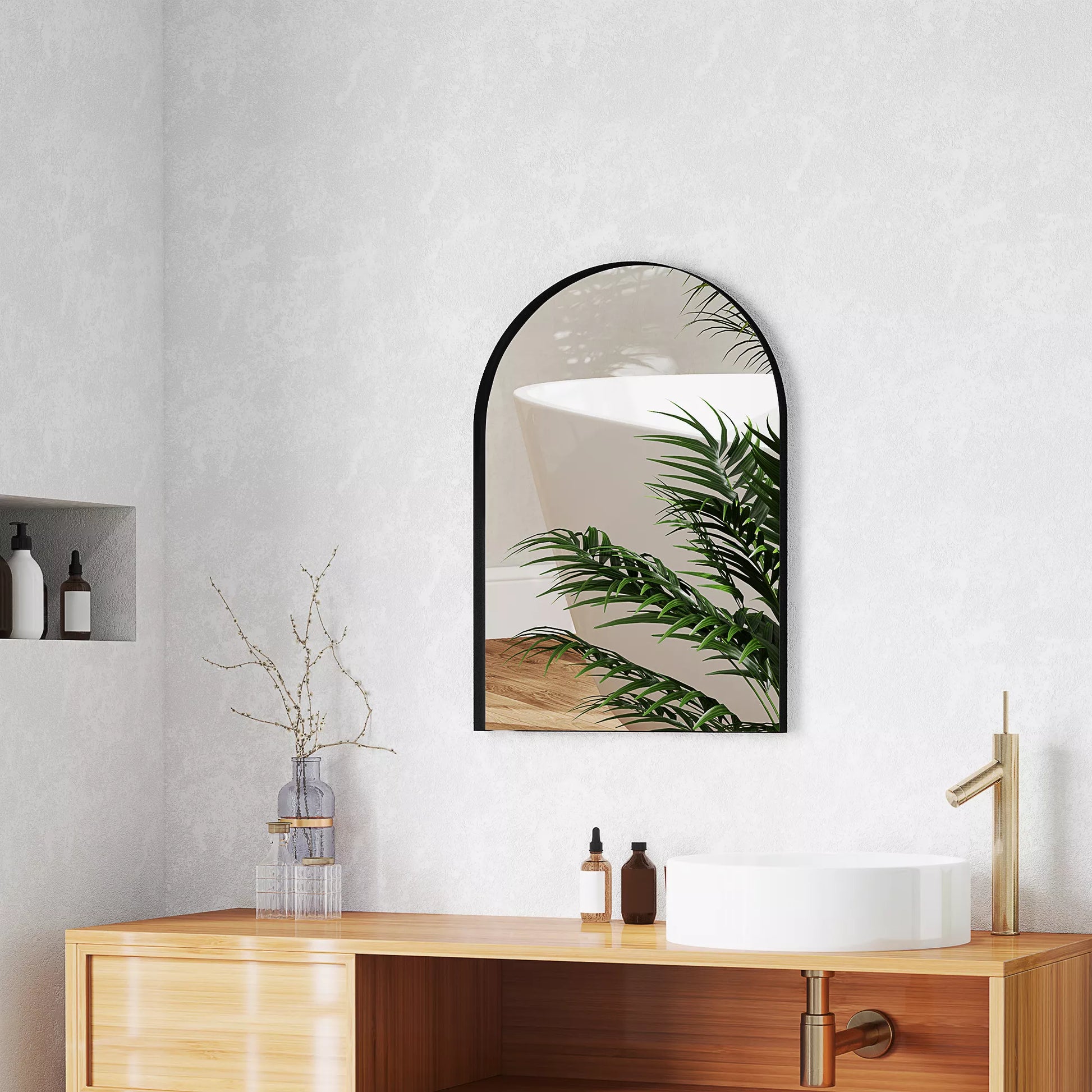 Išlenktas vonios veidrodis, 50 x 70 cm, vonios veidrodis su aliuminio rėmu, dekoratyvinis veidrodis, virtuvė, juodas