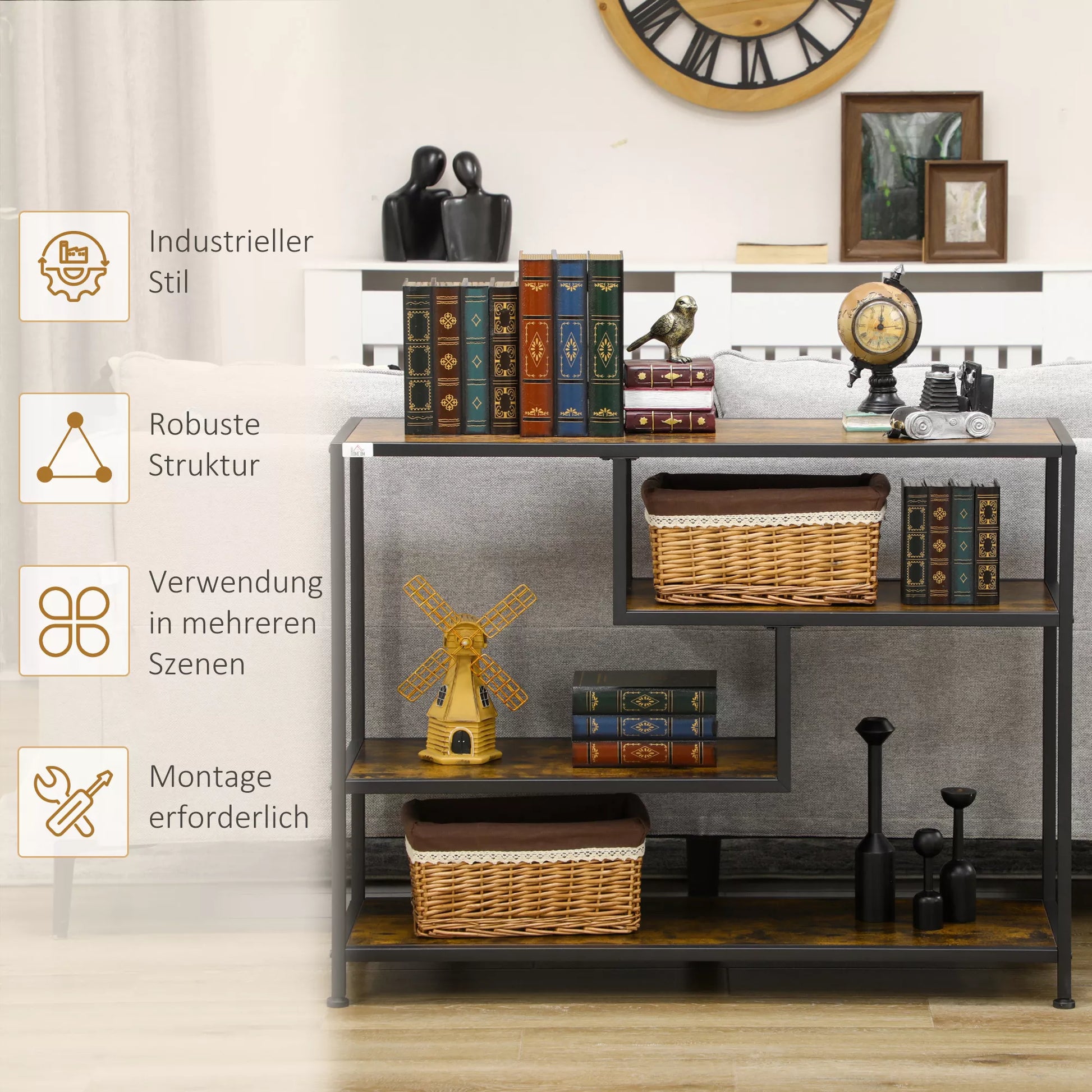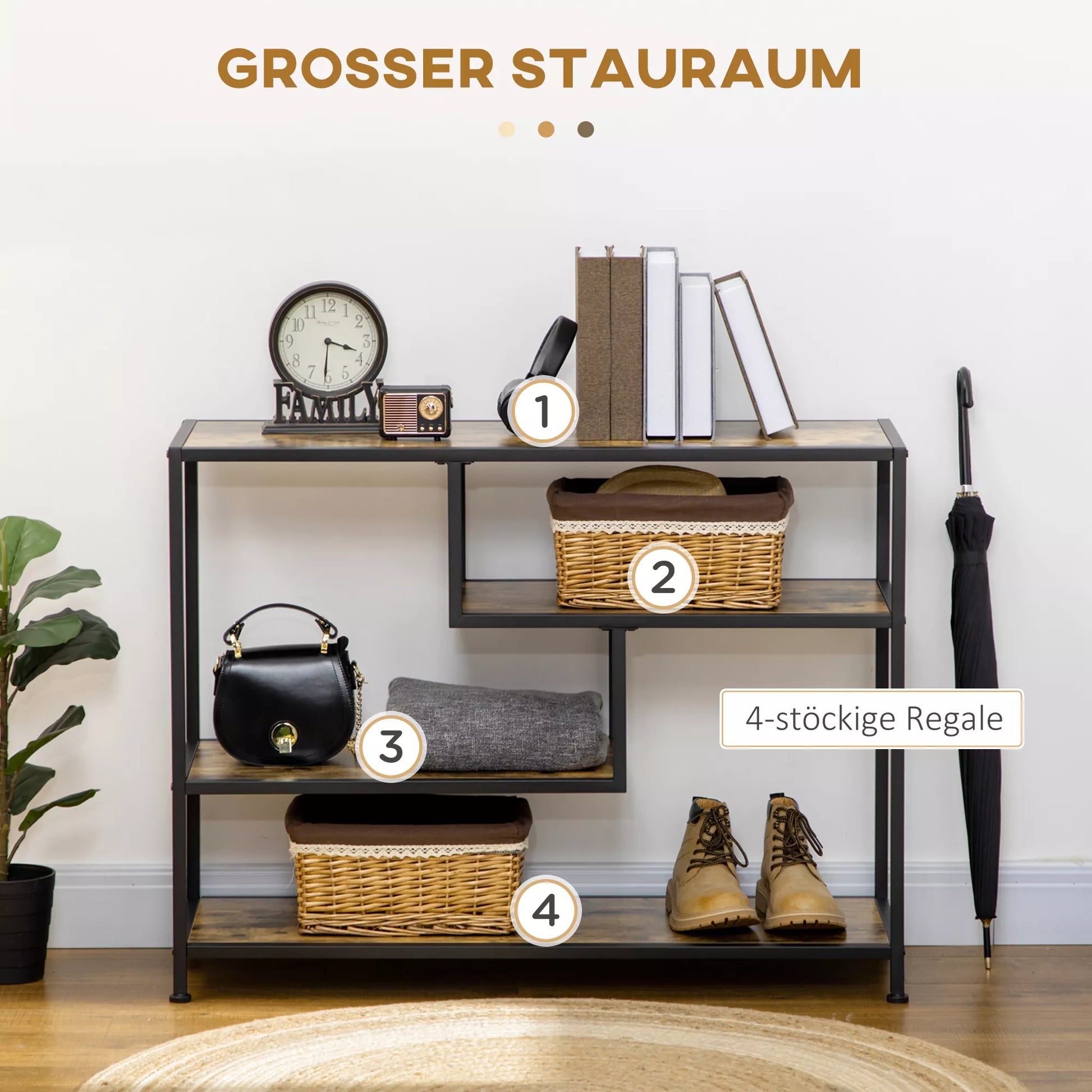 Lentyna, konsolinis staliukas, pramoninio dizaino, 4 lentynos, plieno rėmas, 99,6 x 33,6 x 74 cm