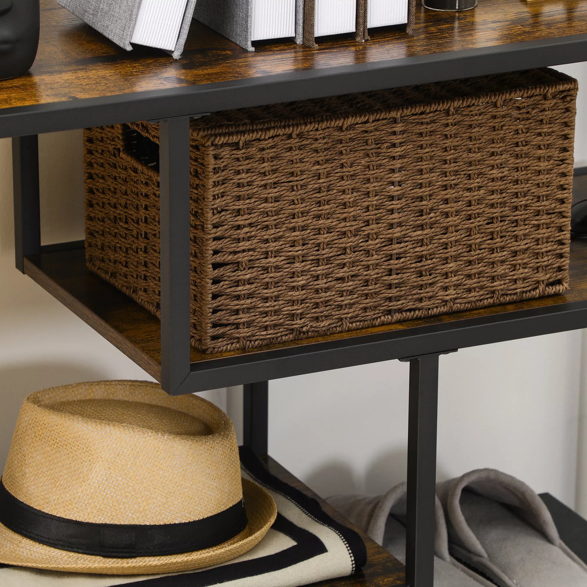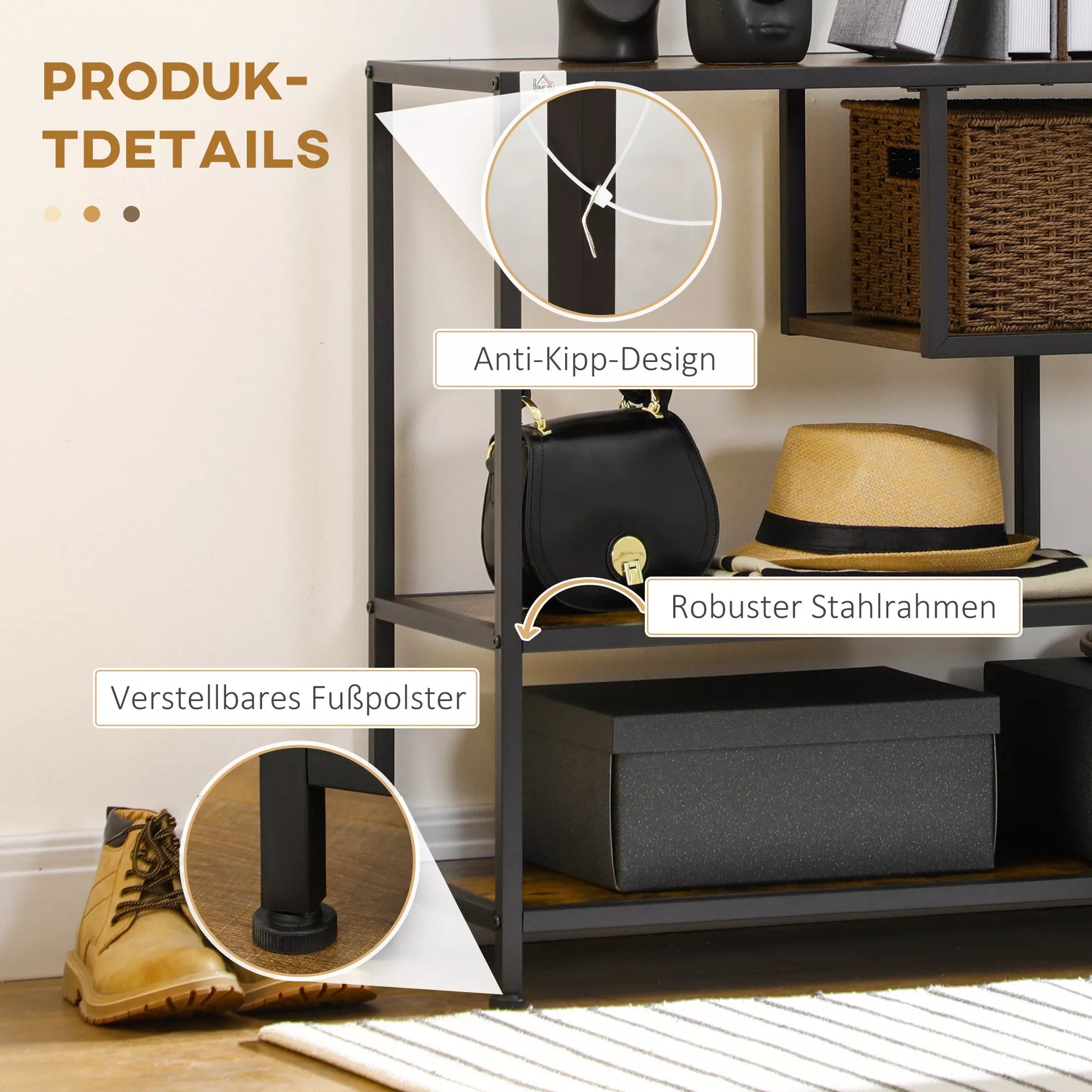 Ieškote stilingo laikymo sprendimo savo prieangui? Šis konsolinis staliukas yra puikus akcentas, kuriame galėsite eksponuoti mėgstamiausius daiktus. Su 4 atviromis lentynomis jis suteikia vietos rankinėms, raktams ir asmeniniams daiktams laikyti. Pagamintas iš tvirto plieno ir medžio drožlių plokštės, jis yra patvarus ir lengvai prižiūrimas. Prieangio staliuko apsaugos nuo apvirtimo dizainas užtikrina papildomą stabilumą. Įneškite industrinio žavesio į savo prieangį, svetainę ar miegamąjį.