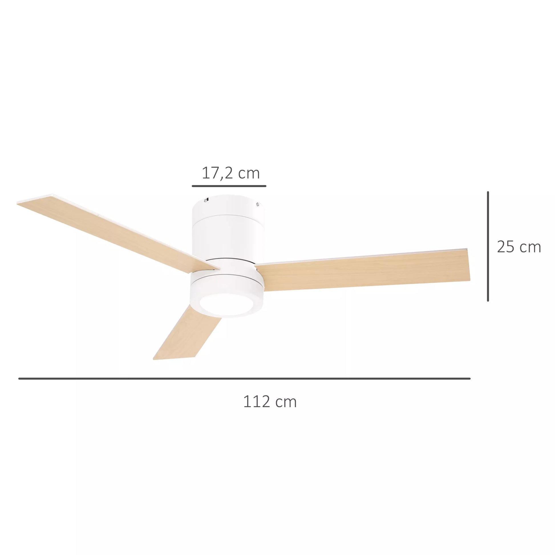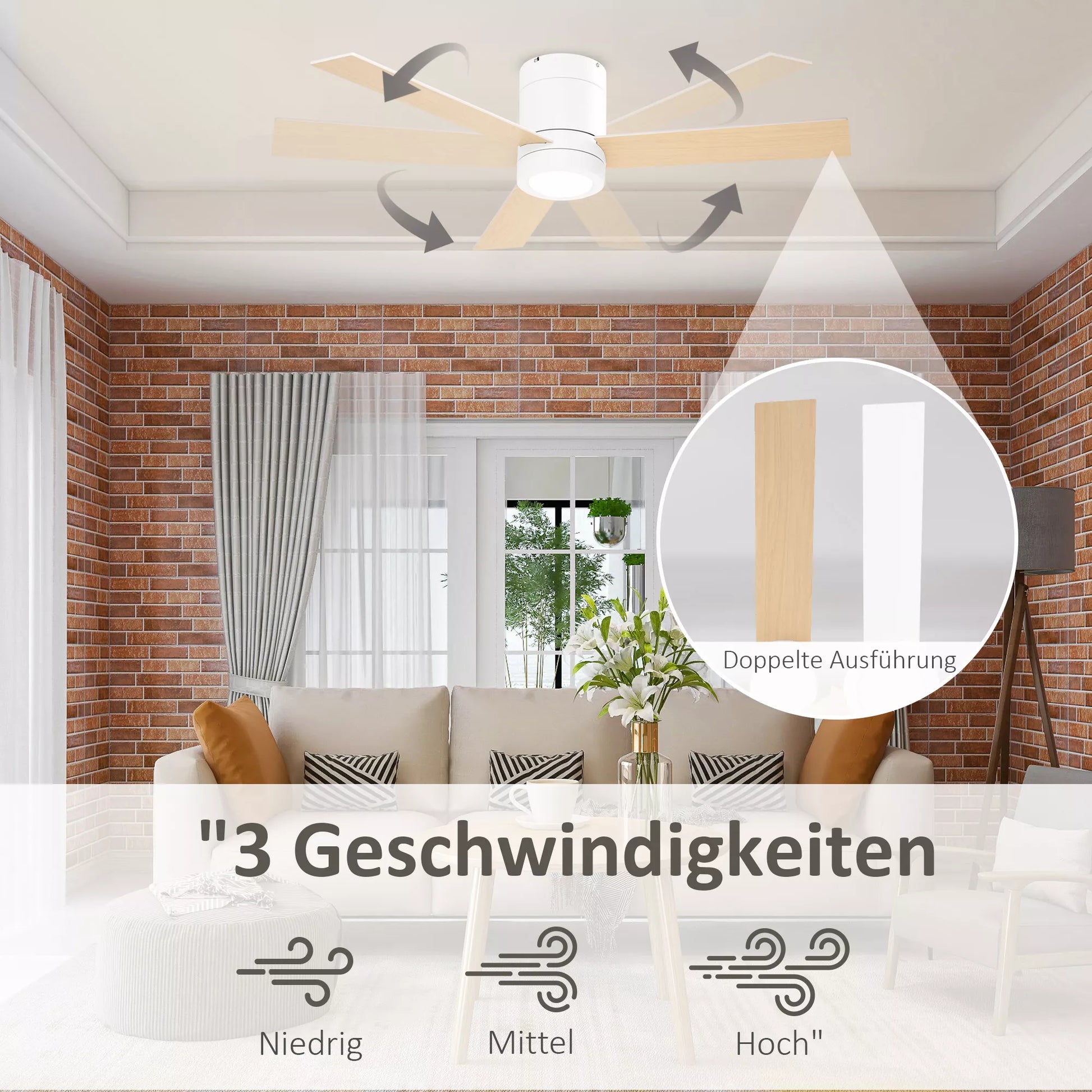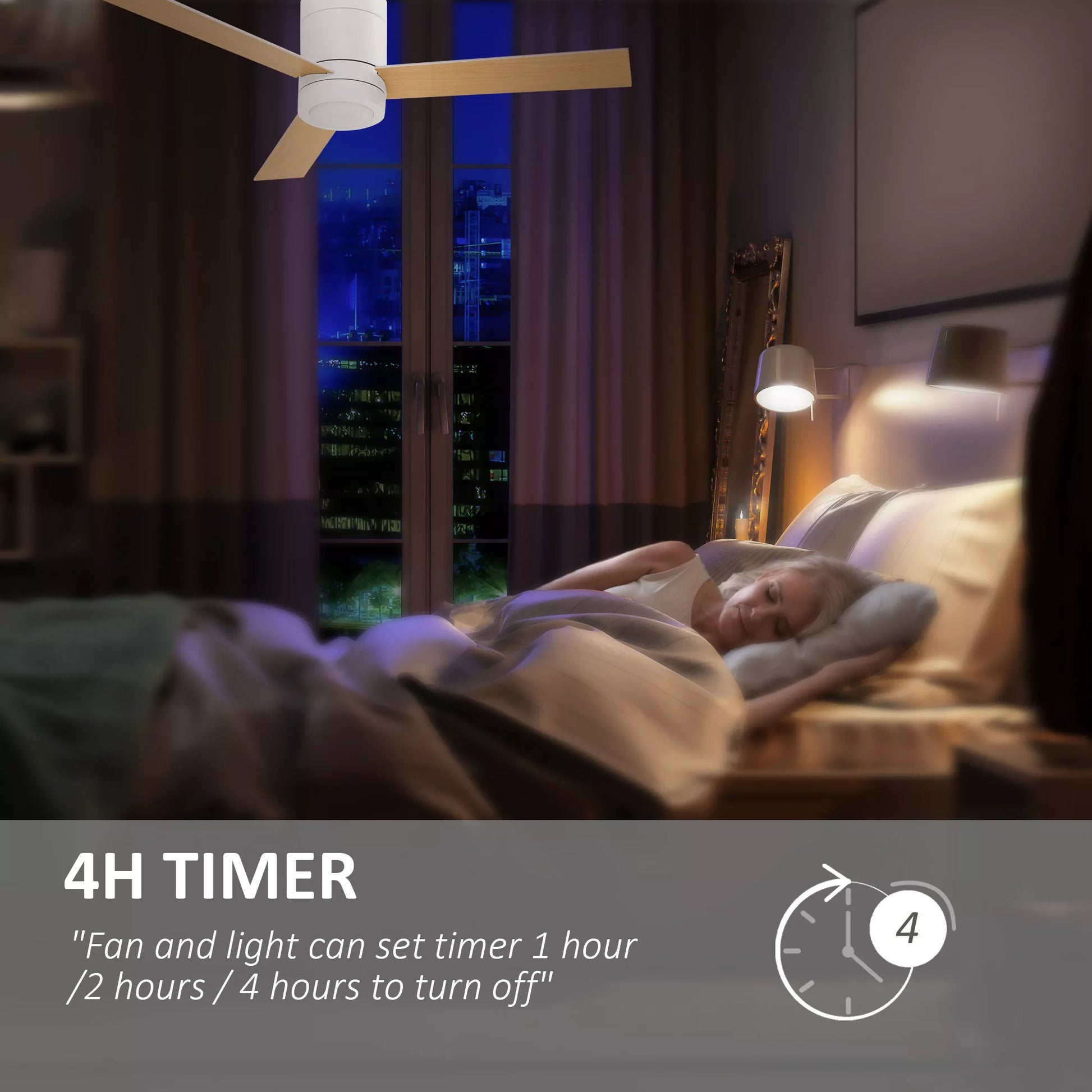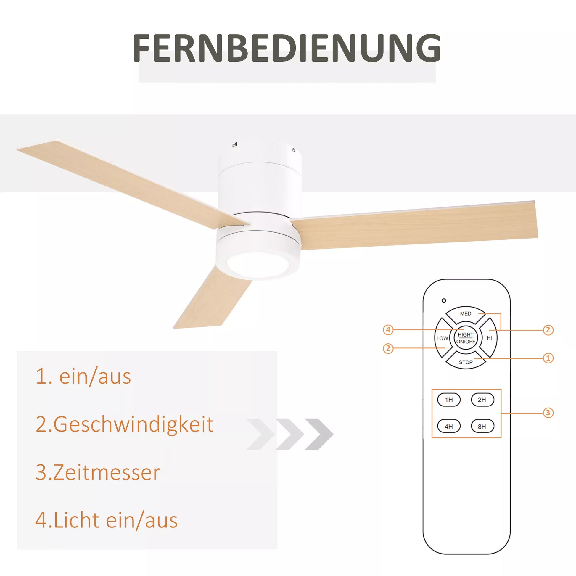 Lubų ventiliatorius su LED apšvietimu, 2-in-1 dizainas, su laikmačiu, nuotolinio valdymo pultu, lubų lempa su ventiliatoriumi, balta + natūralaus medžio spalva