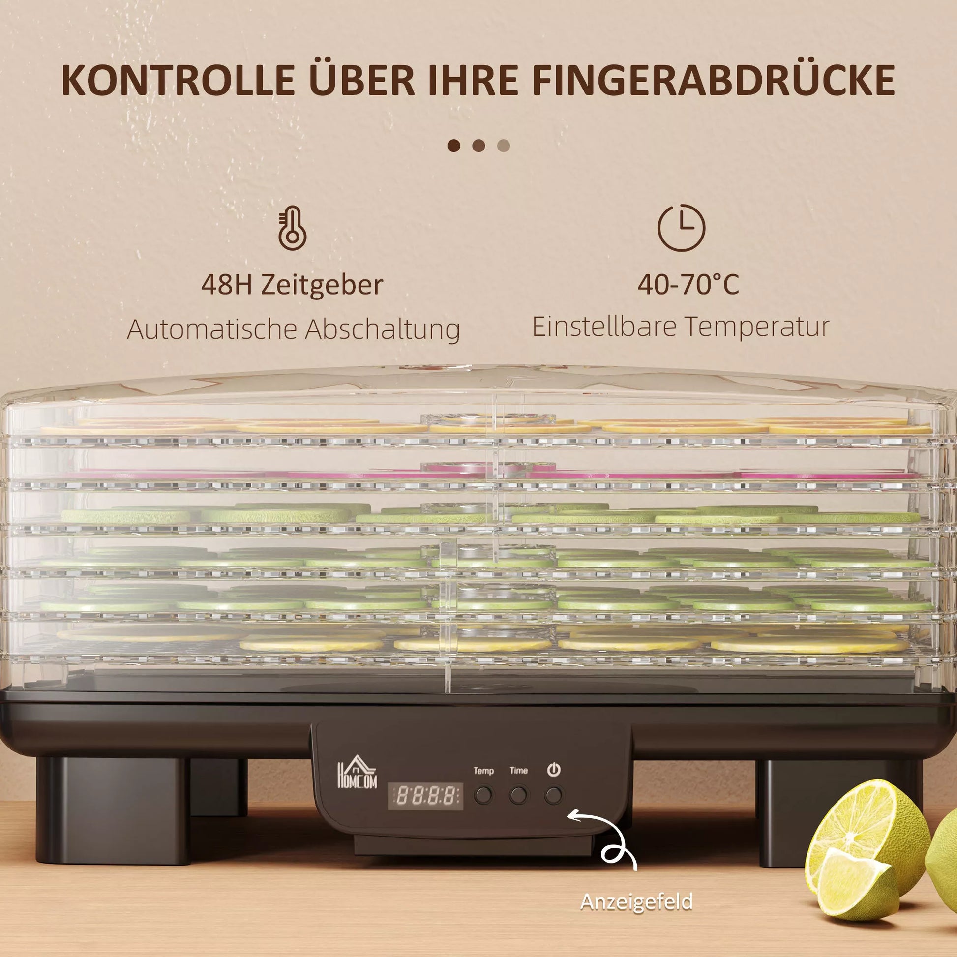 Maisto džiovintuvas, 6 padėklai, karšto oro cirkuliacija, 40-70℃, 43 x 29,5 x 28 cm, juodas