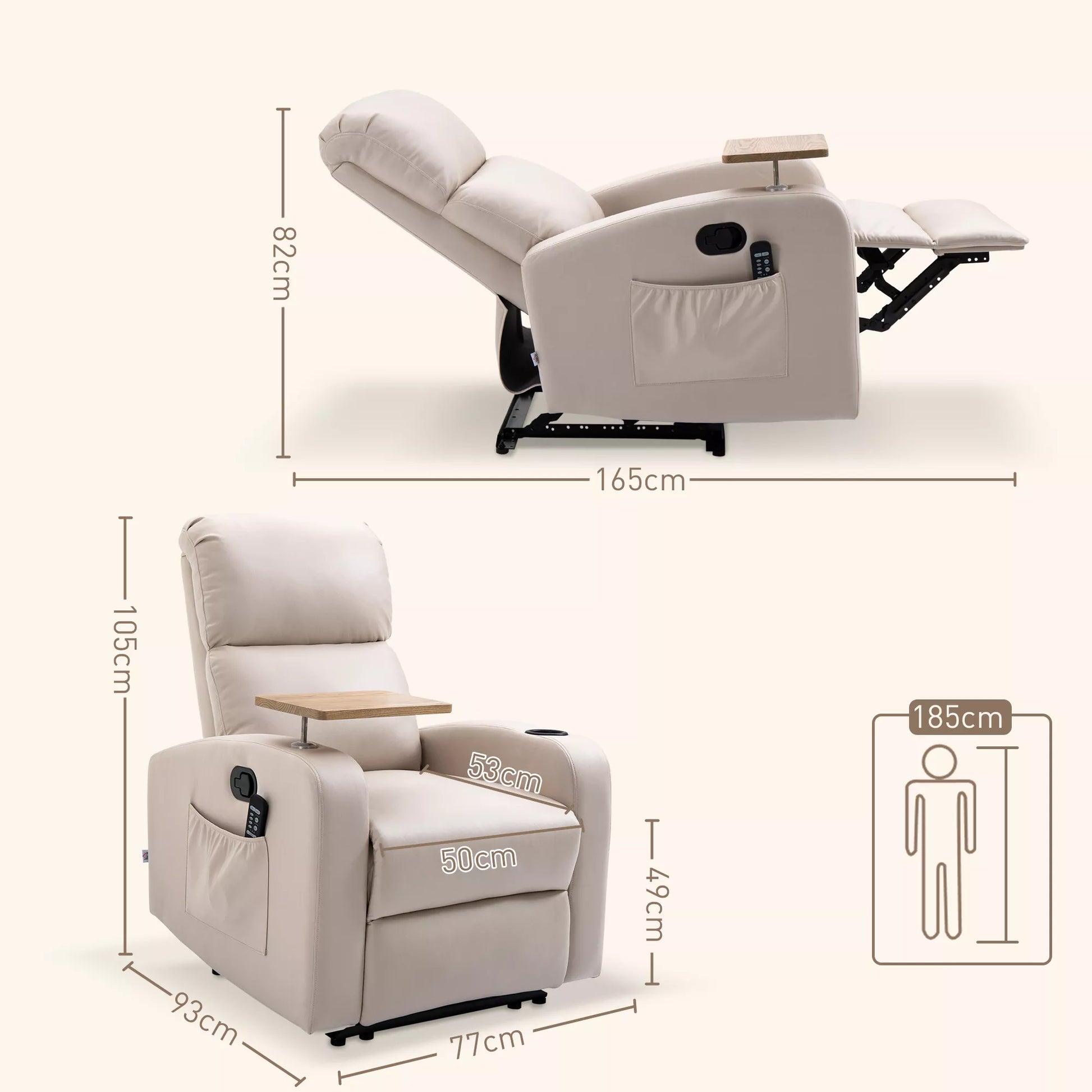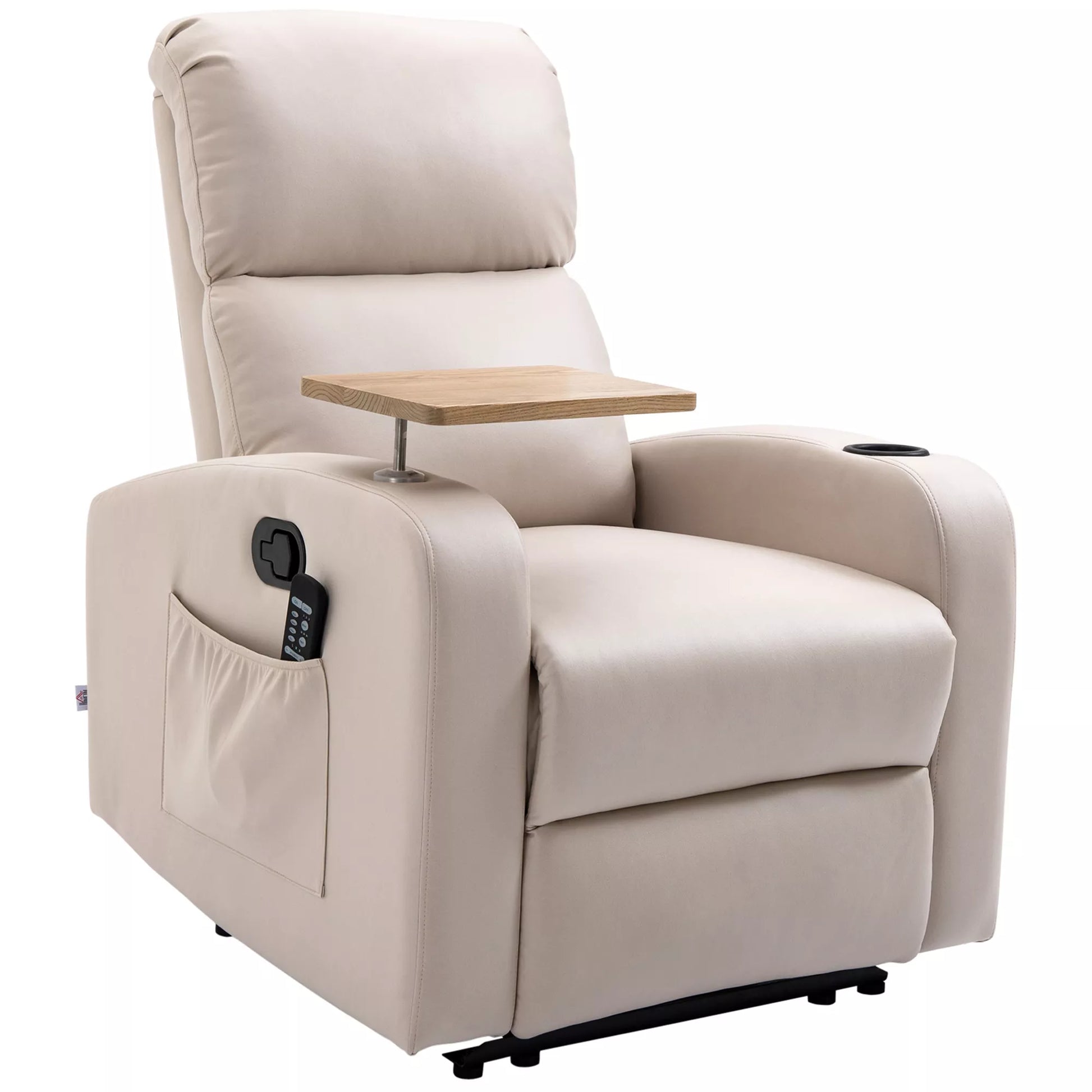 HOMCOM Masažinė atlošiama kėdė, 1 sulankstomas staliukas, 1 pėdų atrama; 77 cm x 93 cm x 105 cm, smėlio spalvos