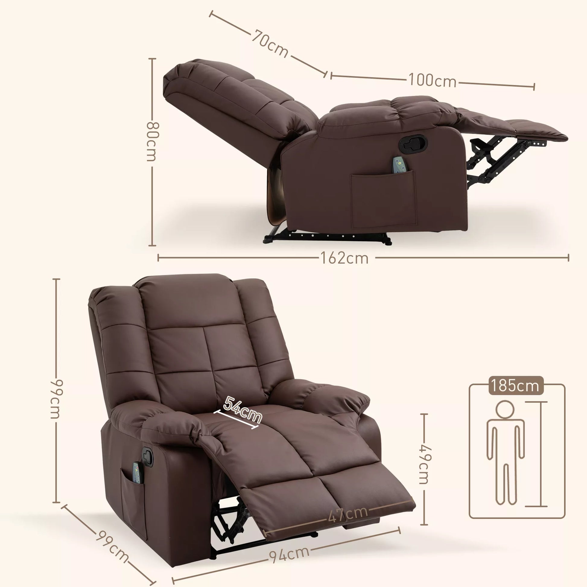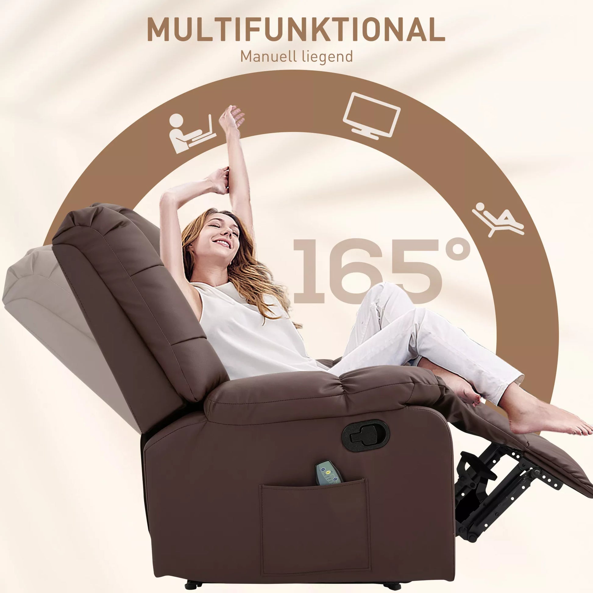 Atlošiama masažinė kėdė su pulteliu 94 x 99 x 99 cm, dirbtinė oda, ruda