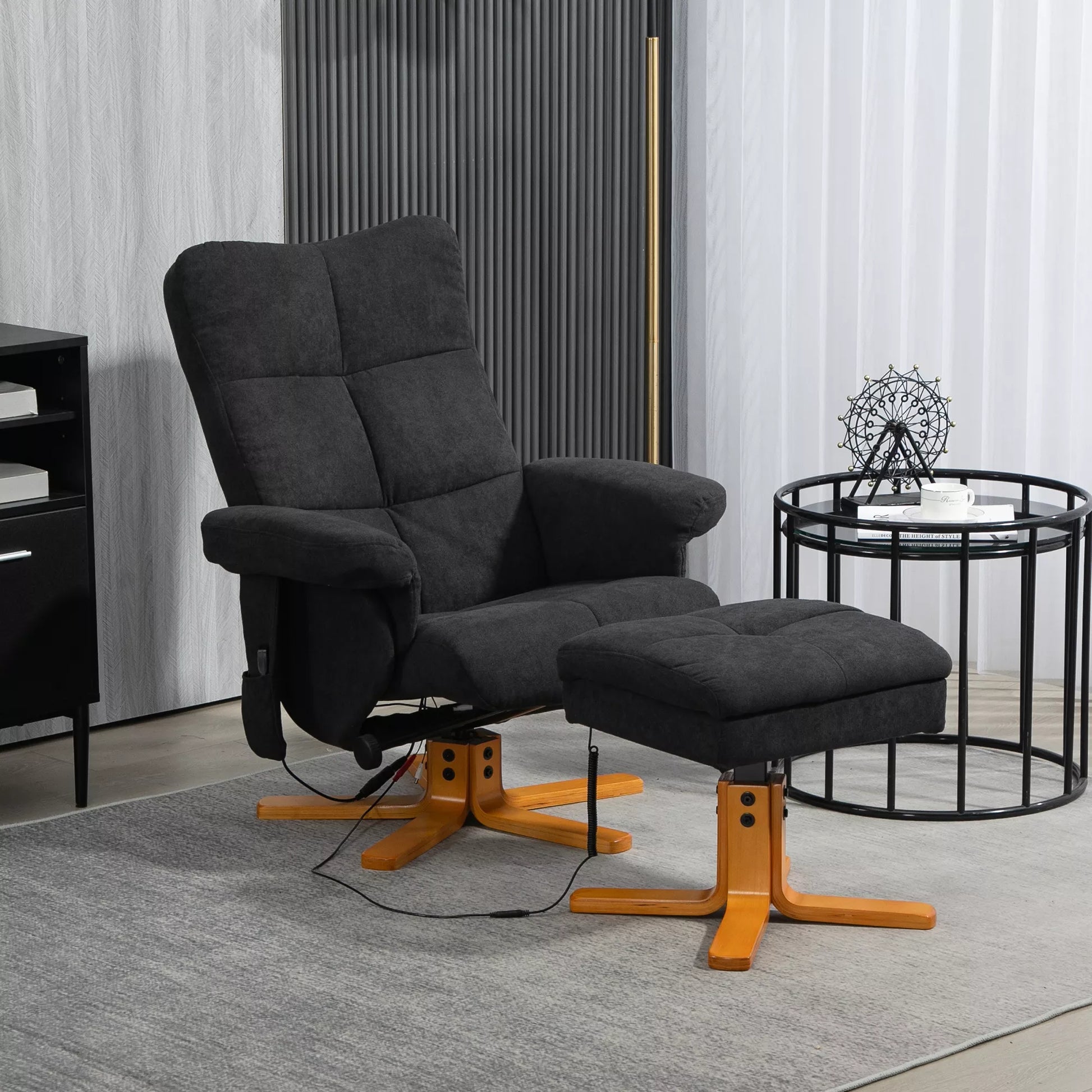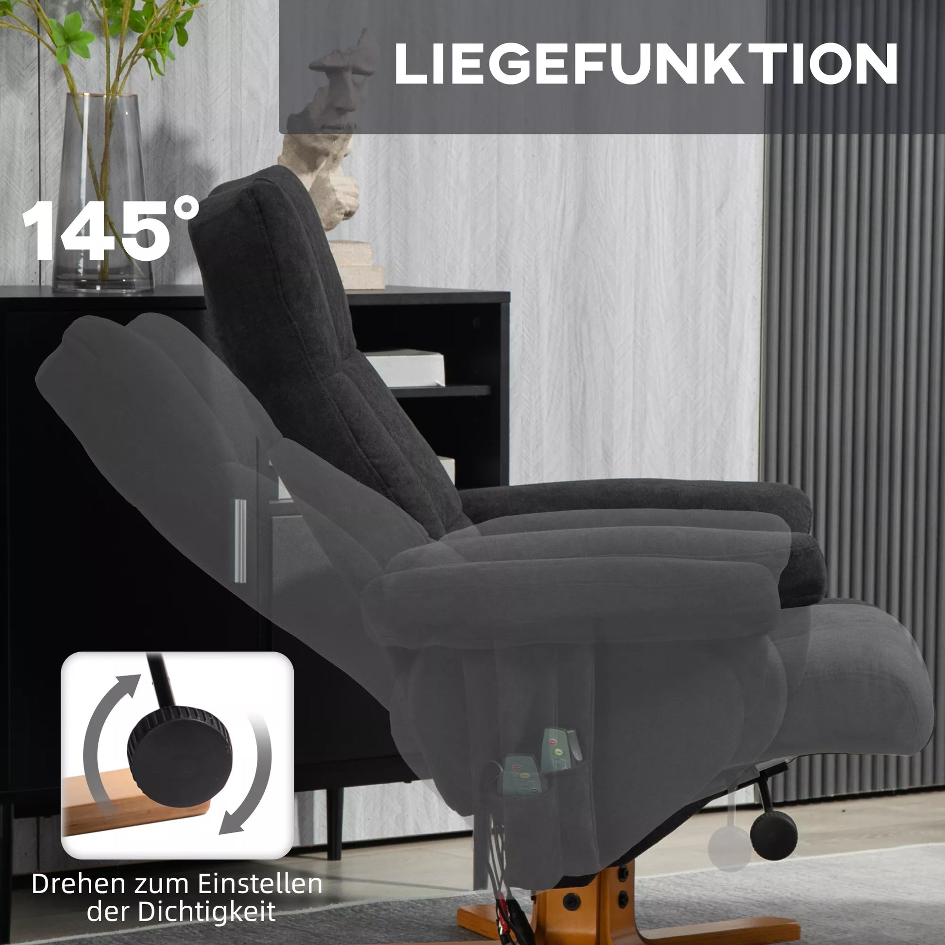 Masažinė kėdė su gulėjimo funkcija ir pėdų atrama, 145° atlošimas, poliesteris, 80 x 86 x 99 cm, Juoda