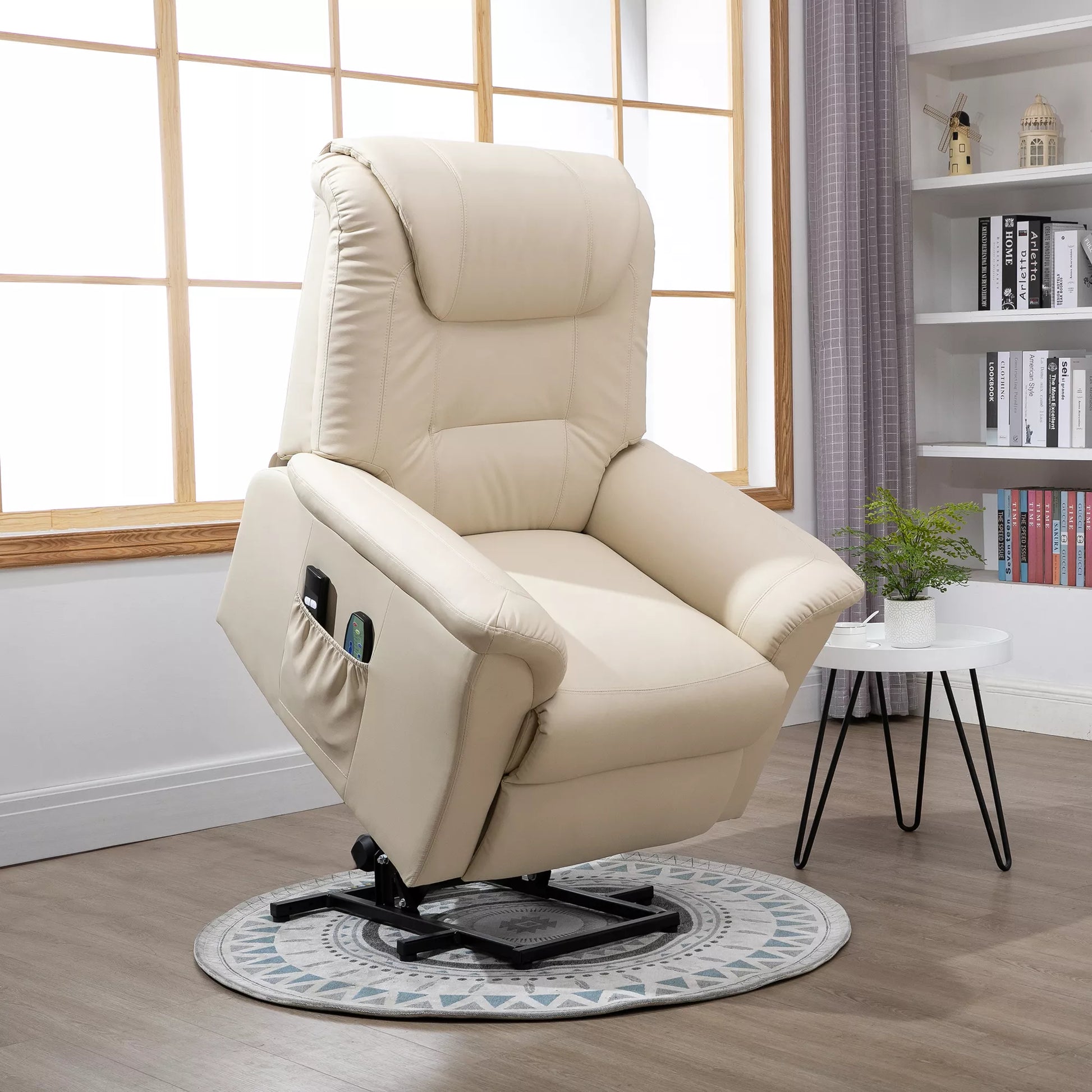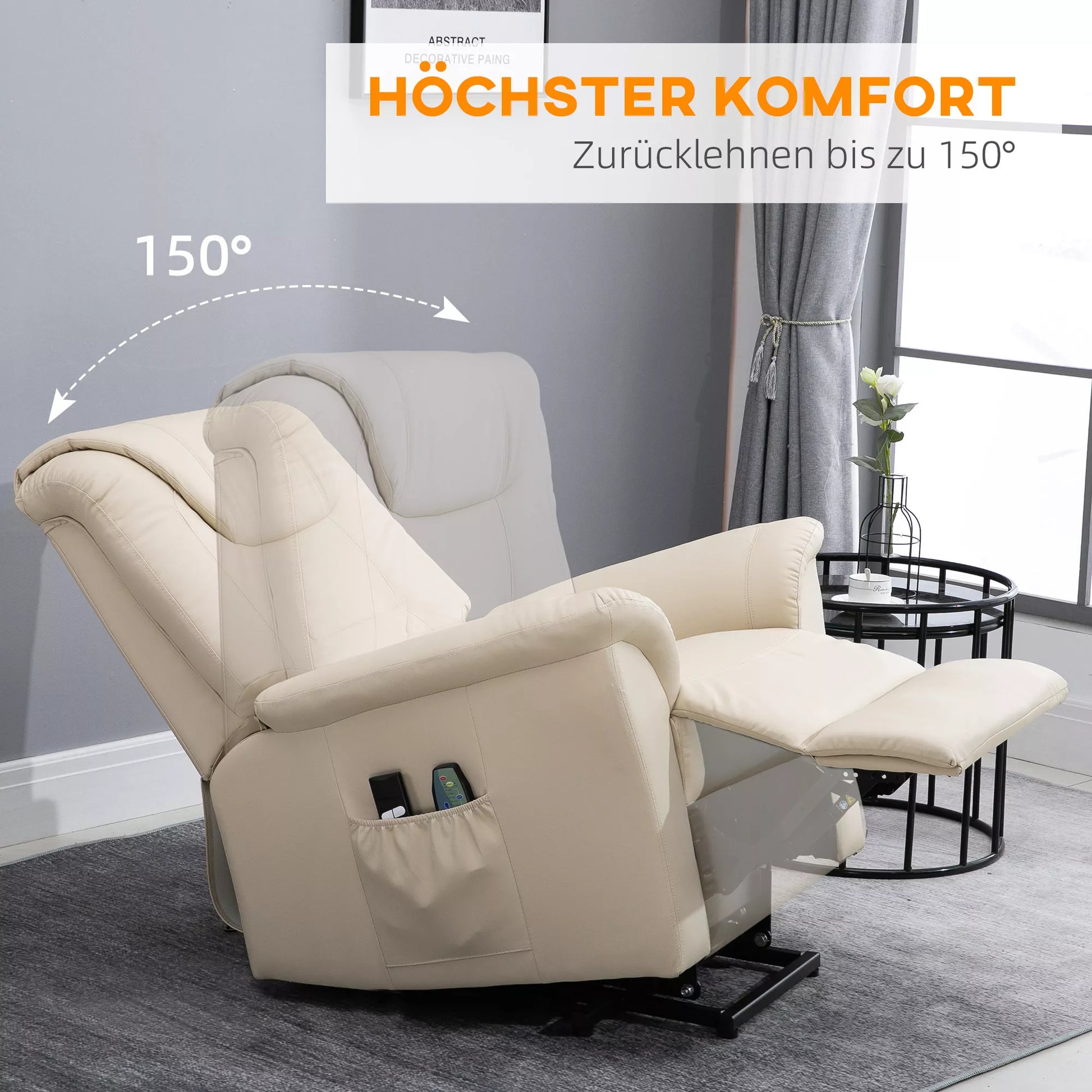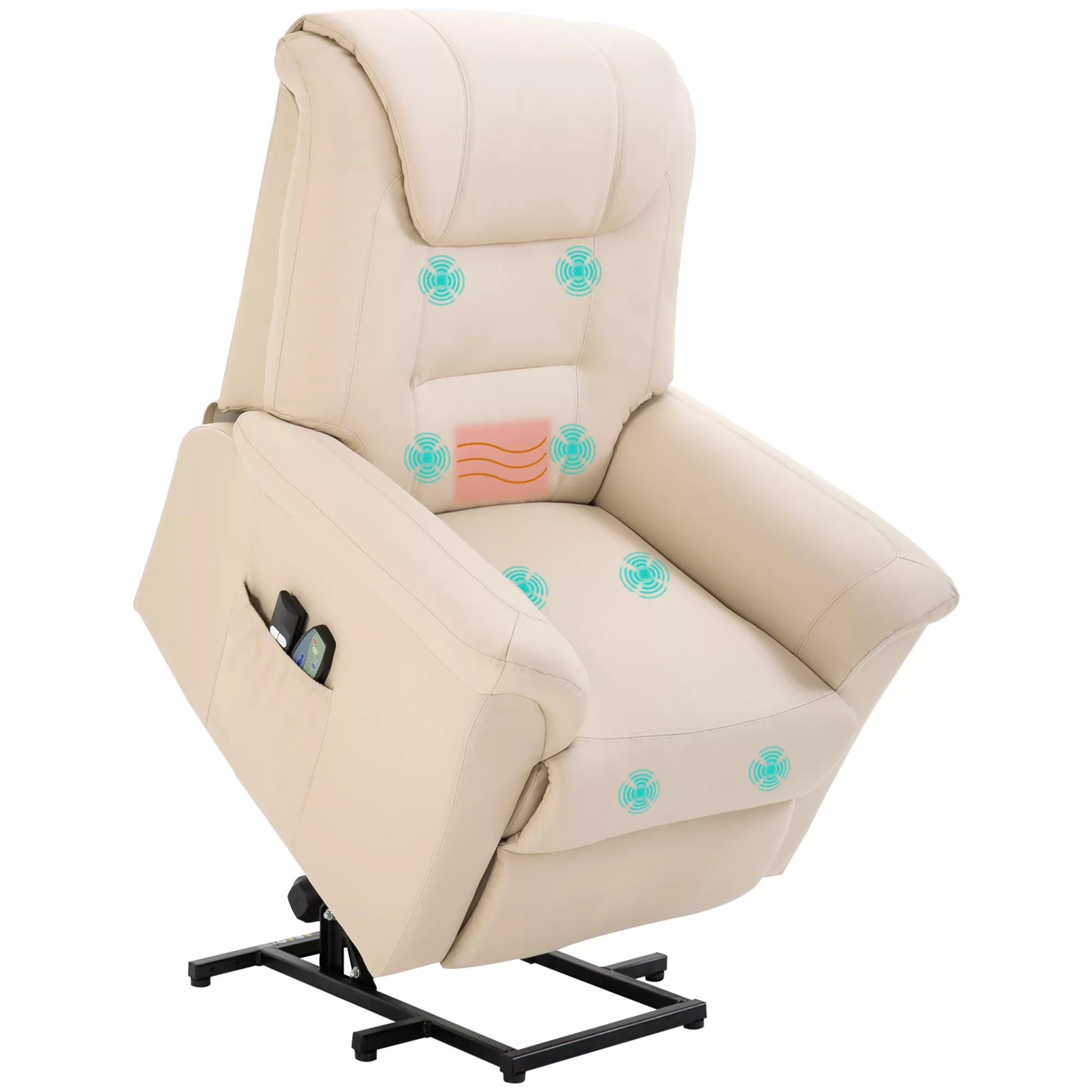 HOMCOM Masažinė kėdė su pagalba atsistojant, 8 vibravimo taškai, šildymo funkcija, pėdų atrama, kreminė