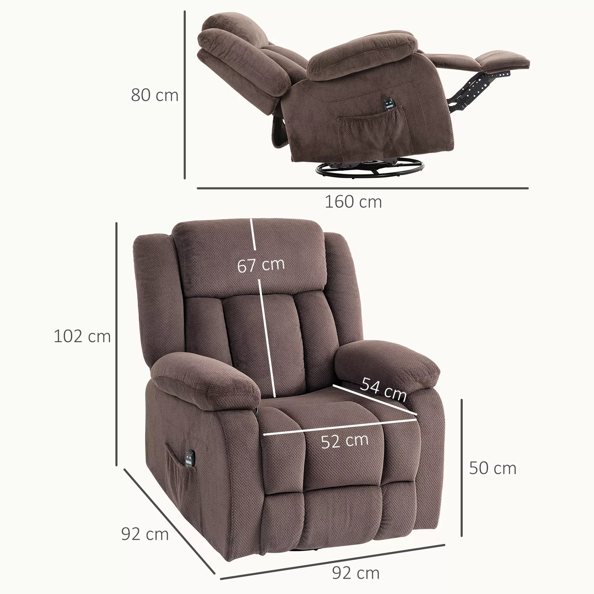 Masažinė kėdė, 8 vibracijos taškai, 5 režimai, juosmens šildymas, reguliuojama, sukanė, minkštas fotelis, rudos spalvos.