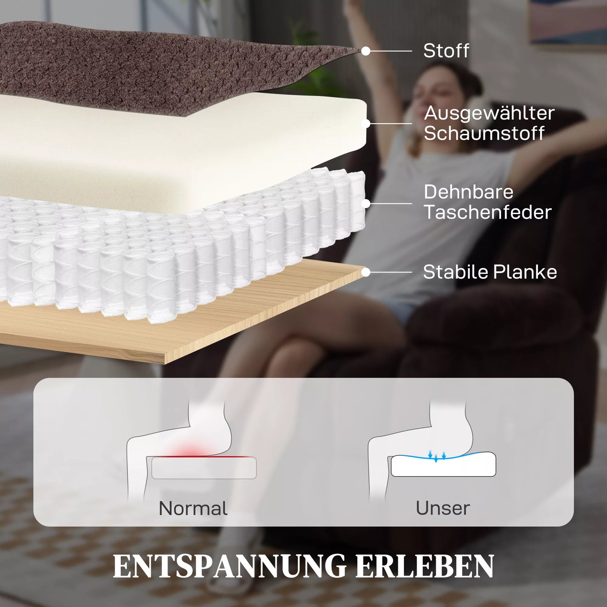 Atsipalaiduokite giliai šiame masažiniame krėsle! Aštuoni vibracijos taškai ir juosmens šildytuvas užtikrina individualų komfortą, valdomą penkiais masažo režimais per laidinį nuotolinio valdymo pultelį. Atskirkite poilsio krėslo atlošą vienu traukimu iki 150 laipsnių atlošimo kampo. Raskite savo idealią padėtį šiame patogiame krėsle, puikiai tinkančiame bet kokiam jaukiam kampeliui!