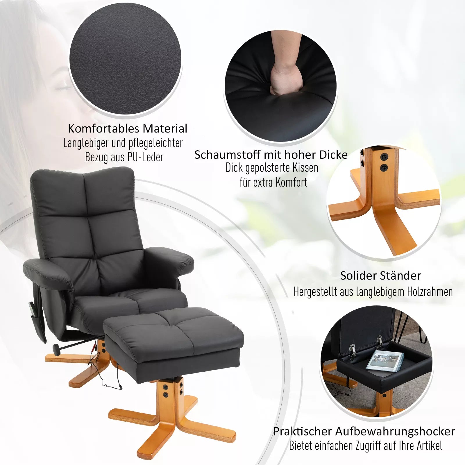 - ✔ Medžiaga: dirbtinė oda, putplastis, mediena