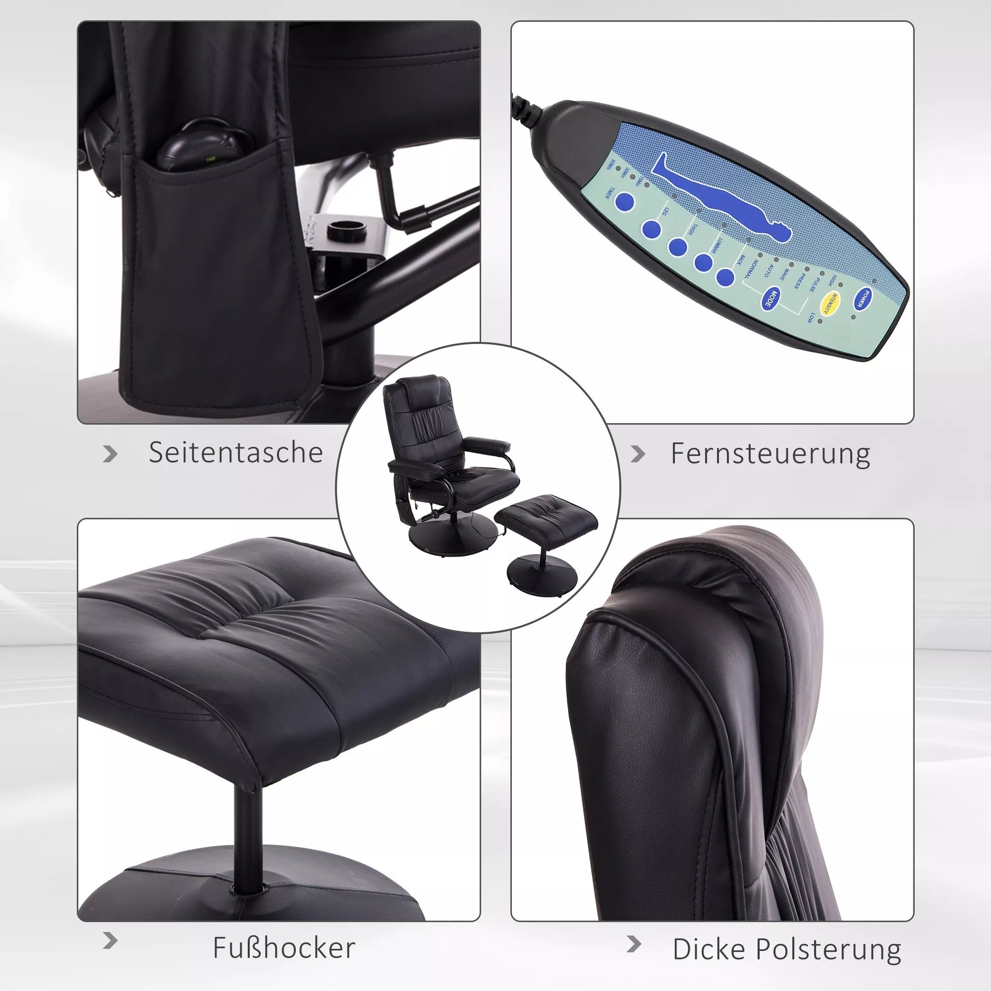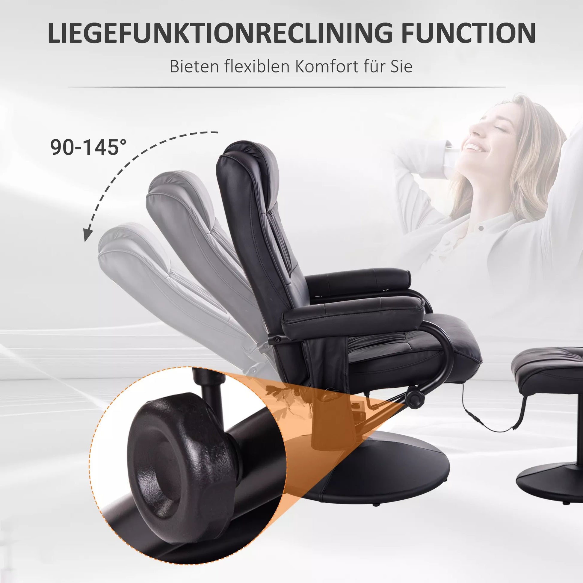 Masažinė kėdė su pakoja, sukamasis poilsio krėslas su masažo funkcija, elektrinis televizijos krėslas su gulėjimo funkcija, nuotolinio valdymo pultelis svetainei, dirbtinė oda, juodos spalvos