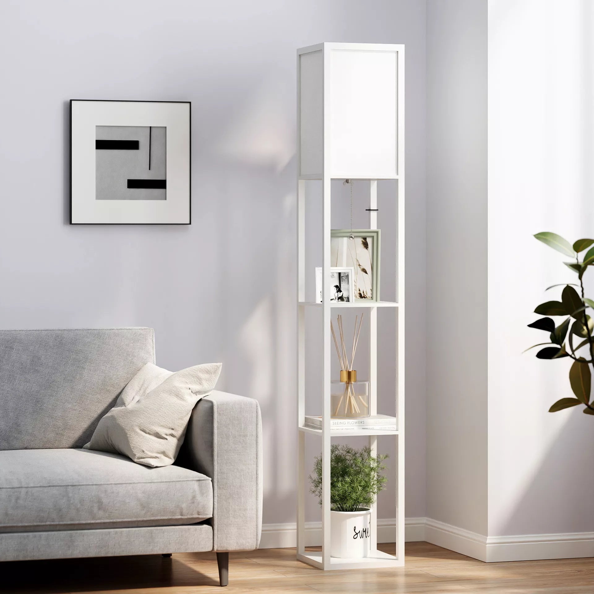 Elegantiška ir funkcionali, mūsų pastatoma lempa sujungia stilingą saugojimo vietą su švelniu apšvietimu. Ant trijų atvirų šviestuvo lentynų galite eksponuoti knygas, dekoratyvinius daiktus ar augalus ir sukurti jaukią atmosferą su integruota pastatoma lempa.