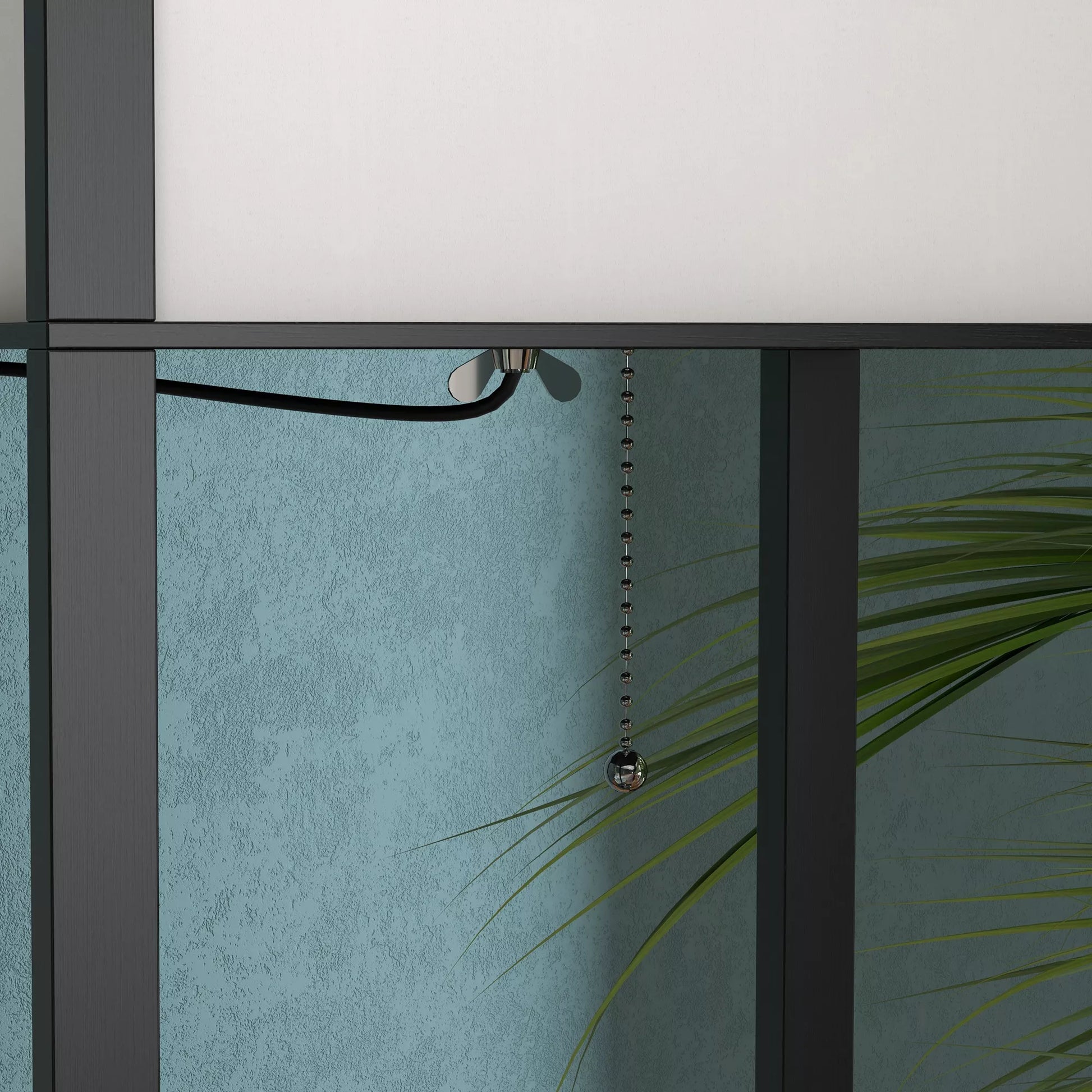 Elegantiška ir funkcionali, mūsų pastatoma lempa sujungia stilingą daiktų laikymą su švelniu apšvietimu. Eksponuokite knygas, dekoratyvinius daiktus ar augalus ant trijų atvirų šviestuvo lentynų ir sukurkite jaukią atmosferą su įmontuota lempa.