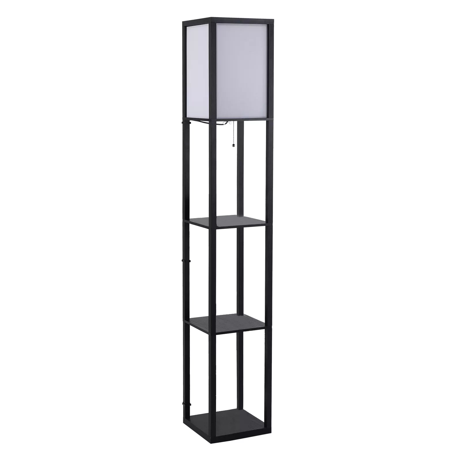 Pastelė lemputė su lentynomis, medinė grindų lempa, 26 x 26 x 160 cm, skirta svetainei/miegamajam (be lemputės)
