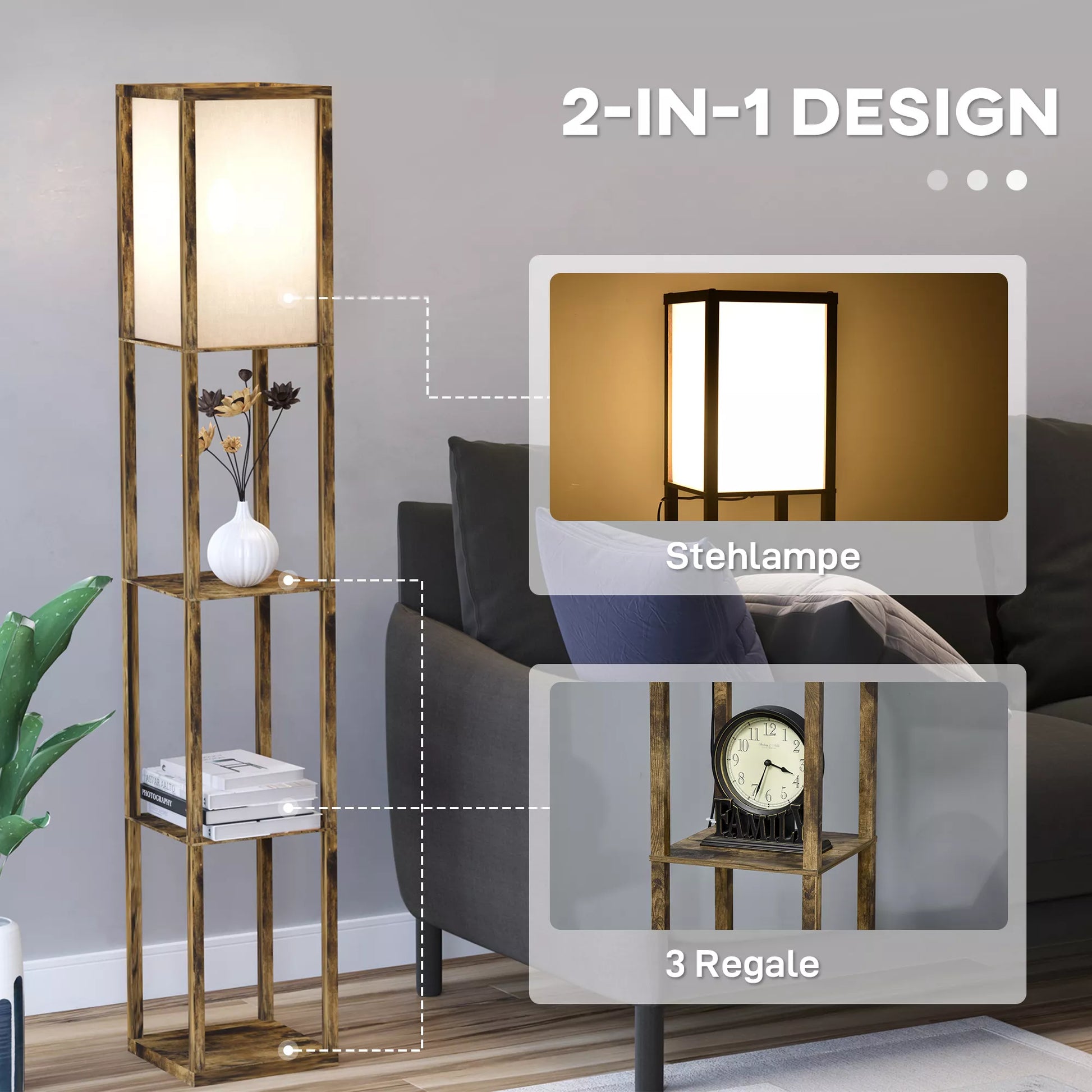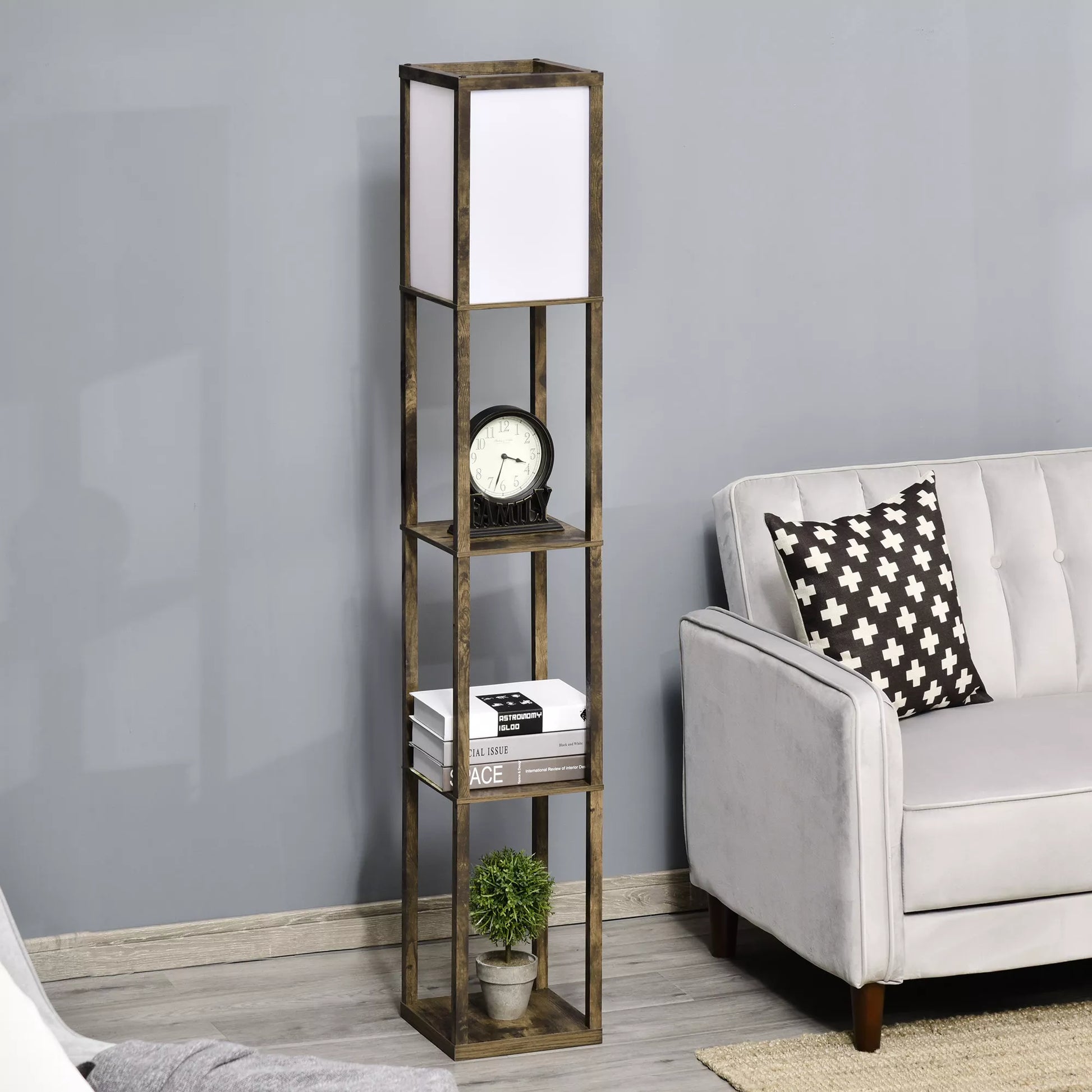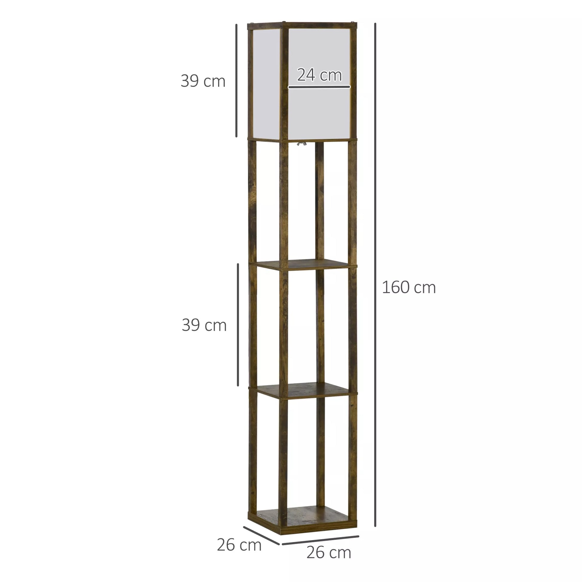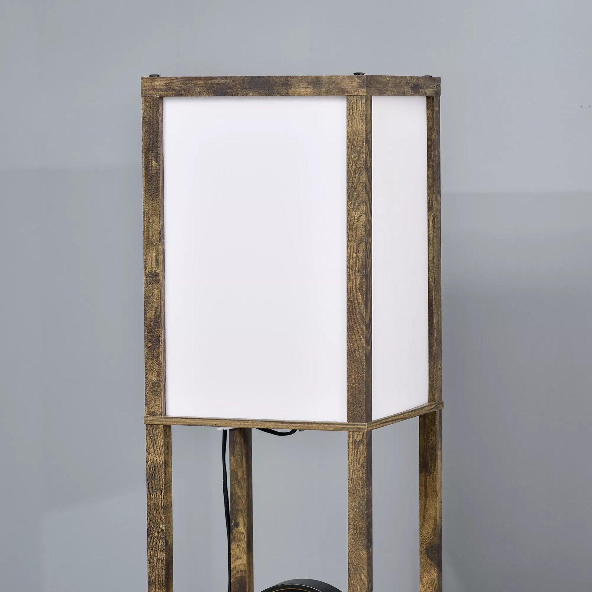 Pastelė lemputė su lentynomis, medinė grindų lempa, 26 x 26 x 160 cm, skirta svetainei/miegamajam (be lemputės)