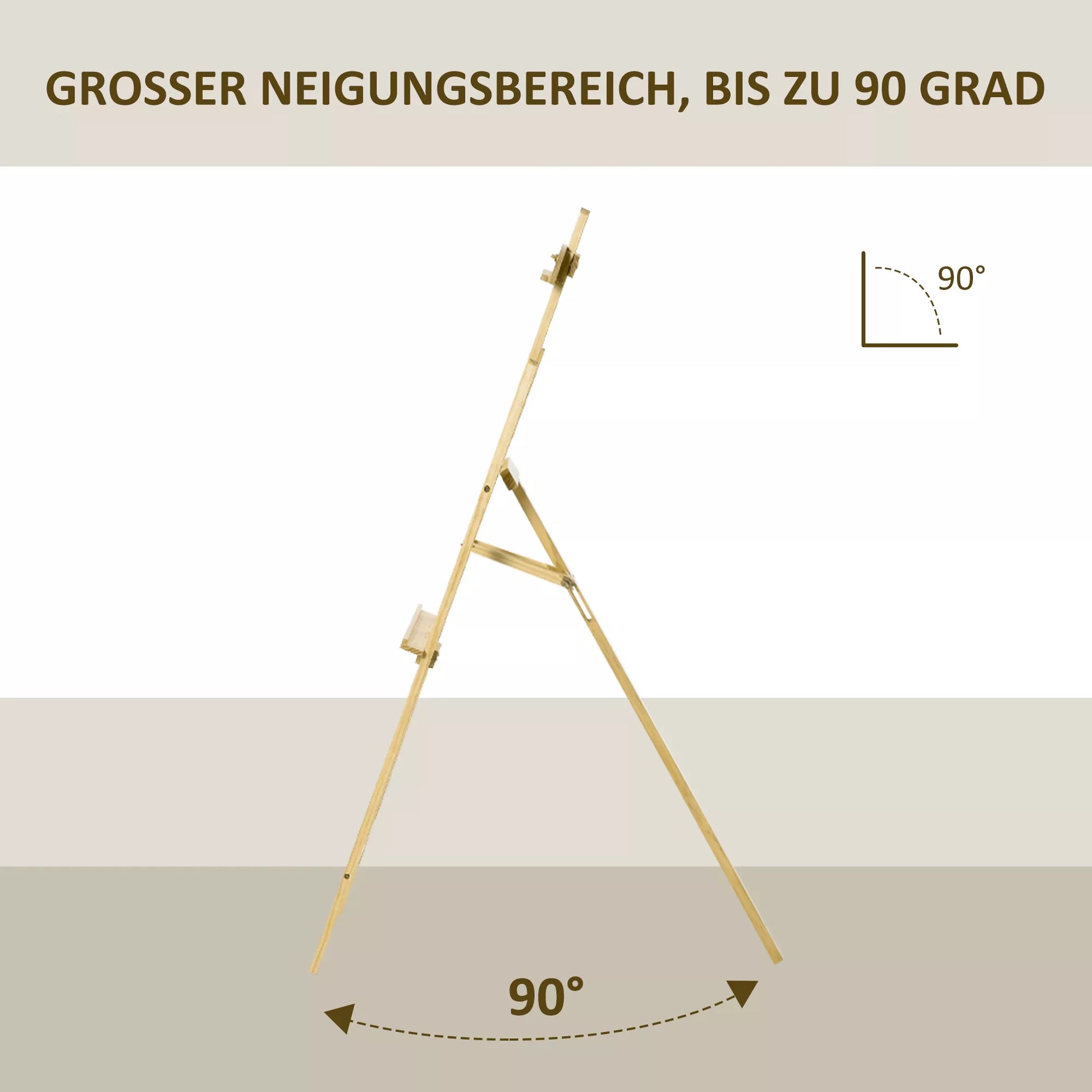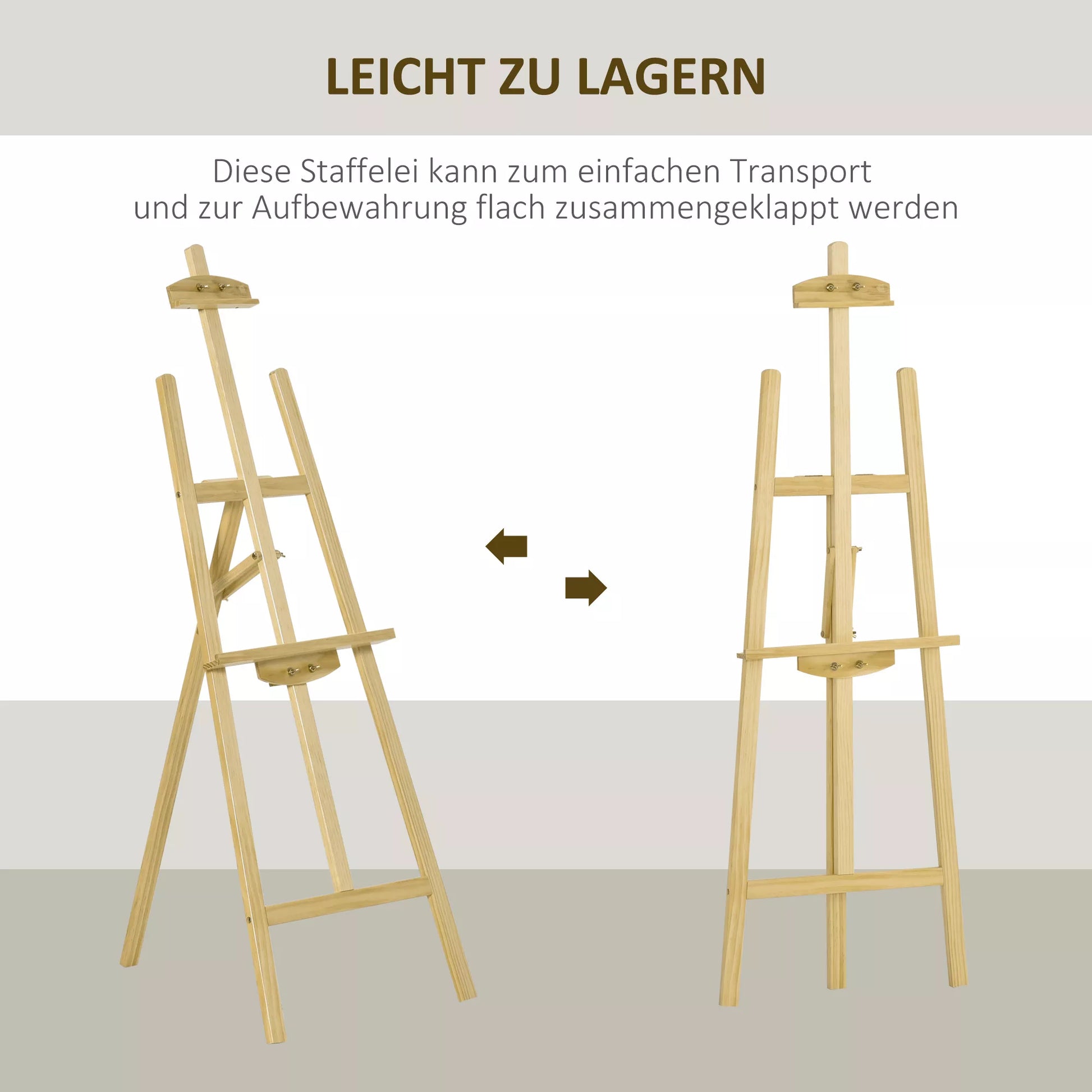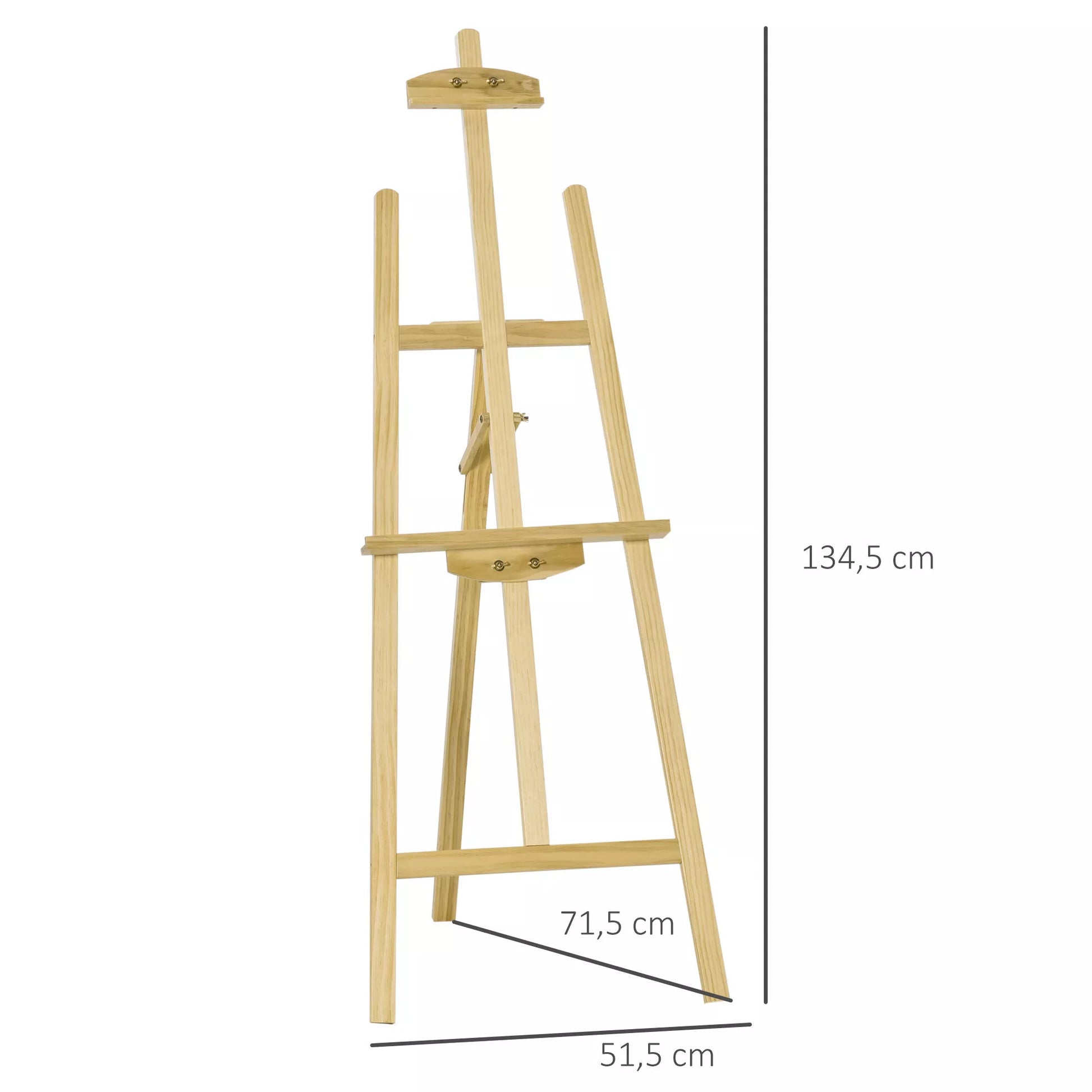 Medinis molbertas, 134,5 cm aukščio, skirtas iki 108 cm aukščio drobėms. Lauko, studijos molbertas tapybai, piešiniams, vestuvėms, parodoms. Natūralus medis.
