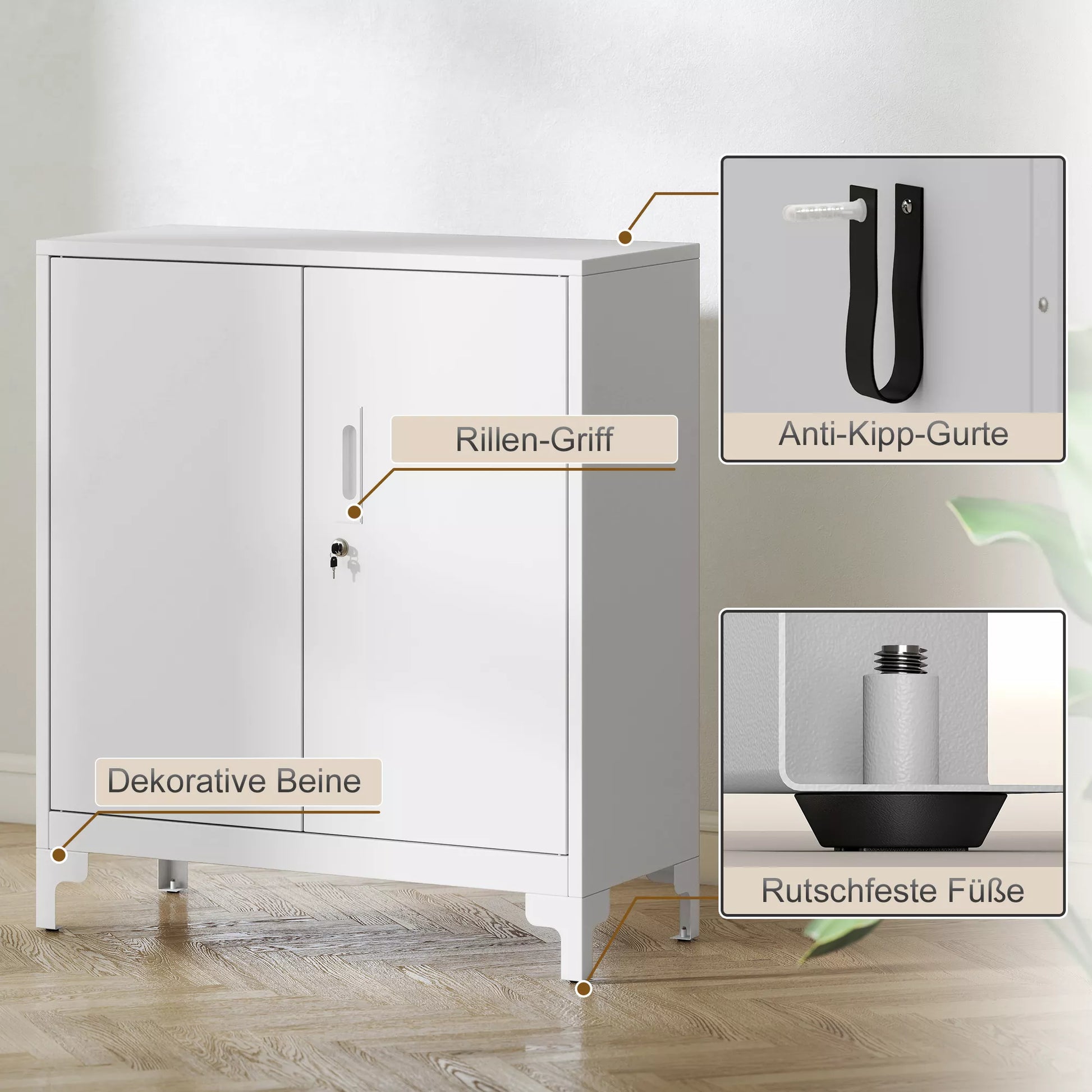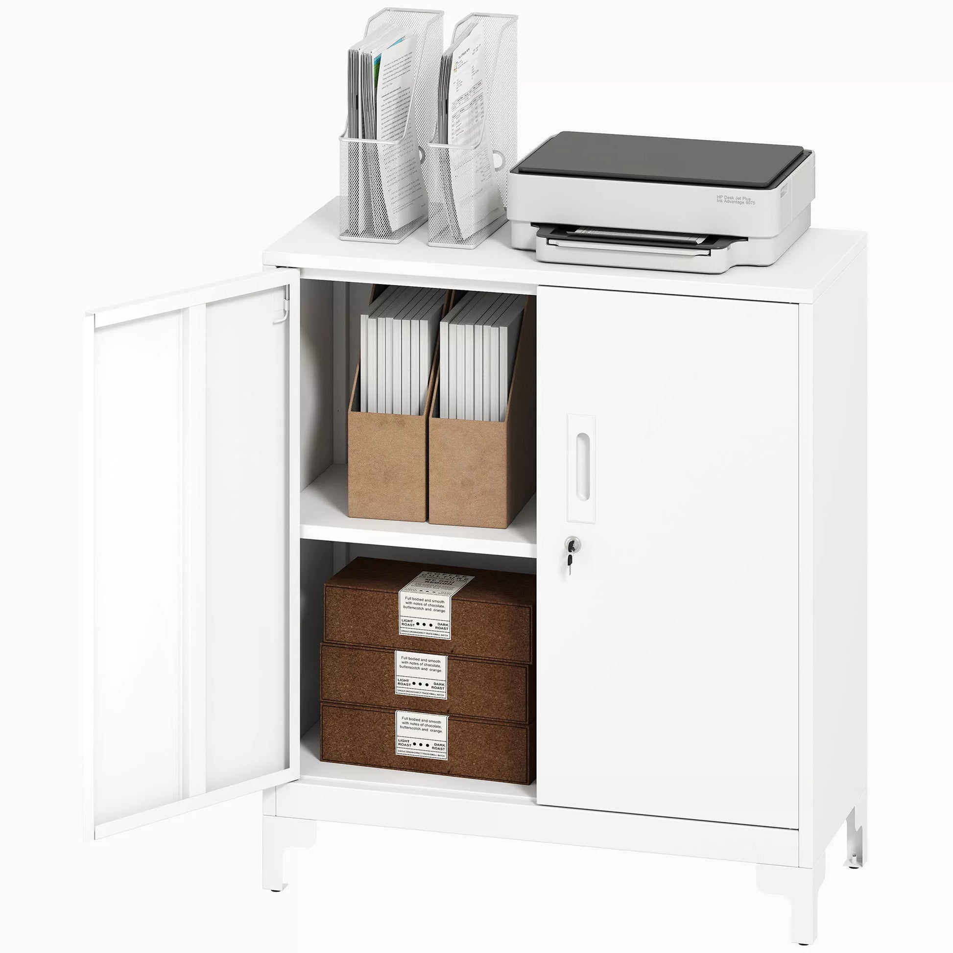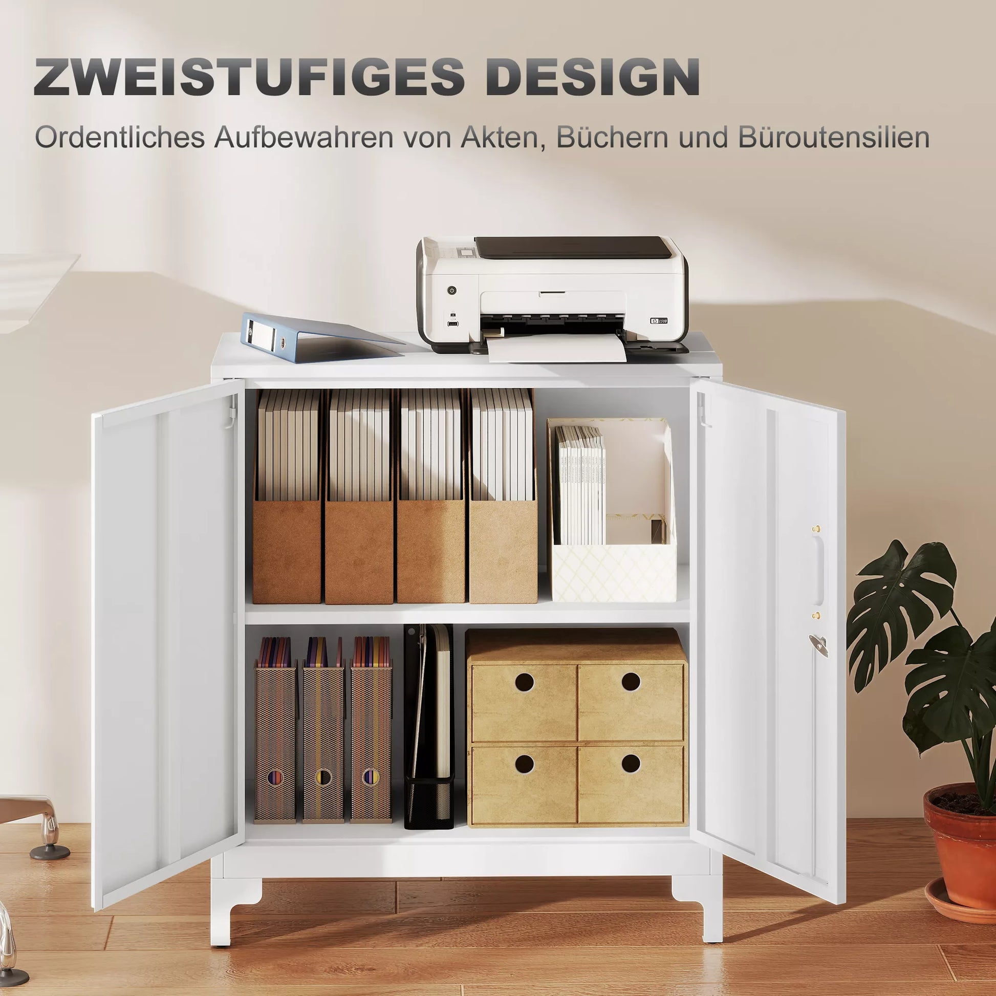 Metalinė biuro spinta, užrakinamos durys, biuro komoda, 2 pakopų dizainas, balta