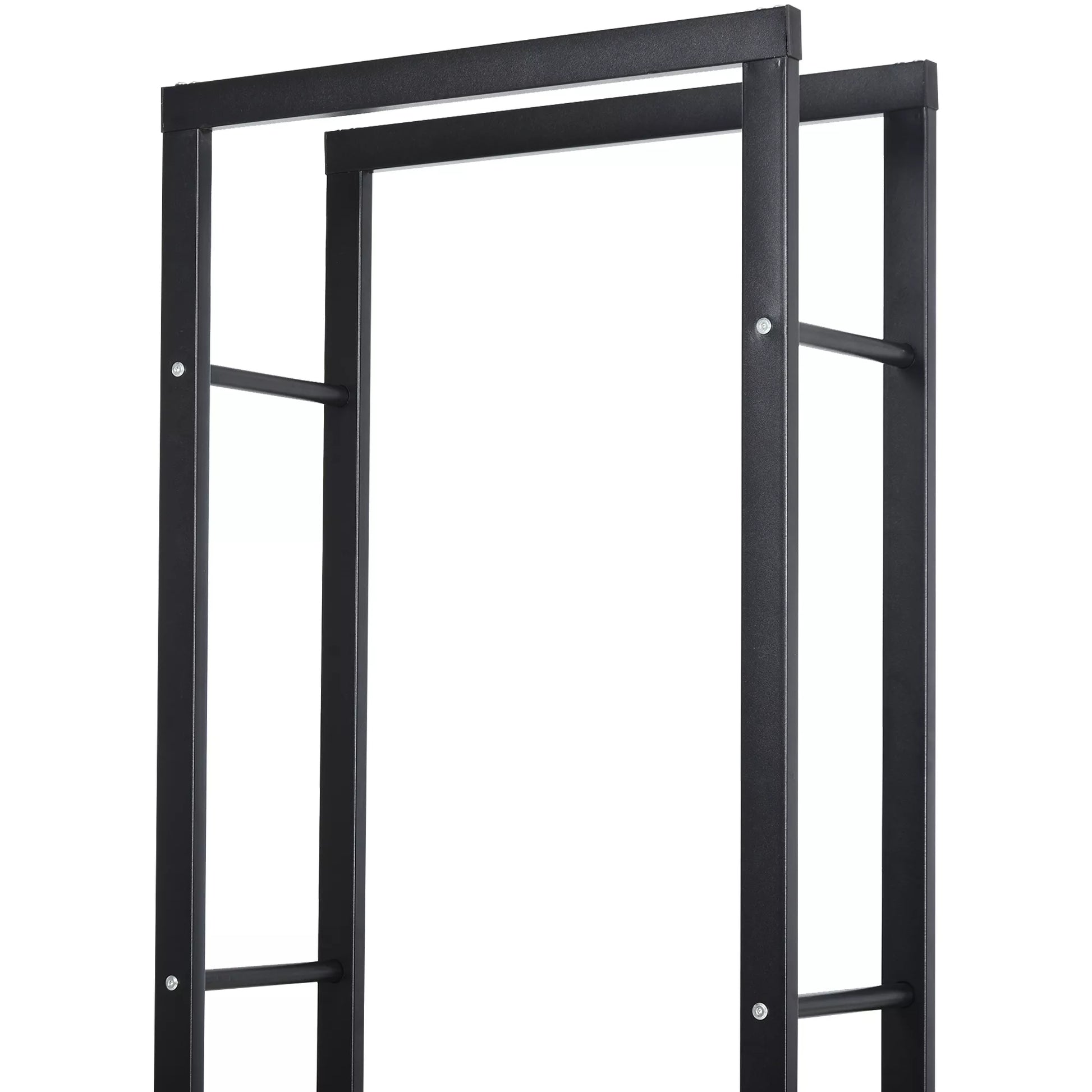 Metalinis malkų laikiklis 40 x 25 x 150 cm, stovas malkoms sukrauti, plieninis rėmas iki 100 kg, lauko malkų stalas, sodui, terasai, juodas