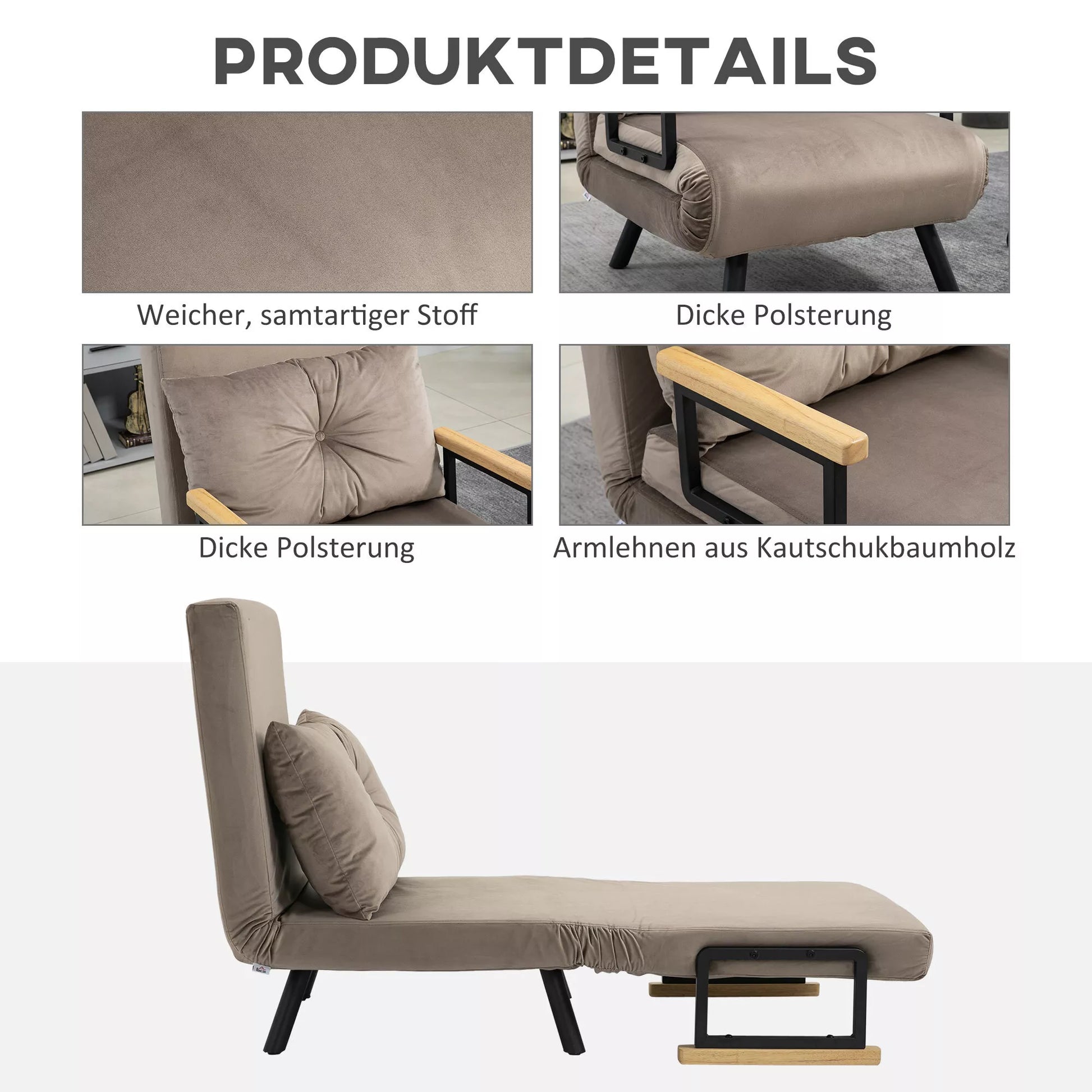HOMCOM Miegamasis fotelis, svečių lova, reguliuojamas atlošas, iki 120 kg, plieno rėmas, 63x73x81cm, šviesiai rudas